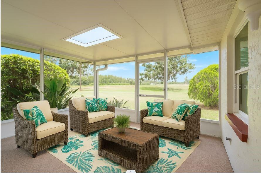 Motivated Sellers! Gorgeous Brentwood II model condo in Kings Point, Sun City Center! Welcome to this move-in-ready 2-bedroom, 2-bath condo nestled in the sought-after Highgate neighborhood of Kings Point, a vibrant 55+ gated community offering resort-style amenities and activities. 1,448 sq ft of living space with a screened lanai overlooking a serene pond and walking paths. Updates! Updated features include: Energy-efficient windows (2013). Kitchen updates 2024 includes new slow close cabinets, quartz countertops and most appliances. Remodeled primary bath (2020) Remodeled Secondary bath 2024. Updated Flooring 2024. Solar tubes in kitchen and living room for natural light. Hunter Douglas blinds and glass-insert doors with built-in blinds. Interior comforts: Ceiling fans in bedrooms and Florida room, walk-in closet In Primary Suite. Monthly fee includes cable, water, sewer, exterior maintenance, security, and access to pools, tennis courts, fitness center, transportation assistance, and more. Some Photos Virtually Staged for Ideas of furniture placement.
