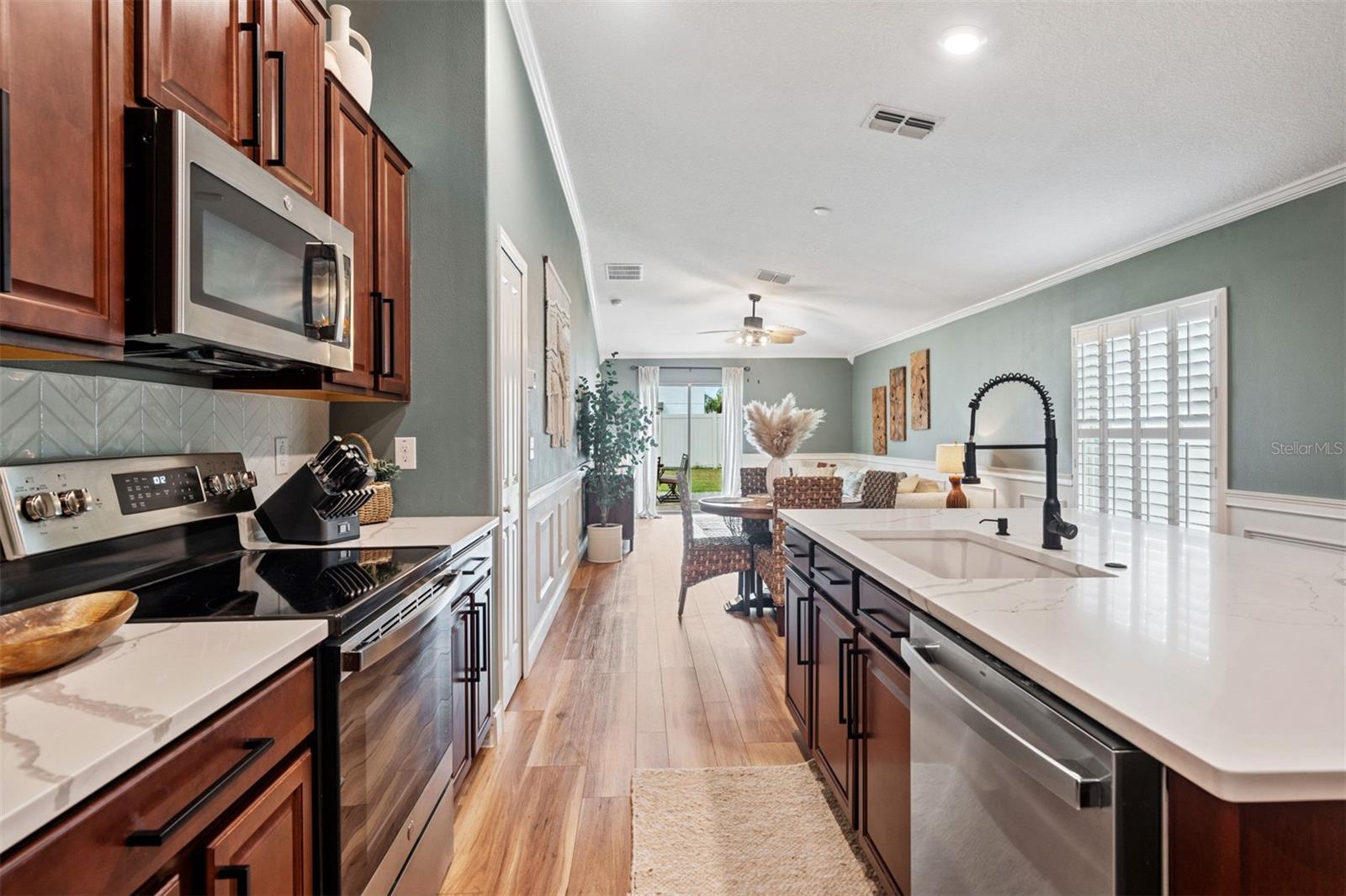 Welcome to this beautifully upgraded home nestled in the heart of desirable Cypress Mill with NO AGE RESTRICTIONS and a LOW HOA! Built in 2019, this move-in ready home offers modern finishes, an open-concept layout, and thoughtful upgrades throughout. Enjoy luxury plank flooring, quartz countertops including a large kitchen island, vaulted ceilings, crown molding, wainscotting, new roof and a bright, inviting living space perfect for everyday living and entertaining. Step outside to your fully fenced backyard retreat featuring a large patio and custom pergola, ideal for weekend BBQ's, pets, playtime, or relaxing evenings under the lights. Indoor/outdoor living like this is hard to find at this price point! This home comes with a 13 MONTH ULTIMATE HOME WARRANTY for buyer's peace of mind!! It is also high and dry with no flood insurance required and over $40,000 in upgrades this home is sure to please! It features a split floor plan that offers a generous primary suite complete with a sizable walk in closet and en-suite bathroom. Storage abounds here as well as an indoor laundry/mud room conveniently located by the garage entrance. At Cypress Mill you can feel like you are on vacation year round with the resort style amenities which are just a short walk from your front door. The club house features a beautiful resort style pool complete with cabanas, lounge areas & dining tables. There is even a splash area for the little ones as well as multiple play grounds, basketball and tennis/pickle ball courts a dog park and a gym. Located just minutes from I-75, Cypress Creek Golf Club, shopping, restaurants, schools, a short commute to Tampa, airports and world class beaches as well as Orlando attractions. Don't miss your chance to own a newer home in one of the areas fastest growing communities! Schedule your private showing today!