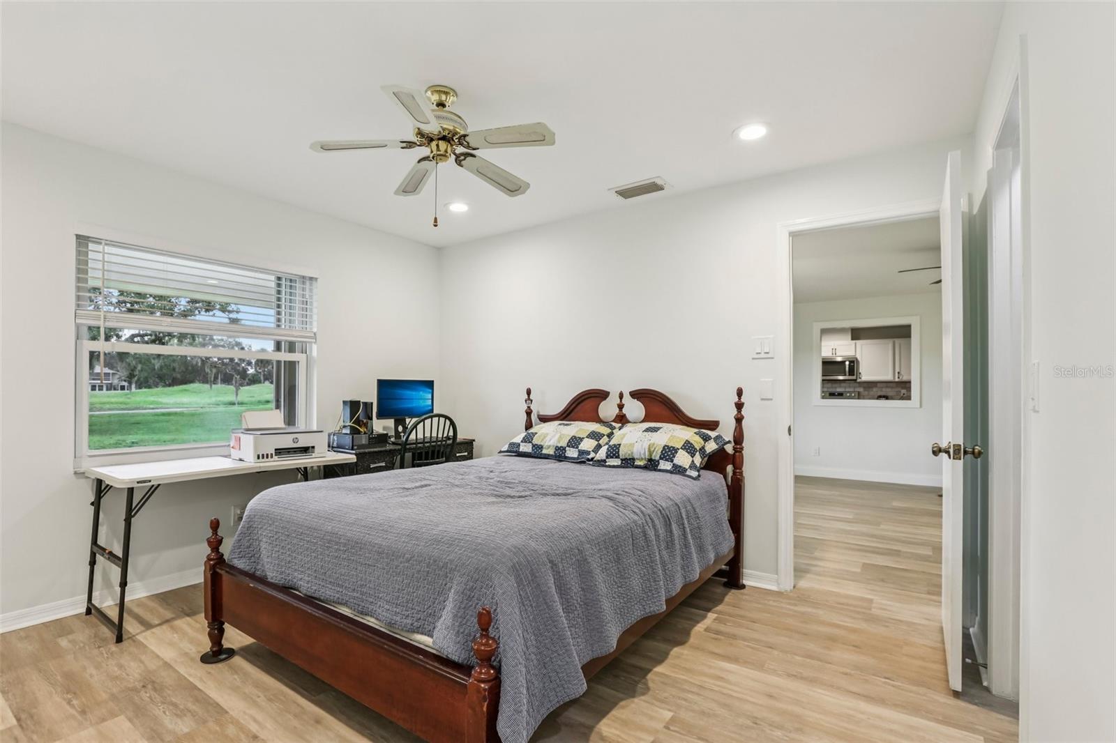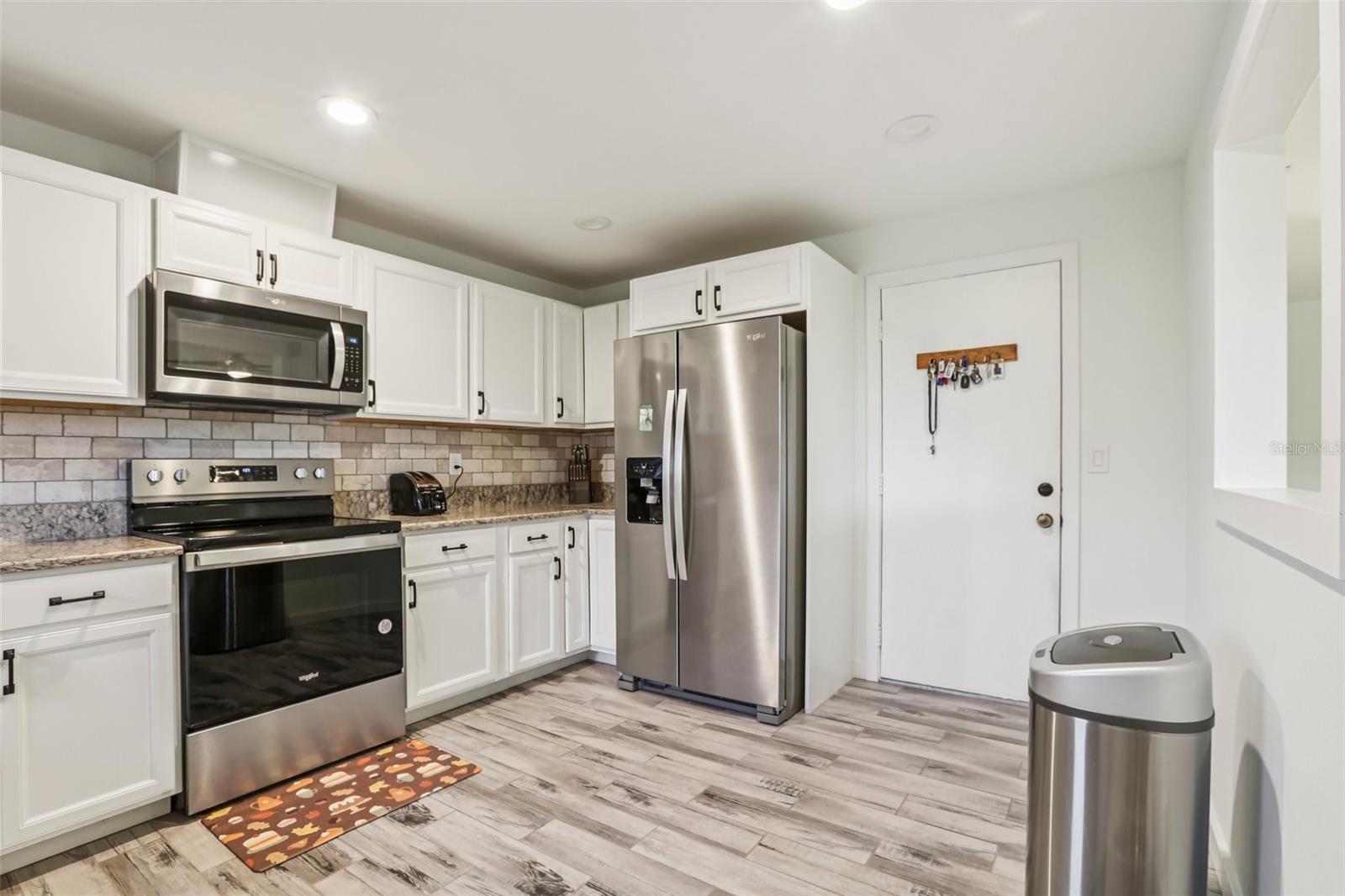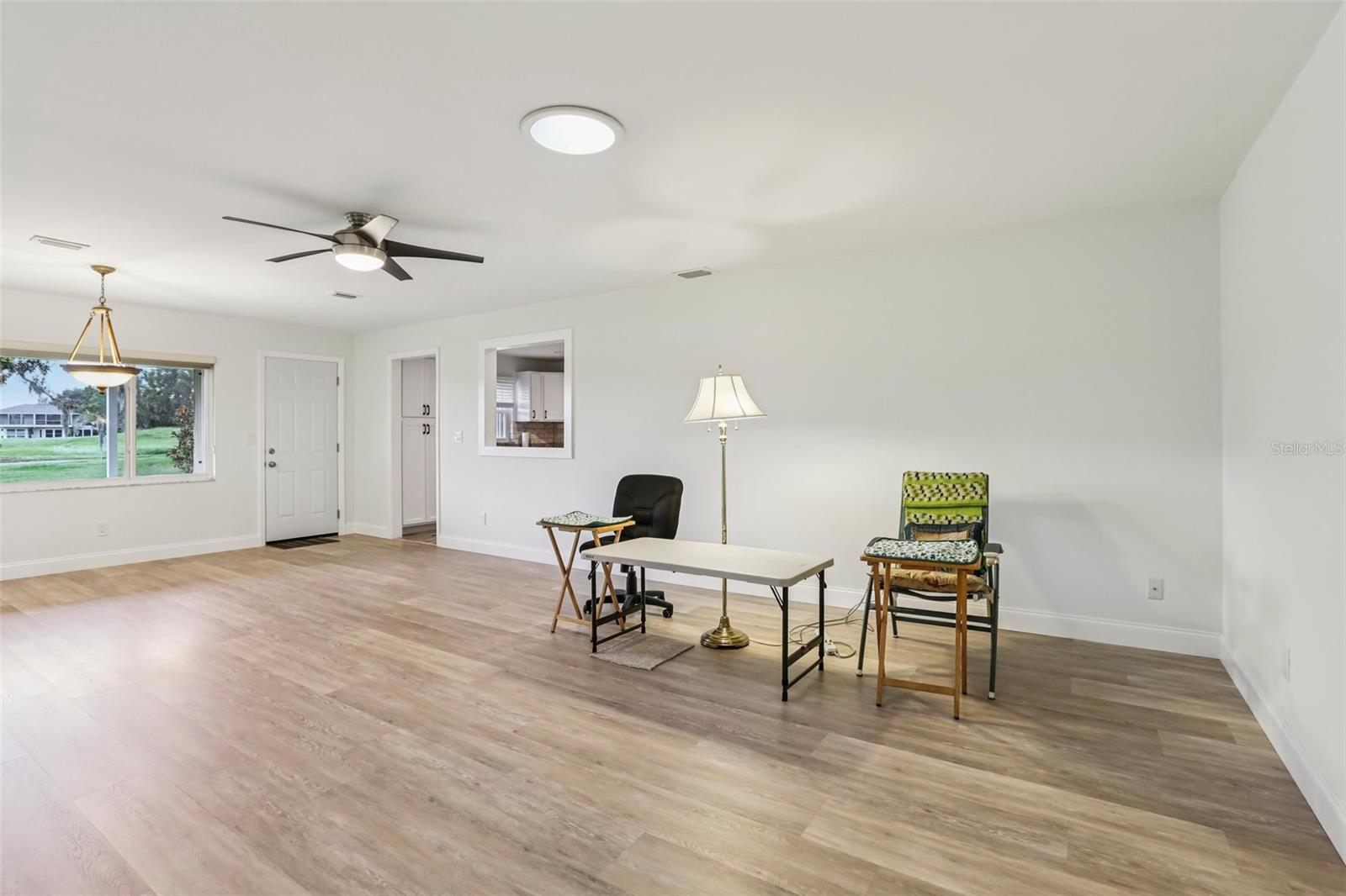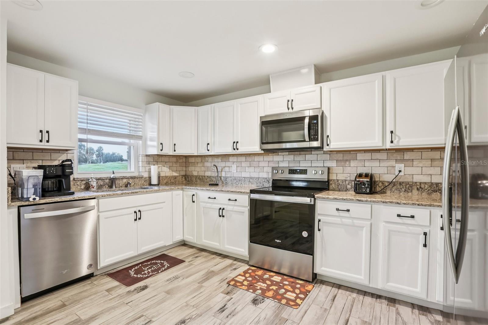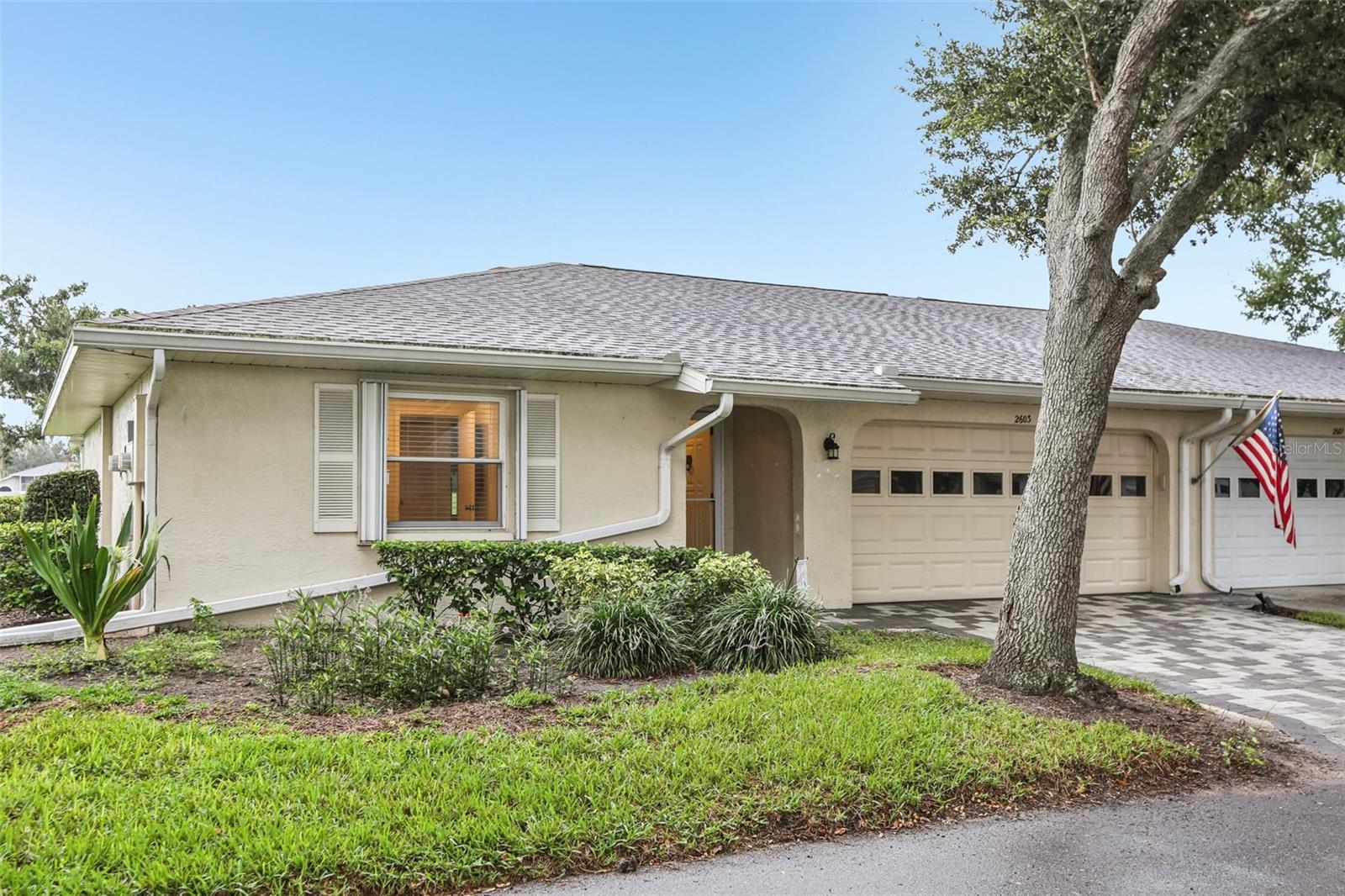 Welcome to this beautifully maintained 2-bedroom, 2-bath condo with a 1.5-car garage in the highly sought-after 55+ community of Kings Point in Sun City Center! From the moment you arrive, you’ll appreciate the curb appeal with its stone driveway and mature landscaping. Step inside to discover gorgeous laminate flooring, high ceilings, and stylish light fixtures that create a warm and inviting atmosphere throughout the spacious living areas. The updated kitchen is a chef’s delight, featuring ample cabinet space with soft-close cabinets and drawers, three convenient lazy Susans, pull-out pantry drawers, updated countertops, and sleek stainless steel appliances. A charming pass-through window overlooks the dining area, bringing in natural light and enhancing the open feel of the home. Enjoy serene views of the backyard from your living room and covered back porch — perfect for relaxing or entertaining. The primary suite offers a large walk-in closet and a beautifully updated en suite bathroom with a glass-enclosed shower and modern finishes. The second bedroom is equally inviting, with a window bench, built-in cabinetry, and a large closet — ideal as a guest room or home office. Both bathrooms have been tastefully renovated with glass sliders and contemporary upgrades. Brand New Water Softener System just installed with a transferable warranty. You’ll love the gated community of Kings Point, which has amazing facilities, pools, clubs and events just waiting for you to enjoy. Located between Sarasota and Tampa, this home is perfectly positioned for a convenient ride to airports, great shopping, dining, and professional entertainment. With easy access to award-winning, sandy beaches, you’ll experience the best of all worlds—without the stress of big city life. Leave the hustle behind and embrace a new chapter in Sun City Center, Florida, the state's top-ranked and most affordable 55+ retirement community. This home is move-in ready — come enjoy the Florida lifestyle!