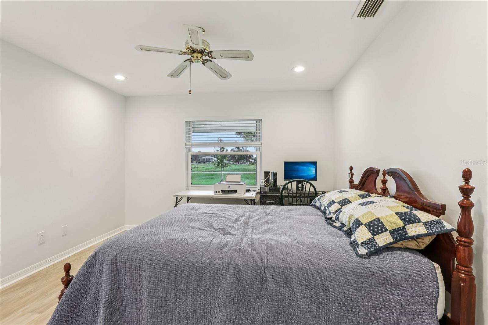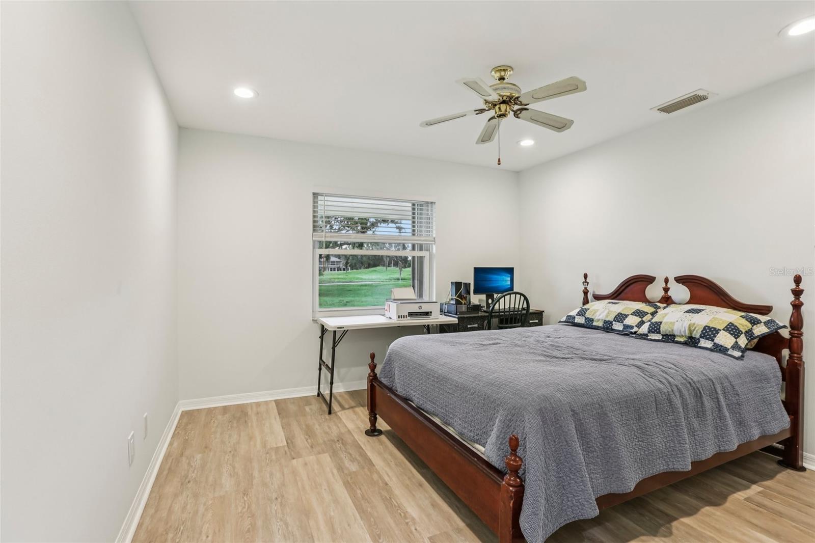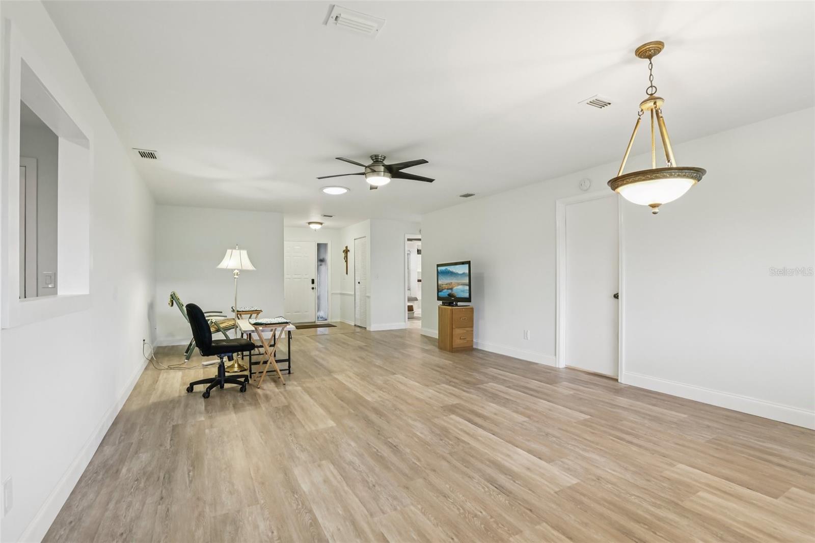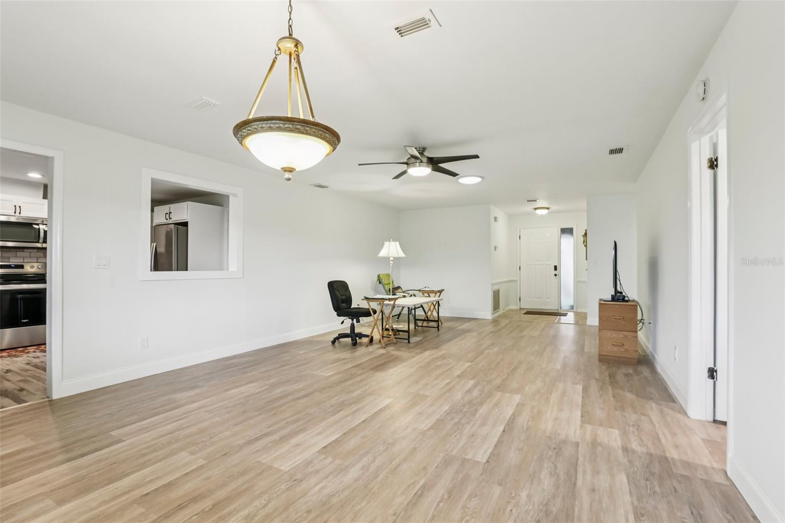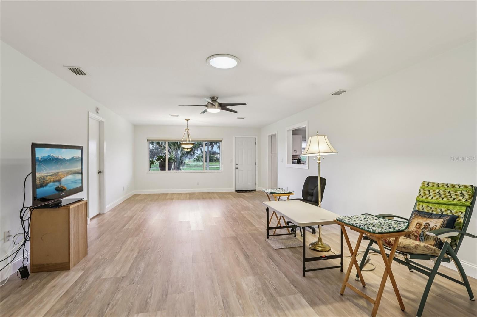 Welcome to this beautifully maintained 2-bedroom, 2-bath condo with a 1.5-car garage in the highly sought-after 55+ community of Kings Point in Sun City Center! From the moment you arrive, you’ll appreciate the curb appeal with its stone driveway and mature landscaping. Step inside to discover gorgeous laminate flooring, high ceilings, and stylish light fixtures that create a warm and inviting atmosphere throughout the spacious living areas. The updated kitchen is a chef’s delight, featuring ample cabinet space with soft-close cabinets and drawers, three convenient lazy Susans, pull-out pantry drawers, updated countertops, and sleek stainless steel appliances. A charming pass-through window overlooks the dining area, bringing in natural light and enhancing the open feel of the home. Enjoy serene views of the backyard from your living room and covered back porch — perfect for relaxing or entertaining. The primary suite offers a large walk-in closet and a beautifully updated en suite bathroom with a glass-enclosed shower and modern finishes. The second bedroom is equally inviting, with a window bench, built-in cabinetry, and a large closet — ideal as a guest room or home office. Both bathrooms have been tastefully renovated with glass sliders and contemporary upgrades. Brand New Water Softener System just installed with a transferable warranty. You’ll love the gated community of Kings Point, which has amazing facilities, pools, clubs and events just waiting for you to enjoy. Located between Sarasota and Tampa, this home is perfectly positioned for a convenient ride to airports, great shopping, dining, and professional entertainment. With easy access to award-winning, sandy beaches, you’ll experience the best of all worlds—without the stress of big city life. Leave the hustle behind and embrace a new chapter in Sun City Center, Florida, the state's top-ranked and most affordable 55+ retirement community. This home is move-in ready — come enjoy the Florida lifestyle!