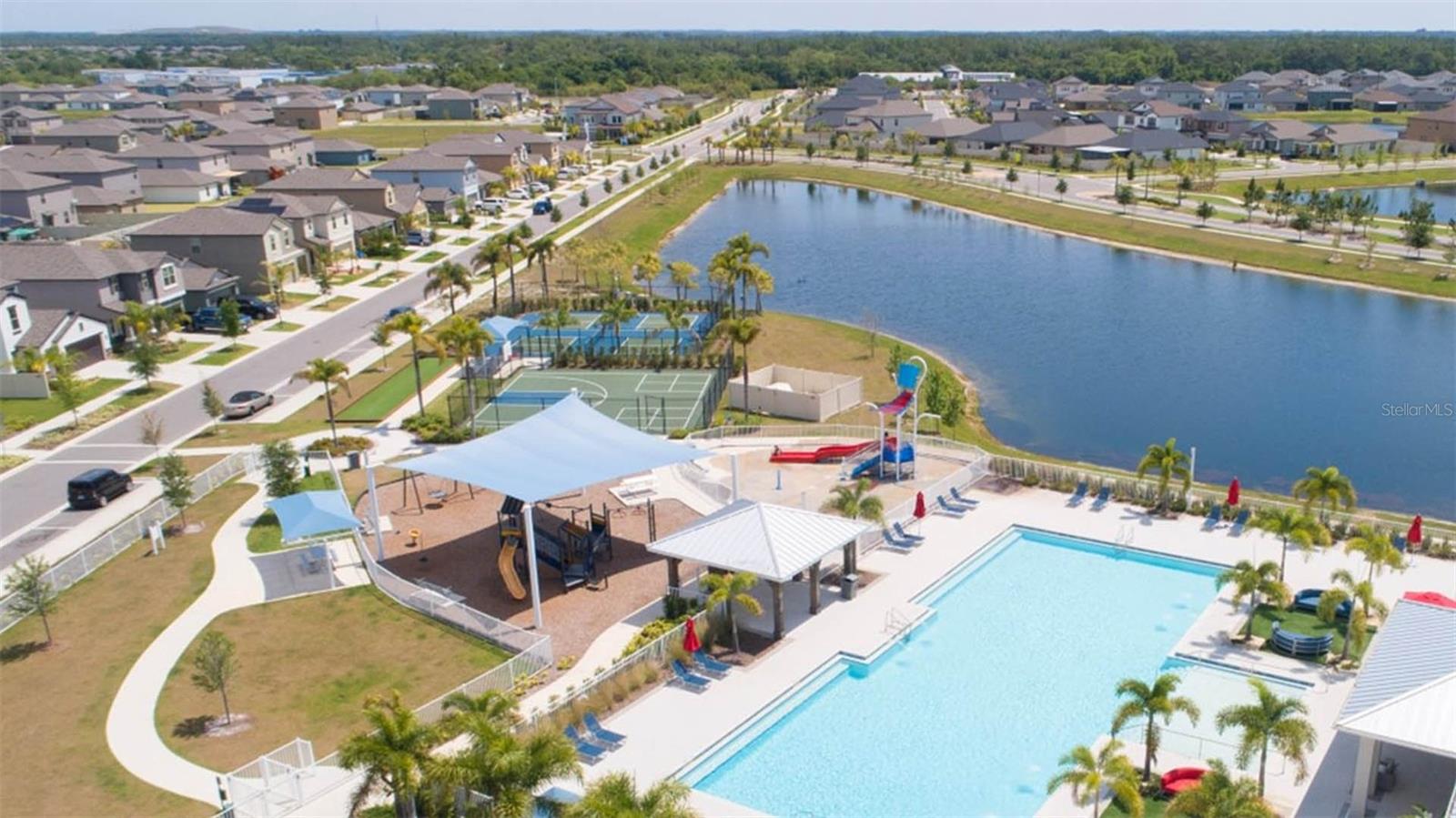 Welcome to this beautifully maintained 3-bedroom, 2-bathroom home located in the highly desirable Cypress Mill community! Built in 2021, this move-in-ready home offers an open-concept floor plan with a spacious kitchen featuring stainless steel appliances, granite countertops, a large island, and ample cabinet space — perfect for entertaining. The split bedroom layout provides privacy, while the primary suite boasts a walk-in closet and an en-suite bathroom with dual sinks and a walk-in shower. This home is equipped with a water softener system, offering enhanced water quality and long-term benefits for both plumbing and appliances. Step outside to a 720 sq ft partially covered, screened in lanai overlooking the pond which is ideal for relaxing or hosting family gatherings. Enjoy resort-style living with access to community amenities including a clubhouse, pool, fitness center, basketball and tennis courts, playground, and dog park. Conveniently located near I-75, shopping, restaurants, several schools, and Cypress Creek Golf Club, with easy access to Tampa, Sarasota, and beautiful Gulf Coast beaches. Don’t miss the opportunity to own this wonderful home in a growing area — schedule your private tour today!