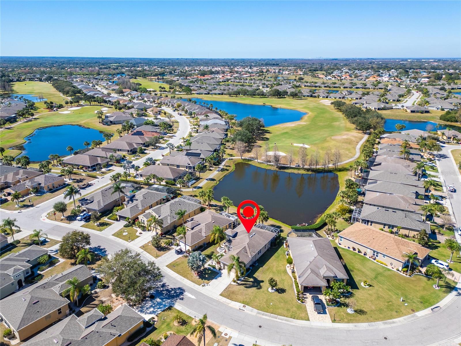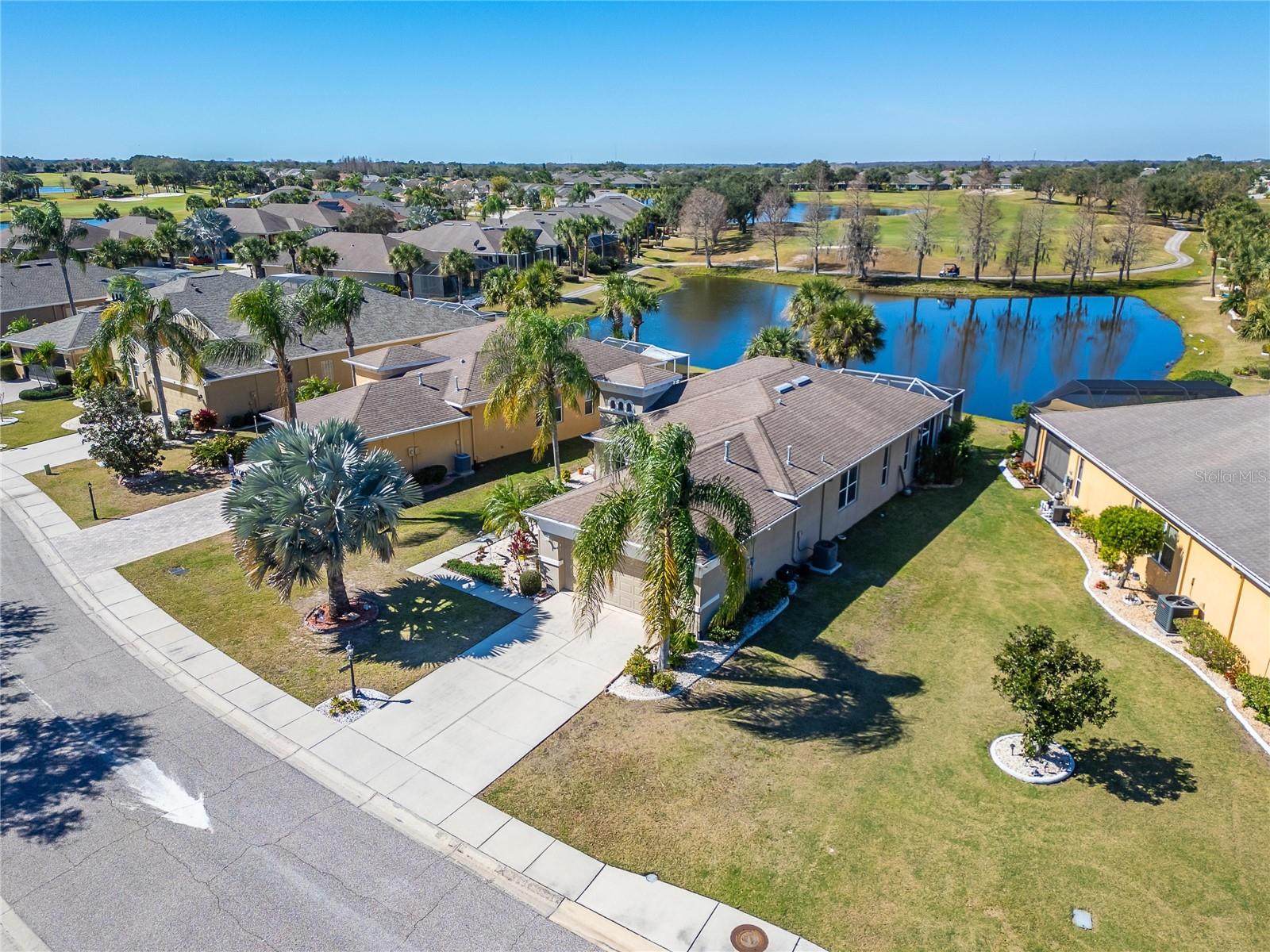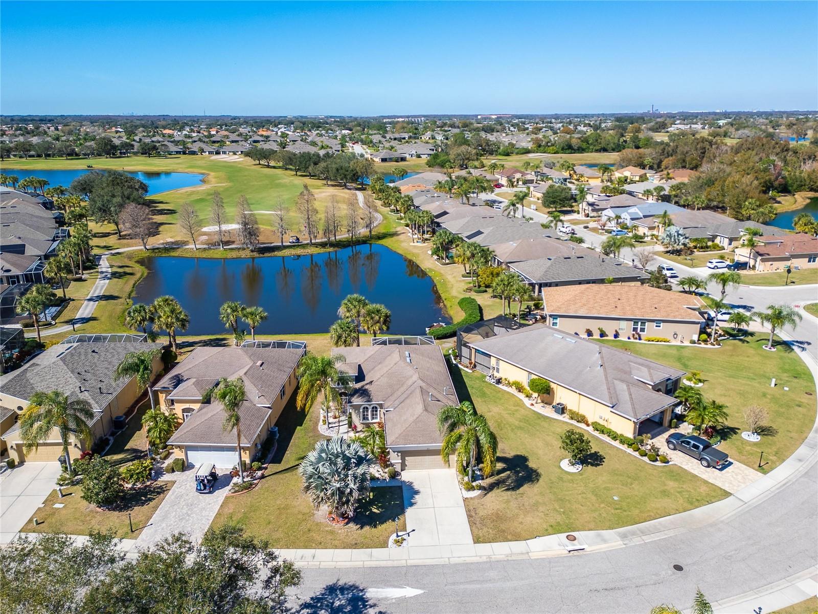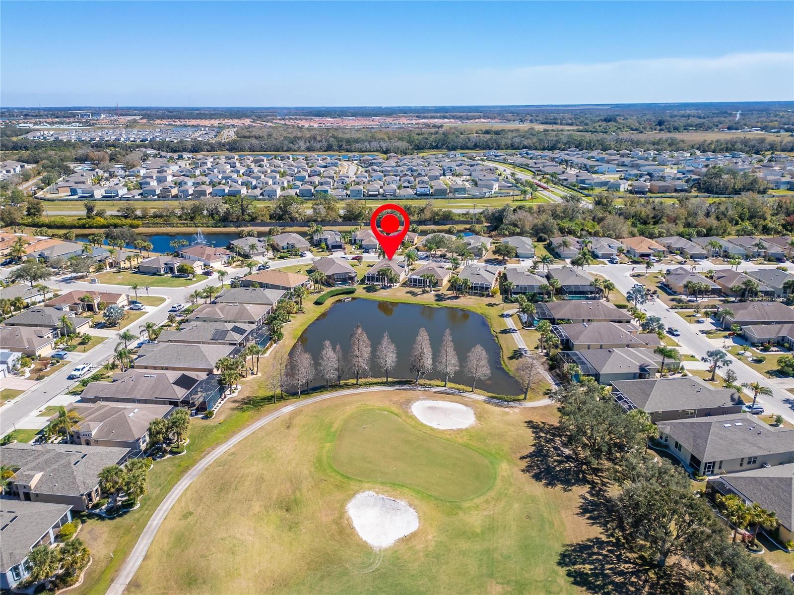 A SIZZLING NEW LISTING!!! With a brand new roof!! Bring all offers, seller motivated! WELCOME TO DREAM RETIREMENT LIVING! The Renaissance Golf Club community is active retirement living at it’s finest! You will never want to leave this 3 bedroom, 2 bathroom home once you see this view. Located on one of Sun City Center’s best kept secrets, Club Renaissance Golf Course, you will be in awe of the view of the 3rd green just beyond the large sparkling pond. Enter through a charming screened in front porch, the perfect spot of your morning coffee. Feel the inviting warmth and light as you move through the foyer into a great room with triple sliding glass doors that open all the way across the back expanding your living area into the paver-covered lanai with an awning perfectly situated facing west for spectacular nightly sunsets. The beautiful kitchen opens to the great room encompassed with granite countertops, gourmet gas range making cooking much more enjoyable! Your large primary bedroom with ensuite comes with dual sinks, a garden tub and walk in closet. The second and third bedrooms are across the home for added privacy. Beautiful arches and wood floors throughout add to the charm of this delightful home. Take in the quiet and tranquility while relaxing in your screened lanai, sipping your favorite beverage awaiting the most captivating SUNSETS! Store your car and golf cart in the 2-car garage. When you want more activities, take your golf cart to the clubhouse where you can enjoy dinner, drinks, fitness classes, the Spa Celeste, a resort-style pool, social activities, and more! Sun City Center has amazing amenities, NEWLY RENOVATED courts for the popular sport of pickleball, numerous social clubs, outdoor and indoor pool, shopping, restaurants, and doctors, and is conveniently located to major highways, airports, Tampa, Sarasota, and award-winning beaches and golf courses. What are you waiting for...come home to a Florida state of mind!