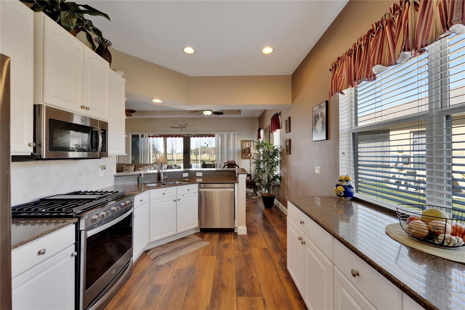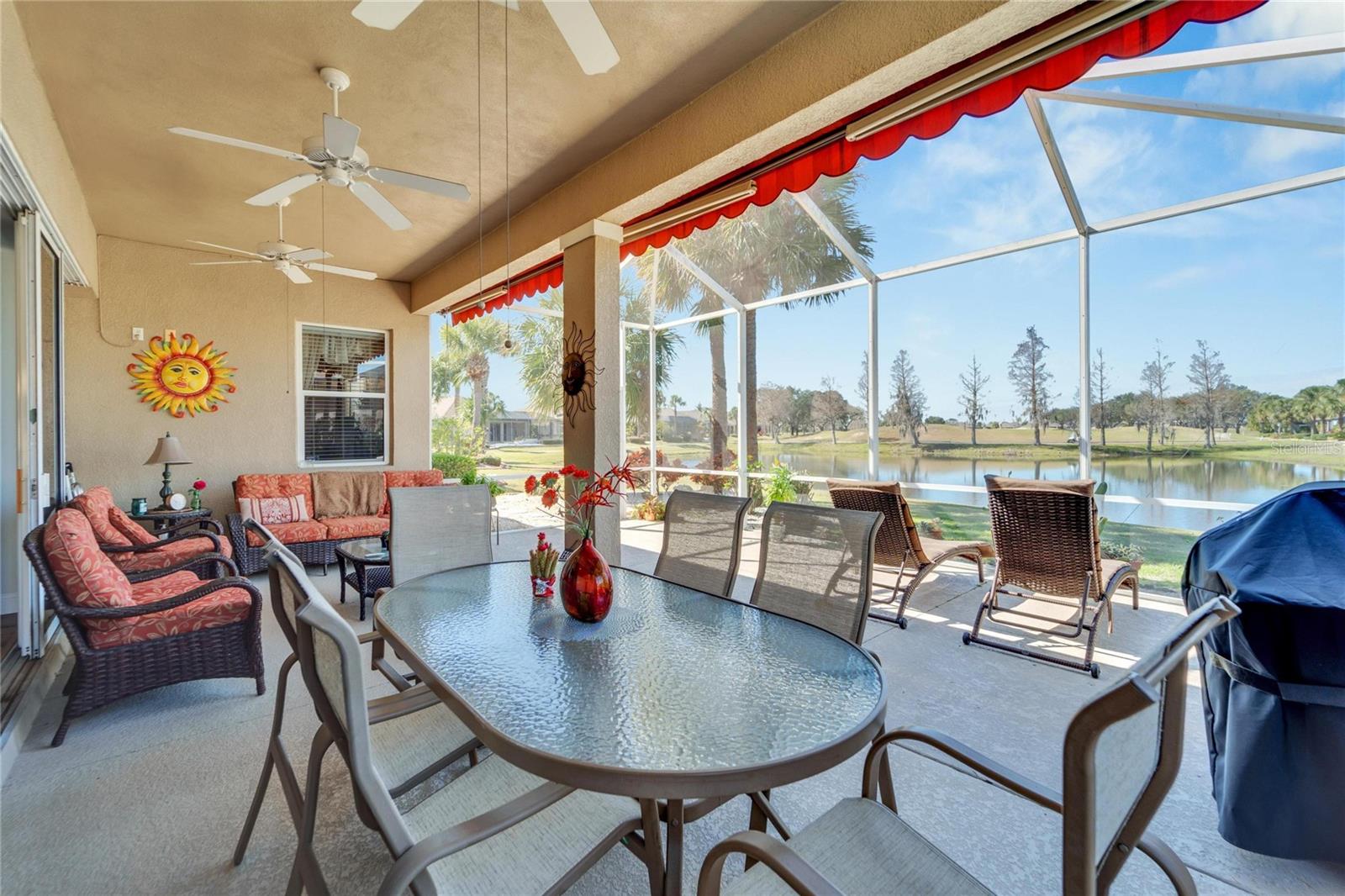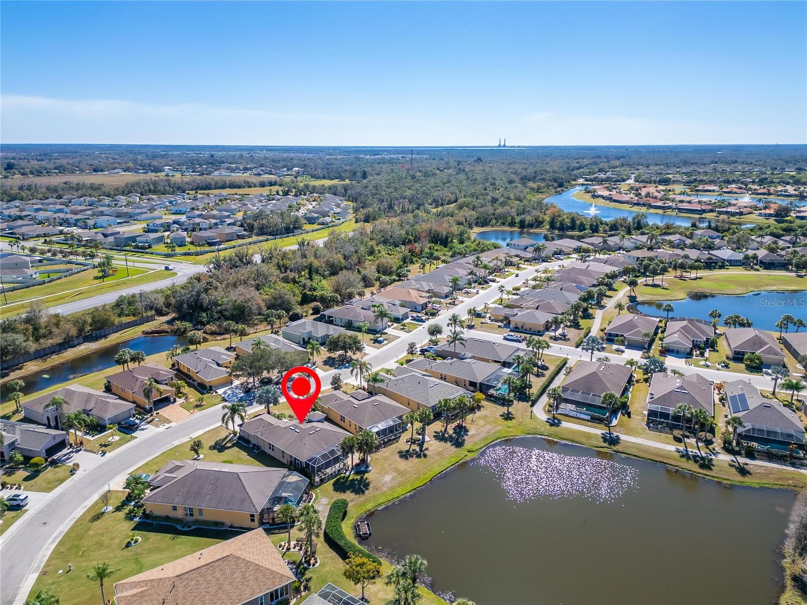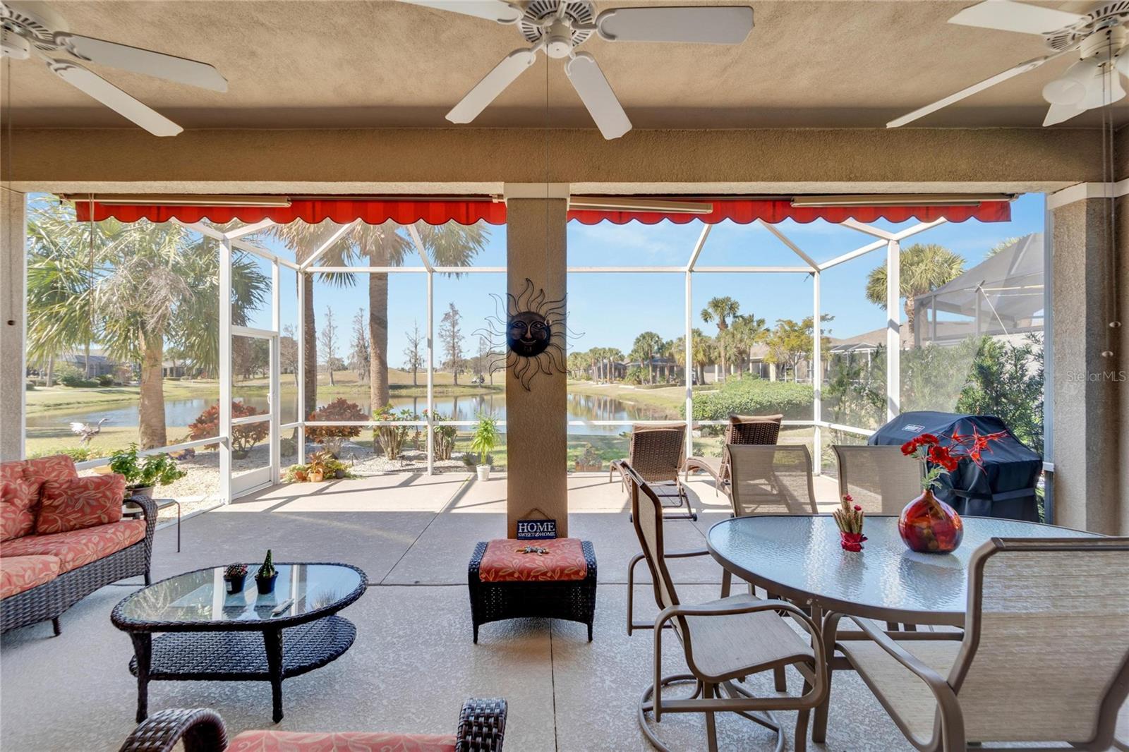 A SIZZLING NEW LISTING!!! With a brand new roof!! Bring all offers, seller motivated! WELCOME TO DREAM RETIREMENT LIVING! The Renaissance Golf Club community is active retirement living at it’s finest! You will never want to leave this 3 bedroom, 2 bathroom home once you see this view. Located on one of Sun City Center’s best kept secrets, Club Renaissance Golf Course, you will be in awe of the view of the 3rd green just beyond the large sparkling pond. Enter through a charming screened in front porch, the perfect spot of your morning coffee. Feel the inviting warmth and light as you move through the foyer into a great room with triple sliding glass doors that open all the way across the back expanding your living area into the paver-covered lanai with an awning perfectly situated facing west for spectacular nightly sunsets. The beautiful kitchen opens to the great room encompassed with granite countertops, gourmet gas range making cooking much more enjoyable! Your large primary bedroom with ensuite comes with dual sinks, a garden tub and walk in closet. The second and third bedrooms are across the home for added privacy. Beautiful arches and wood floors throughout add to the charm of this delightful home. Take in the quiet and tranquility while relaxing in your screened lanai, sipping your favorite beverage awaiting the most captivating SUNSETS! Store your car and golf cart in the 2-car garage. When you want more activities, take your golf cart to the clubhouse where you can enjoy dinner, drinks, fitness classes, the Spa Celeste, a resort-style pool, social activities, and more! Sun City Center has amazing amenities, NEWLY RENOVATED courts for the popular sport of pickleball, numerous social clubs, outdoor and indoor pool, shopping, restaurants, and doctors, and is conveniently located to major highways, airports, Tampa, Sarasota, and award-winning beaches and golf courses. What are you waiting for...come home to a Florida state of mind!