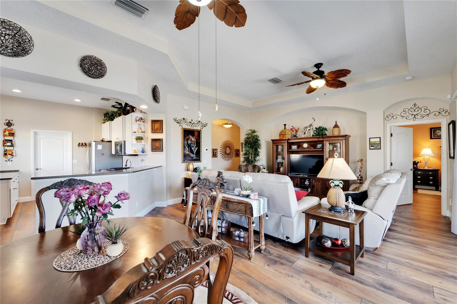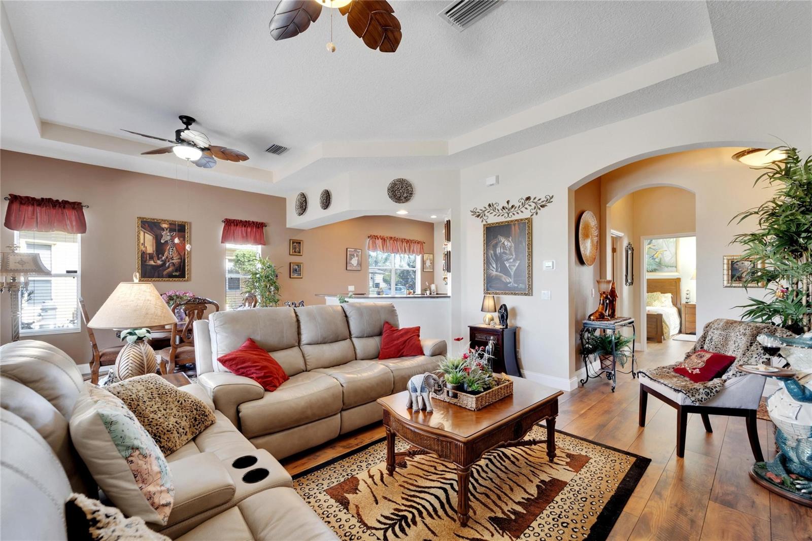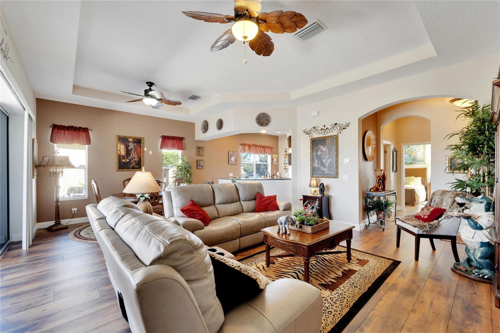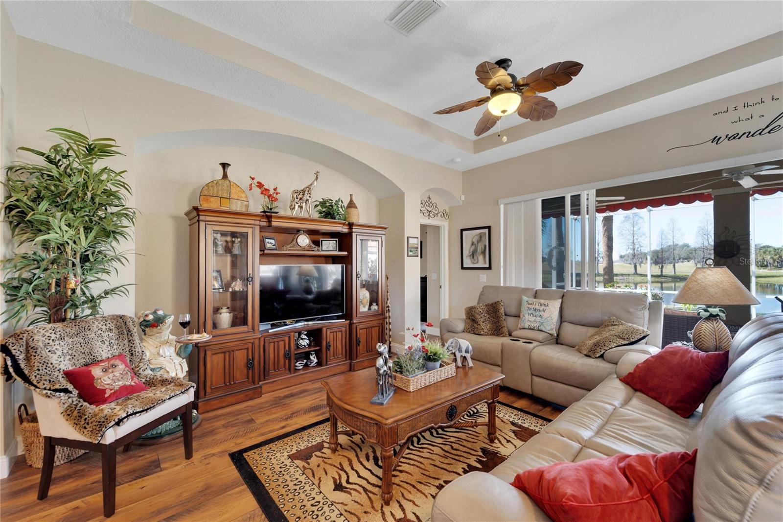 A SIZZLING NEW LISTING!!! With a brand new roof!! Bring all offers, seller motivated! WELCOME TO DREAM RETIREMENT LIVING! The Renaissance Golf Club community is active retirement living at it’s finest! You will never want to leave this 3 bedroom, 2 bathroom home once you see this view. Located on one of Sun City Center’s best kept secrets, Club Renaissance Golf Course, you will be in awe of the view of the 3rd green just beyond the large sparkling pond. Enter through a charming screened in front porch, the perfect spot of your morning coffee. Feel the inviting warmth and light as you move through the foyer into a great room with triple sliding glass doors that open all the way across the back expanding your living area into the paver-covered lanai with an awning perfectly situated facing west for spectacular nightly sunsets. The beautiful kitchen opens to the great room encompassed with granite countertops, gourmet gas range making cooking much more enjoyable! Your large primary bedroom with ensuite comes with dual sinks, a garden tub and walk in closet. The second and third bedrooms are across the home for added privacy. Beautiful arches and wood floors throughout add to the charm of this delightful home. Take in the quiet and tranquility while relaxing in your screened lanai, sipping your favorite beverage awaiting the most captivating SUNSETS! Store your car and golf cart in the 2-car garage. When you want more activities, take your golf cart to the clubhouse where you can enjoy dinner, drinks, fitness classes, the Spa Celeste, a resort-style pool, social activities, and more! Sun City Center has amazing amenities, NEWLY RENOVATED courts for the popular sport of pickleball, numerous social clubs, outdoor and indoor pool, shopping, restaurants, and doctors, and is conveniently located to major highways, airports, Tampa, Sarasota, and award-winning beaches and golf courses. What are you waiting for...come home to a Florida state of mind!