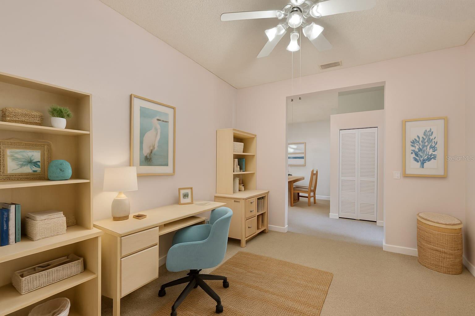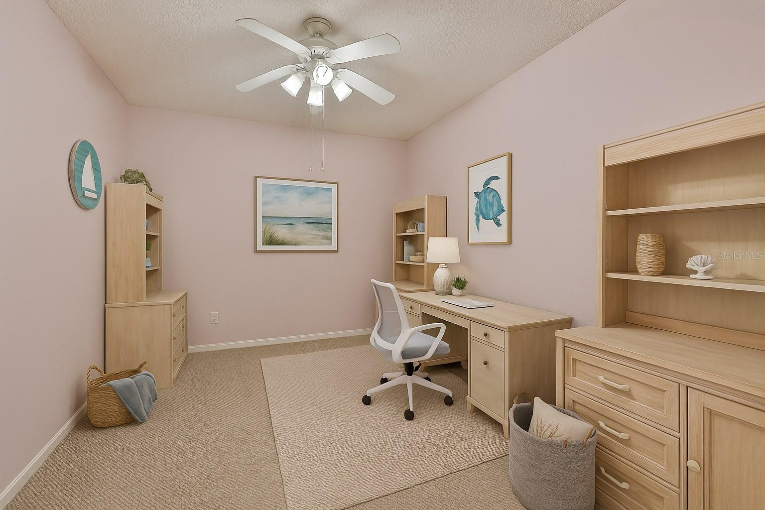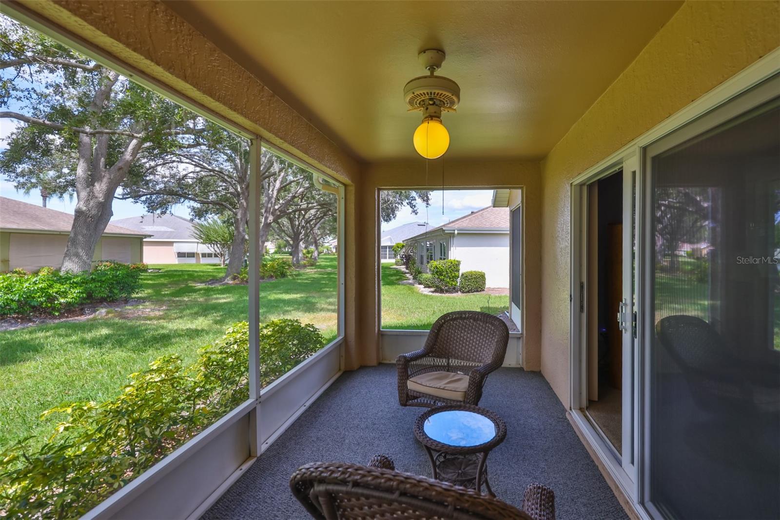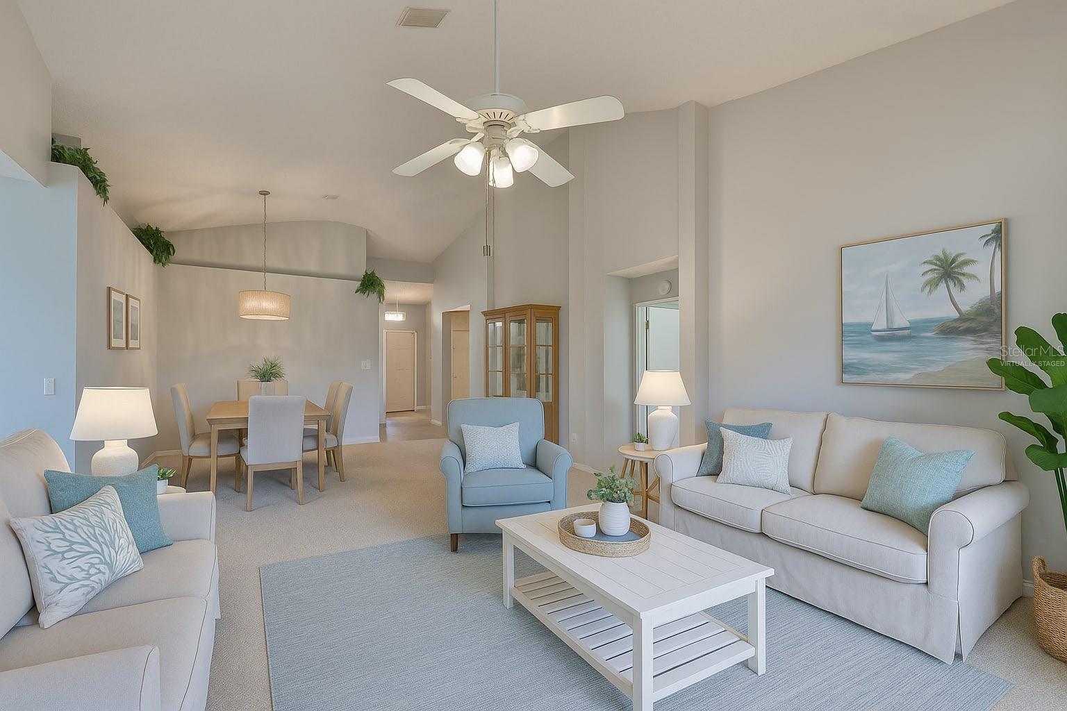 One or more photo(s) has been virtually staged. Enjoy a maintenance free lifestyle in this spacious 1,600 sq ft 2 bedroom, 2 bathroom plus DEN Malibu floorplan with attached garage and two screened lanais. Just bring your toothbrush and start living the dream in the fabulous Resort Style 55+ gated Kings Point community in Sun City Center, FL. Located in Manchester III neighborhood of Kings Point close to the South Clubhouse, this fabulous Malibu floor plan features 2 bedrooms, 2 bathrooms plus a Den/Flex room that is perfect for a den/office or even a third bedroom. This home features a NEW ROOF in 2025, a Paver driveway, screened entryway, two screened lanais, and dual pane windows throughout. Upon entering the home you'll have a clear sightline through the main room to the screened lanai and beautiful shaded backyard. The guest bedroom and bathroom are located in the front of the home, and the guest bathroom has a tub/shower combo. The main bedroom has a vaulted ceiling, large walk-in closet, and an en-suite bathroom with an oversized walk-in shower. The Living/Dining room has a vaulted ceiling and is perfect for entertaining. The kitchen has a large eat-in area with a sliding glass door leading to the second screened lanai making it the perfect spot to enjoy your morning coffee and nature. Inside laundry. Your monthly Condo fees includes gated security with 24-hour guard, cable, Internet, building insurance, roof and exterior maintenance, grounds maintenance, pest control, recreational facilities, water, escrow reserves, fidelity bond and all of the incredible amenities. Kings Point is a golf cart friendly, resort-style community with two beautiful clubhouses, an 850-seat Theater, 6 heated pools, 2 hot tubs, state-of-the-art fitness centers, a Cafe, Sportsbar, and a full service spa where you can get a massage, a hairstyle, or have your nails done. You'll find plenty to do with Pickleball, Tennis, Billiards, and Dozens of social and sports clubs will keep you entertained year-round. KingsPoint even has its own free transportation system to go to doctors, hospitals, shopping, banking and restaurants. Be sure to visit the resort style KingsPoint South Clubhouse at 1224 Newport Loop and check out the Cafe, Sportsbar, and resort style pool. Manchester III is also part of the 80/20 rule where an age waiver is possible. Manchester III will also allow emotional support and service animals with proper documentation provided to the association.