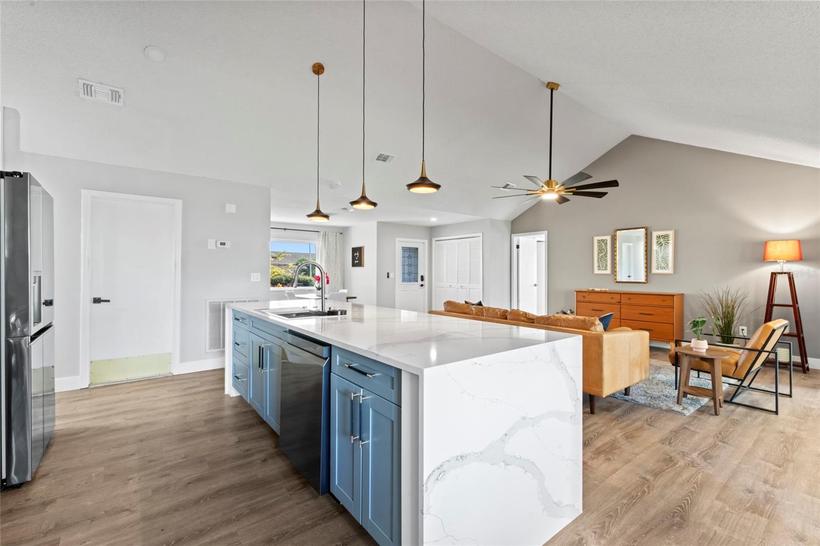 MAJOR PRICE REDUCTION! CHECK OUT THIS INCREDIBLE HOME! Live the Good Life in Sun City Center! Have you been dreaming of the perfect Florida lifestyle? Look no further than this beautifully remodeled 2-bedroom, 2-bath home with a 2-car garage. From the moment you arrive, the screened front entry welcomes you with charm and invites in the gentle breezes that flow throughout the home. Step inside and you’ll love the open-concept layout with soaring ceilings that make the main living area feel bright and spacious. The split floor plan provides excellent privacy, with both bedrooms generously sized—each large enough for a sitting area or reading nook. The living room flows seamlessly into a lovely Florida room, ideal for relaxing or entertaining. At the heart of the home is the stunning, recently remodeled kitchen. The chef in the family will appreciate the custom cabinetry, stainless steel appliances, sleek tile backsplash, and gorgeous quartz countertops with a waterfall-edge island that truly makes a statement. There’s plenty of storage and workspace, combining beauty and function perfectly. Both bathrooms have been tastefully updated, and the waterproof vinyl plank flooring throughout the home adds style and durability. Step outside to the screened, covered lanai—your private retreat for morning coffee or evening relaxation. The fully fenced backyard offers additional privacy and includes a convenient storage shed. Recent upgrades include a new roof (2020), whole-house replumb (2014), and a new irrigation system (2022)—giving you peace of mind and move-in-ready confidence. Sun City Center is one of the nation’s premier active adult communities, offering over 200 clubs and countless amenities including indoor and outdoor pools, a state-of-the-art fitness center, tennis and pickleball courts, lawn bowling, dog parks, and multiple golf courses. This true golf-cart community also offers close proximity to shopping, dining, medical facilities, and major highways—just a short drive to downtown Tampa, Tampa International Airport, and the world-famous Gulf beaches. Don’t miss your chance to start living the good life in this stunning Sun City Center home! **Ask us about our Preferred Lender Incentive available where you could save thousands $$$**