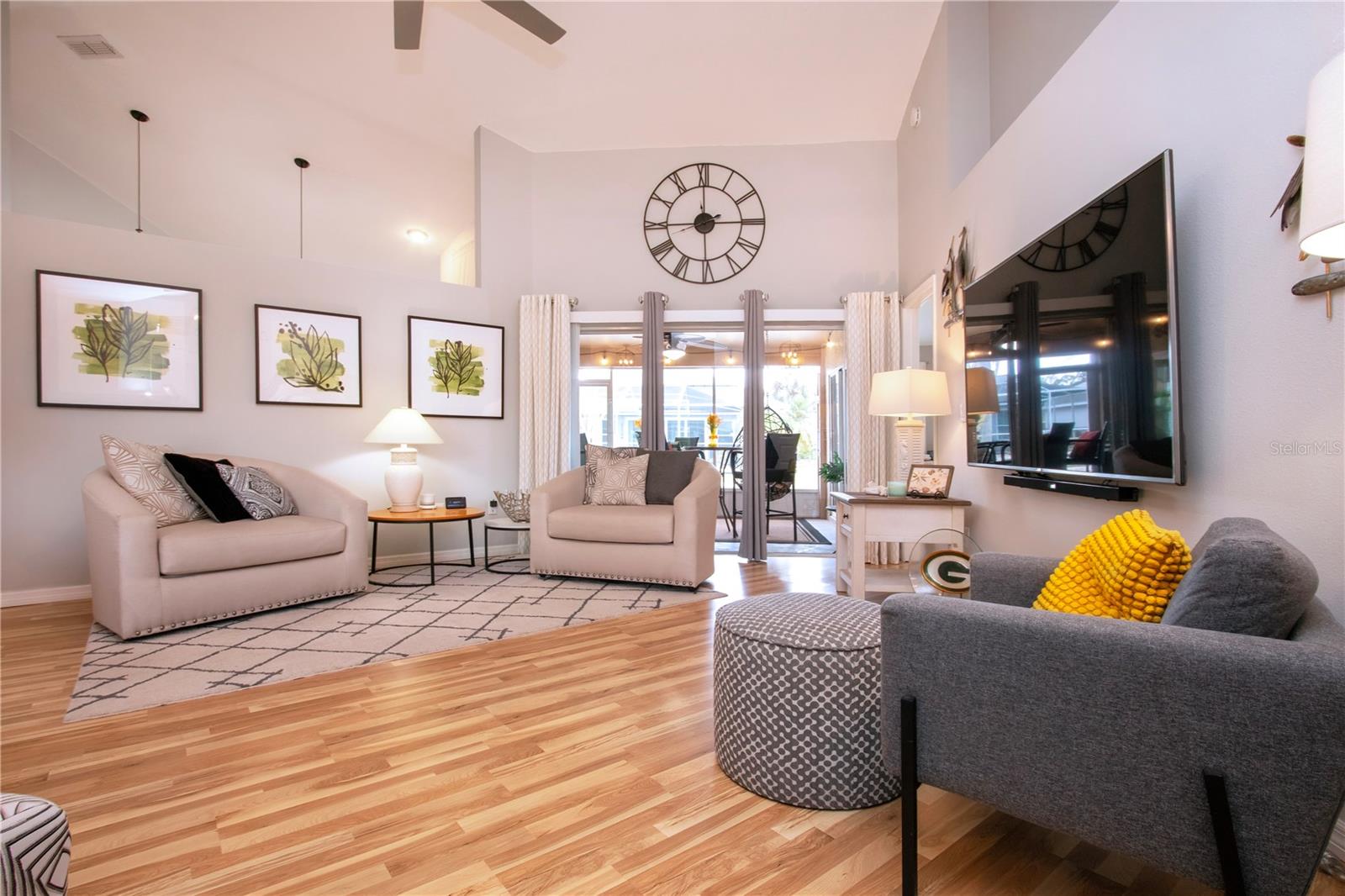 This is the one not to miss!! Welcome to this strikingly upgraded and move-in ready home located in a quiet neighborhood of the 55+ retirement community of Sun City Center, FL that was recently declared the best retirement community in the United States. As you arrive at the home, the care and pride of ownership is evident. You are greeted with manicured landscaping, a freshly painted exterior and custom painted driveway and walkway that leads to the screened-in front porch entry that features new aluminum framing and screening. Upon entering the home, you will find new laminate flooring throughout the entire house except for the bathrooms. The interior has been repainted, and all the ceiling popcorn has been removed, the drywall seams were retaped and then a knock-down texture was applied and painted. The volume ceilings, contemporary features, diagonally laid flooring, new lighting and fan add to the openness of this stunning living room. The totally upgraded eat-in kitchen is a cook’s dream. It includes new kitchen cabinets, quartz counter tops and tiled backsplash. New stainless-steel appliances include a GE refrigerator and glass top stove with an air fryer oven, a Bosch dishwasher and a built-in Panasonic microwave. There is a convenient counter to sit at for a quick meal or conversation with the cook, along with an airy breakfast nook in the bay window area. For more casual dining, the adjacent dining room features double glass barn doors. The enclosed back porch can also be accessed from the kitchen as well as the living room making this home perfect for entertaining friends and family. This home also features a split floor plan which provides for convenience and privacy when entertaining family or guests. The Primary suite has ample space for king size furniture, and the bathroom has new LVT flooring, light fixtures and a refinished soaking tub. The guest bedroom and bath are actually an ensuite bedroom. A new door was constructed to give additional privacy to overnight guests. The bathroom also has been upgraded with new LTV flooring, new vanity and walk-in shower along with new mirror and lighting. Another huge plus for this house is everything that has been done to minimize insurance cost and maximize comfort. All electric and plumbing is up to required 4-Point Inspection requirements. A new roof was installed in 2025 that includes a peal and stick substrate and 4 nails in the hurricane straps. New facia, soffit, and gutters were also added. A new Carrier HVAC system was installed in 2024 and Pella Fortress Storm Defense hurricane windows were installed in 2023. The water heater is also new and additional attic insulation was added to meet current building codes. The complete list of improvements and upgrades is more than can be listed here. The best thing to do is to call to make an appointment to see this home before it’s too late.