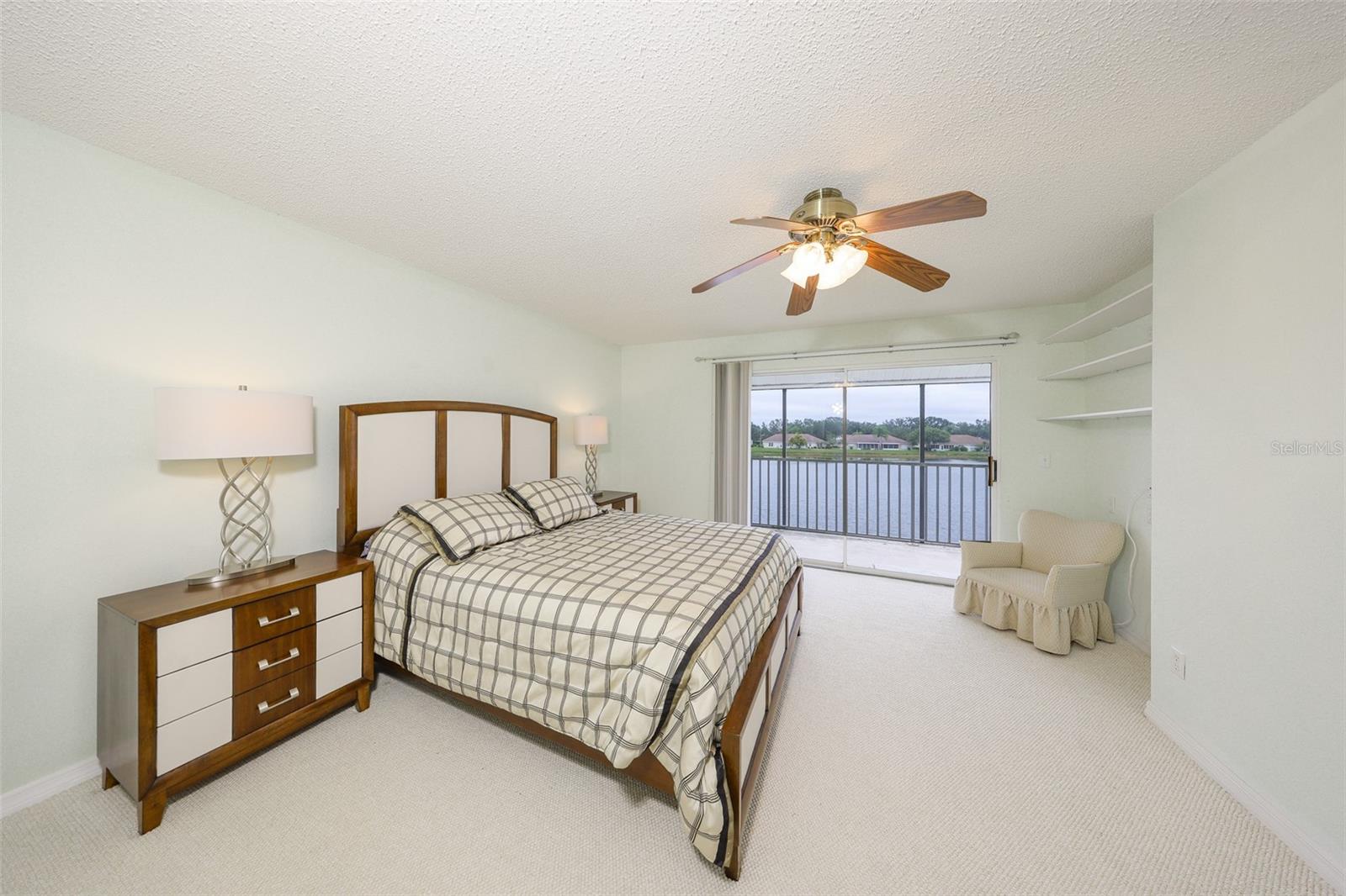 Experience serene waterfront living in this beautifull two-story, 3-bedroom, 3-bath condominium located in the highly sought-after Kings Point 55+ community. Positioned on a prime wedge-shaped lot, this home enjoys exceptional privacy and unobstructed lake views with no fences or hedges to block the scenery. The open-concept layout highlights soaring cathedral ceilings, abundant natural light, and refined finishes throughout. The chef’s kitchen showcases custom 42-inch solid wood cabinetry, deep storage drawers, new stainless steel LG refrigerator, Bosch dishwasher, built-in wall oven, and a Kenmore Elite cooktop—all complemented by recessed lighting and a reverse osmosis water system. A formal dining area with a bay window and a spacious living room with tile flooring and panoramic water views create the perfect space for entertaining. The expansive primary suite features oak wood flooring, double walk-in closets, and a luxurious en suite bath with dual vanities, seamless marble countertops, a garden tub, and a separate walk-in shower. The second bedroom and full bath are conveniently located on the main floor. Upstairs, a private guest suite offers a walk-in closet, a full bath with tub and shower, and access to a newly screened balcony overlooking the lake—ideal for reading, relaxing, or enjoying morning coffee. The air-conditioned and enclosed lanai with sliding windows extends the living space year-round, featuring tile flooring and tranquil water views. Additional highlights include a new 3.5-ton HVAC system (2024), new roof (2024), Culligan water softener system, nine ceiling fans, built-in garage cabinetry, electric garage screen, and a washer/dryer conveniently located in the oversized garage. Kings Point offers world-class amenities including 24-hour gated security, multiple clubhouses, fitness centers, golf, tennis, pickleball, indoor and outdoor pools, a full-service spa, on-site dining, and over 200 clubs and social organizations. The monthly fee covers building exterior, roof, landscaping, irrigation, water, sewer, pest control, cable, internet, and reserves for long-term maintenance—ensuring worry-free living. Centrally located between Tampa and Sarasota, Kings Point provides easy access to shopping, dining, medical facilities, airports, and award-winning Gulf beaches. This stunning, move-in-ready residence delivers comfort, luxury, and the best of Florida’s active adult lifestyle in one exceptional community. This lovely condo is vacant and move-in ready. Don’t miss the chance to own in one of Florida’s premier 55+ active lifestyle communities—schedule your private showing today!