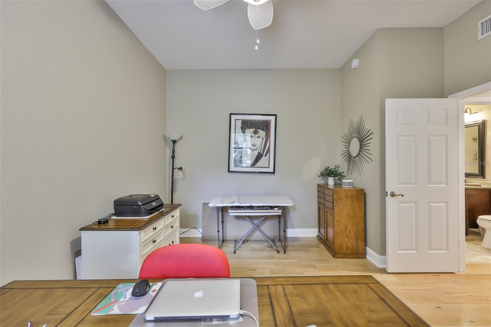 CLICK ON INTERACTIVE 3D TOUR ABOVE ------ BEAUTIFULLY UPDATED & STUNNING WATER & GOLF COURSE VIEWS! Reward yourself with active and carefree retirement living in the premier 55+ resort-style community of Renaissance in Sun City Center, FL, where you'll feel like you're on vacation every day! This gorgeous 3 bedroom/2 bath GROUND LEVEL, LUXURIOUS & MAINTENANCE FREE CONDO, boasts almost 1900 sq ft of FULLY UPDATED modern open living space. Step inside and be wowed by the soaring high ceilings, neutral decor, ENGINEERED HARDWOOD THROUGHOUT, CUSTOM PLANTATION SHUTTERS AND TERRIFIC WATER & GOLF COURSE VIEWS ALL ACROSS THE REAR OF THE CONDO. The fabulous REMODELED KITCHEN is a cook's dream offering 42 INCH WHITE CABINETRY W/PULLOUTS, WALK-IN PANTRY, MATTE STAINLESS "SMUDGE PROOF" KITCHEN AIDE APPLIANCES INCLUDING NATURAL GAS RANGE W/DOUBLE OVEN, PRETTY TILE BACKSPLASH, QUARTZ COUNTERS AND LARGE COUNTER HEIGHT ISLAND WITH EXTRA SEATING. The open floorplan allows an easy flow to the comfortable family room/dining room combo making this perfect for entertaining. The private owner's suite has access to the lanai area, large walk-in closet w/organizer and BEAUTIFUL REMODELED ENSUITE BATHROOM W/DOUBLE VANITY & WALK-IN TILED SHOWER W/PRIVACY GLASS. The other 2 spacious bedrooms and REMODELED GUEST BATHROOM are at the opposite end of the condo for extra privacy. The 3rd bedroom can easily be used for your den or office. The ultimate feature of this condo is the 24 x 10 covered and REFRAMED & RESCREENED TILED LANAI, where you can relax & enjoy the serene water & golf course views all day long. Other upgrades are DOUBLE PANE WINDOWS W/ELECTRIC HURRICANE SHUTTERS, WATER SOFTENER, GAS WATER HEATER 2023, AND HVAC W/10 YR WARRANTY 2025. This condo is conveniently located just around the corner from the neighborhood Club Renaissance where you can enjoy dining, cocktails, social activities, resort-style pool, fitness classes, spa and so much more. So come and visit this beauty today to see why you'll want to call it home!