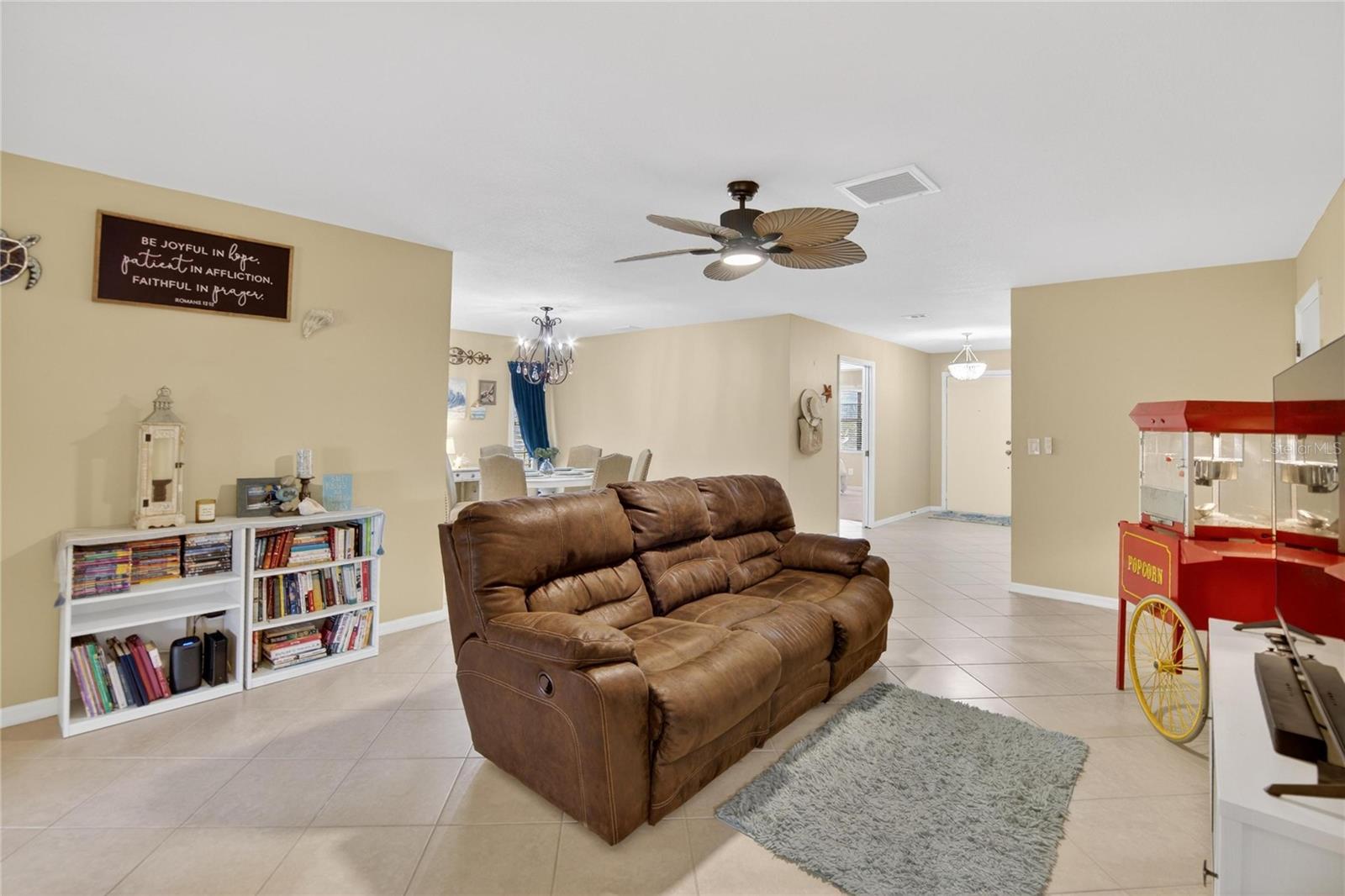 Welcome to this beautifully updated, ground-floor Sunrise model in the highly desirable and gated Kings Point community in Sun City Center. This one-level condo offers a super cute beachy vibe and has been thoughtfully remodeled to create a truly turnkey home. Featuring a split floor plan for added privacy, this residence lives comfortably and efficiently while offering flexible spaces to suit a variety of lifestyles. The kitchen and bathrooms have been remodeled with tasteful finishes and also maximizing space. The primary bathroom showcases beautiful tile work that adds a spa-like, designer feel. The redesigned kitchen enhances everyday functionality with increased cabinet and storage space, while closet organizers throughout the home provide smart, efficient organization. Major system updates include a new AC system and water heater installed in 2025, an updated electrical panel (2021), and the home has been completely repiped — offering exceptional peace of mind for years to come. The roof was replaced in 2013 and is maintained by the HOA. Enjoy serene Florida living from both the front and rear of the home. The enclosed front porch features new pebble flooring and creates a welcoming space for morning coffee or relaxing evenings. At the rear, an enclosed porch offers a truly stunning view of the pond, with soaring trees beyond that providing a peaceful, private, and picturesque backdrop. This tranquil setting is perfect for unwinding, entertaining, or simply enjoying the natural beauty that surrounds the home. The home also features a large, separate laundry room, adding everyday convenience and extra storage. A rear bonus room enhanced with a newly added barn door creates a flexible and private space ideal for a home office, den, hobby room, or additional guest accommodations, allowing the home to easily adapt to your needs. Kings Point is a gated, amenity-rich 55+ community known for its low-maintenance, resort-style living. Residents enjoy multiple clubhouses, indoor and outdoor swimming pools, fitness centers, pickleball and tennis courts, golf courses, walking paths, and hundreds of clubs and social activities. Exterior maintenance, landscaping, water, sewer, cable, and recreational amenities are included, allowing residents to enjoy a true lock-and-leave lifestyle with more time to relax and explore. This beautifully updated condo combines charm, flexibility, and a breathtaking natural view in one of Sun City Center’s most desirable active adult communities. A rare opportunity to own a move-in-ready home that offers both comfort and lifestyle in an exceptional setting.