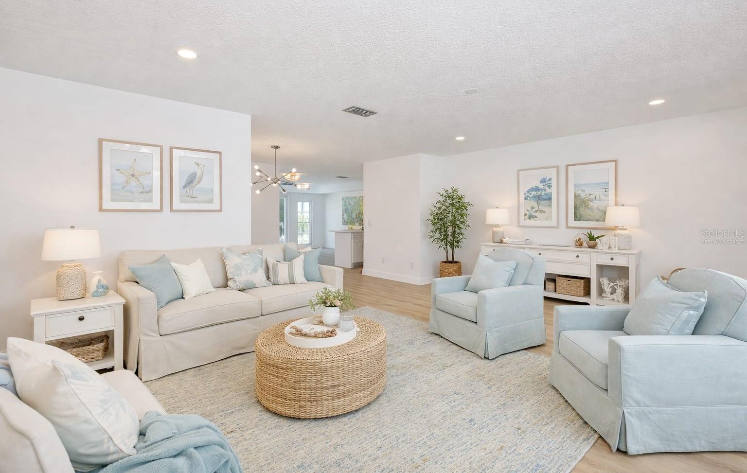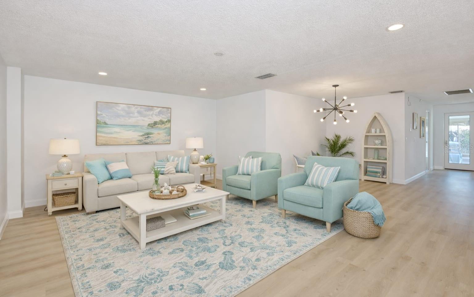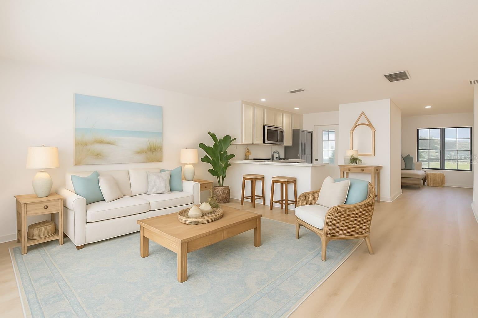 WOW! COMPLETE CUSTOM LUXURY REMODELED VILLA - MOVE-IN READY! Just bring your toothbrush and begin enjoying the upscale Florida lifestyle you've been waiting for. This highly sought-after Dedham model has been completely transformed with high-end modern finishes, an open-concept kitchen design, NO POPCORN CEILINGS and a thoughtfully updated floorplan that delivers both style and functionality. From the moment you step inside, you are welcomed into a bright, open, and beautifully designed living space that flows effortlessly from room to room. The spacious living area offers flexible furniture placement and is ideal for entertaining guests or relaxing in comfort. Luxury Vinyl Plank flooring runs throughout the home, creating a seamless aesthetic while offering durability and easy maintenance. The stunning gourmet kitchen is a chef's delight, featuring designer quartz countertops, newer stainless-steel appliances, and a modern layout that opens directly to the living and dining areas - perfect for hosting and everyday living alike. The split-bedroom floorplan provides ultimate privacy, with each bedroom offering its own ensuite. The primary suite features a walk-in closet plus an additional closet for ample storage. The just-completed primary bath feels like a private spa retreat, showcasing a zero-entry walk-in shower, elegant tile accents, and a comfort-height commode. This is not a standard remodel - it is a true luxury upgrade. Step outside and enjoy your morning coffee on the lanai overlooking the peaceful pond and Florida wildlife, or relax beneath your newly landscaped shade tree. The entire surrounding area has been professionally landscaped, enhancing both privacy and curb appeal. NOTABLE UPGRADES INCLUDE: - 2025 Air Conditioner - 2025 Electrical Panel - 2025 Water Heater - 2025 MyQ Garage Door Opener - 2025 Irrigation Panel - 2025 Sprinkler Pump - 2019 Roof - 2004 Repipe - Surge Protector - Dimmers on all can lighting in kitchen, living room, and bathrooms - Comfort-height commodes - Pond-fed lawn irrigation. Located in Sun City Center, one of Florida's premier 55+ communities, residents enjoy over 100 clubs, planned activities and trips, indoor and outdoor pools, café, fitness center, classes, and more. Conveniently located near Tampa International Airport, professional sports, and world-class beaches. This exceptional villa offers luxury, comfort, and lifestyle -all in one perfect package. LOOK NO FURTHER! THIS IS THE ONE!