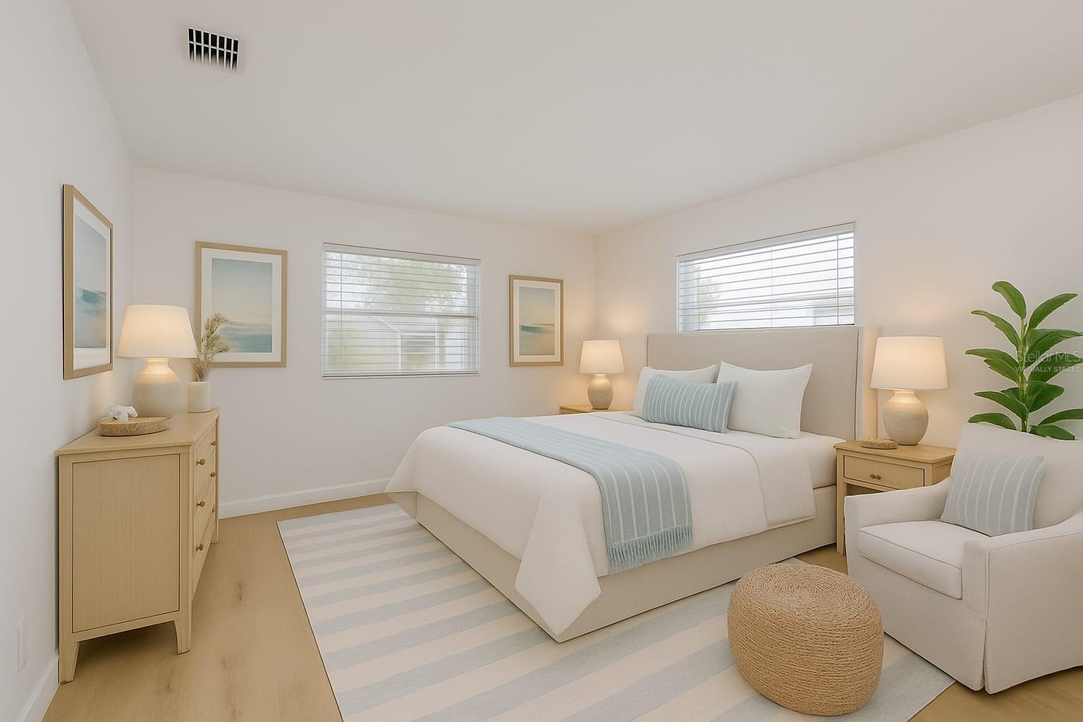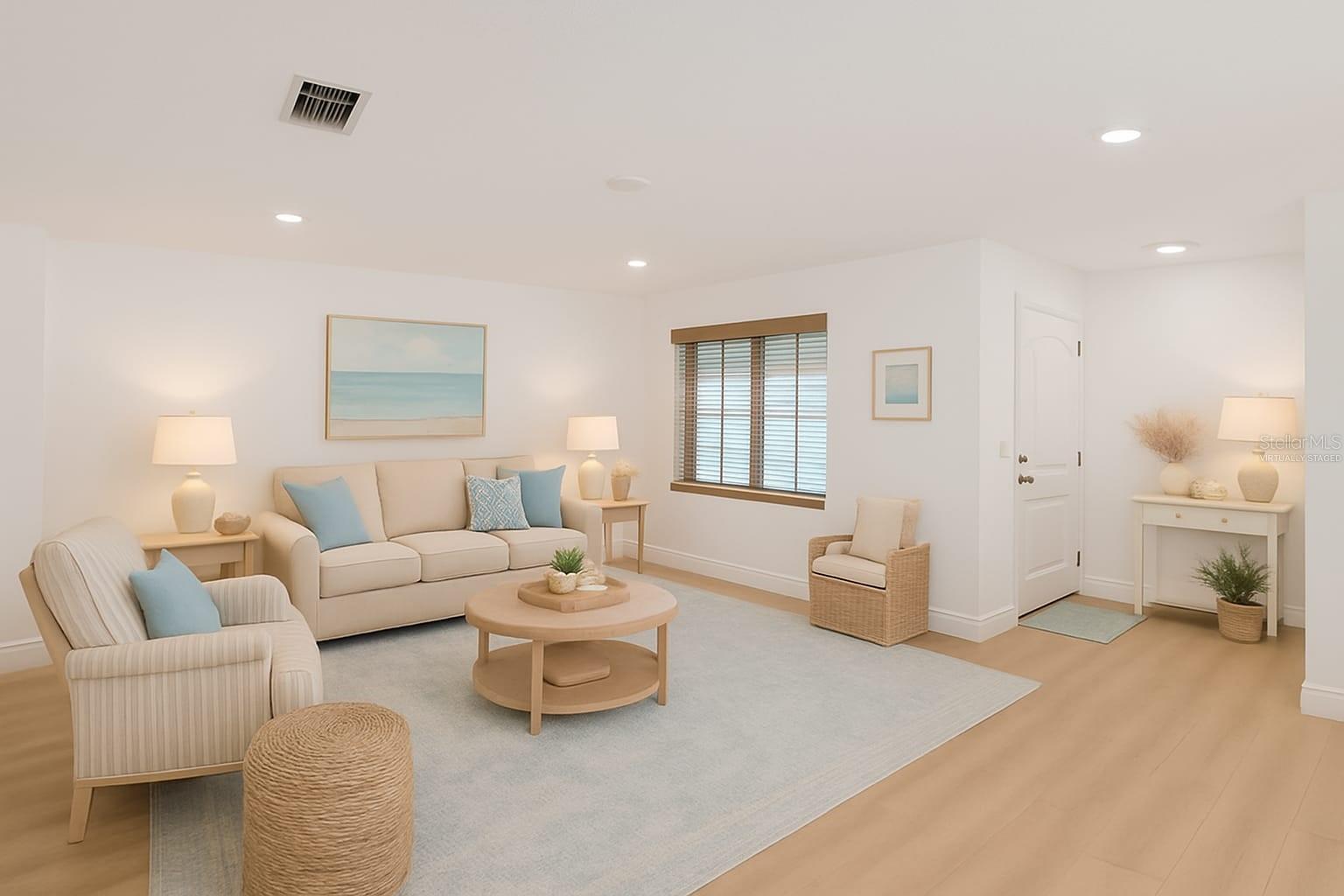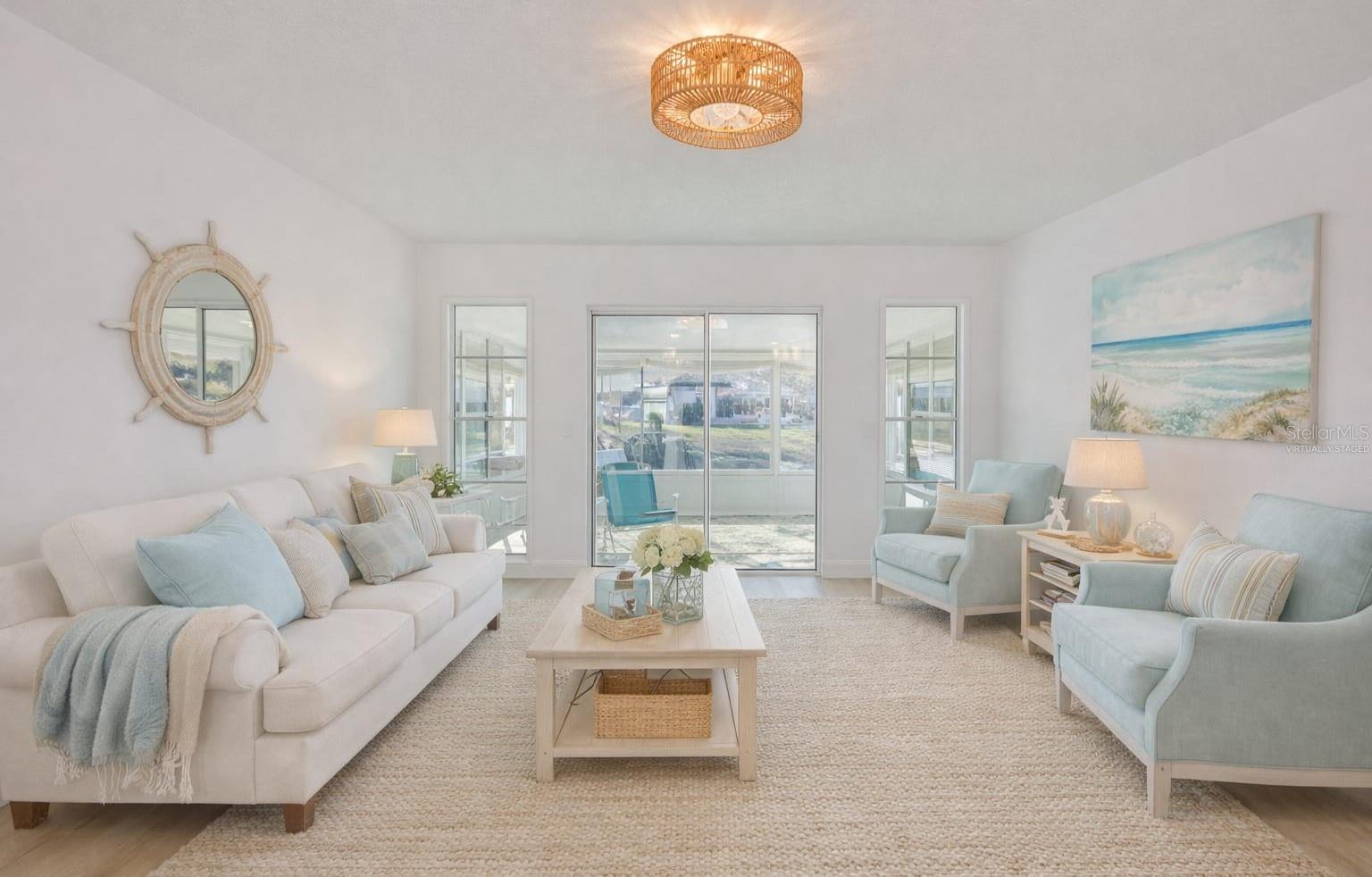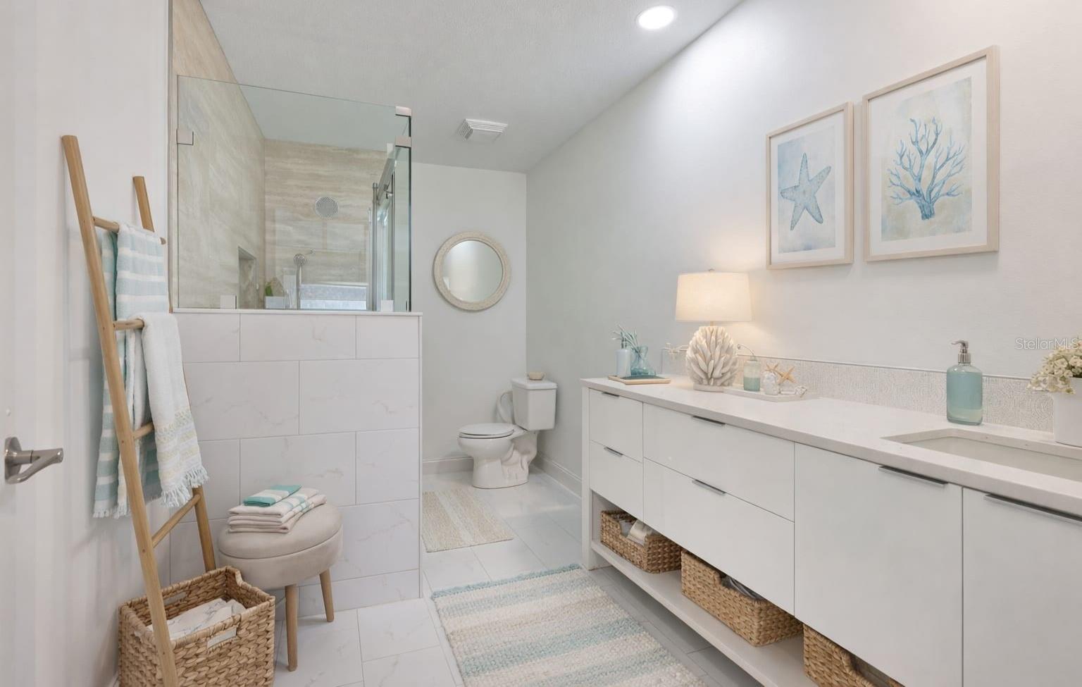 WOW! COMPLETE CUSTOM LUXURY REMODELED VILLA - MOVE-IN READY! Just bring your toothbrush and begin enjoying the upscale Florida lifestyle you've been waiting for. This highly sought-after Dedham model has been completely transformed with high-end modern finishes, an open-concept kitchen design, NO POPCORN CEILINGS and a thoughtfully updated floorplan that delivers both style and functionality. From the moment you step inside, you are welcomed into a bright, open, and beautifully designed living space that flows effortlessly from room to room. The spacious living area offers flexible furniture placement and is ideal for entertaining guests or relaxing in comfort. Luxury Vinyl Plank flooring runs throughout the home, creating a seamless aesthetic while offering durability and easy maintenance. The stunning gourmet kitchen is a chef's delight, featuring designer quartz countertops, newer stainless-steel appliances, and a modern layout that opens directly to the living and dining areas - perfect for hosting and everyday living alike. The split-bedroom floorplan provides ultimate privacy, with each bedroom offering its own ensuite. The primary suite features a walk-in closet plus an additional closet for ample storage. The just-completed primary bath feels like a private spa retreat, showcasing a zero-entry walk-in shower, elegant tile accents, and a comfort-height commode. This is not a standard remodel - it is a true luxury upgrade. Step outside and enjoy your morning coffee on the lanai overlooking the peaceful pond and Florida wildlife, or relax beneath your newly landscaped shade tree. The entire surrounding area has been professionally landscaped, enhancing both privacy and curb appeal. NOTABLE UPGRADES INCLUDE: - 2025 Air Conditioner - 2025 Electrical Panel - 2025 Water Heater - 2025 MyQ Garage Door Opener - 2025 Irrigation Panel - 2025 Sprinkler Pump - 2019 Roof - 2004 Repipe - Surge Protector - Dimmers on all can lighting in kitchen, living room, and bathrooms - Comfort-height commodes - Pond-fed lawn irrigation. Located in Sun City Center, one of Florida's premier 55+ communities, residents enjoy over 100 clubs, planned activities and trips, indoor and outdoor pools, café, fitness center, classes, and more. Conveniently located near Tampa International Airport, professional sports, and world-class beaches. This exceptional villa offers luxury, comfort, and lifestyle -all in one perfect package. LOOK NO FURTHER! THIS IS THE ONE!