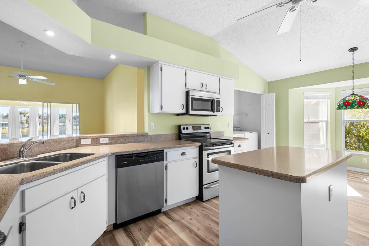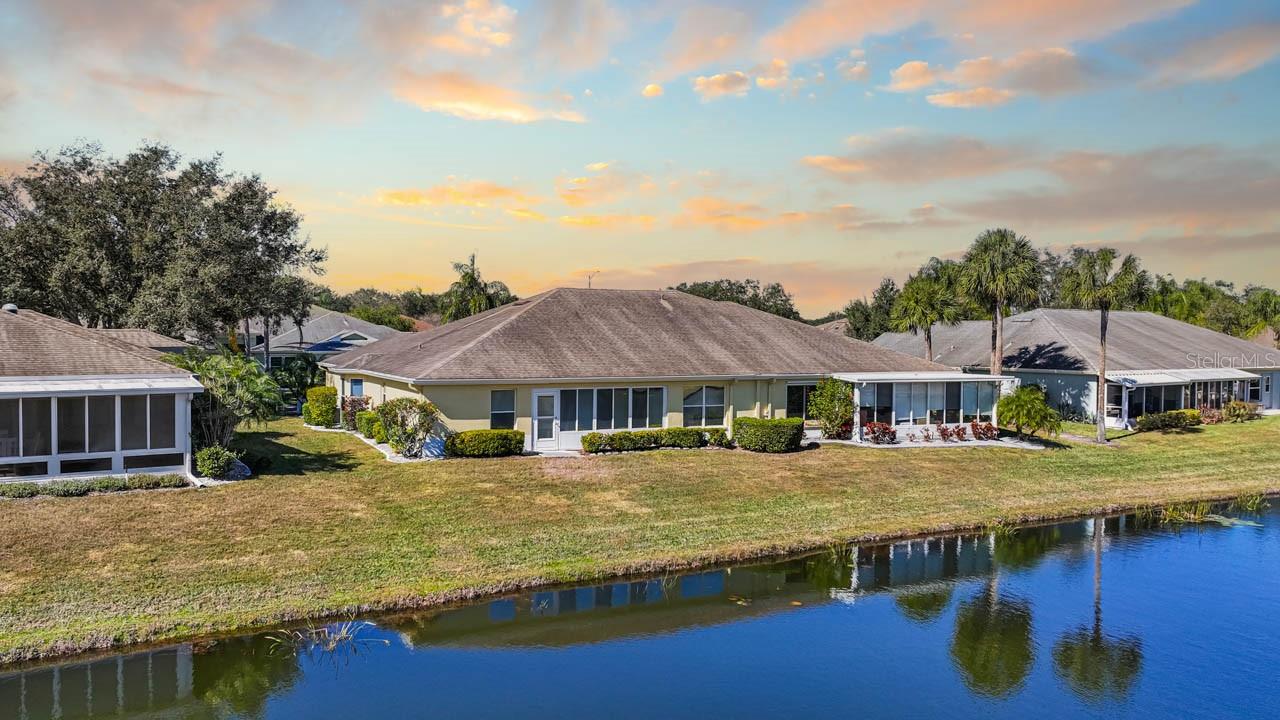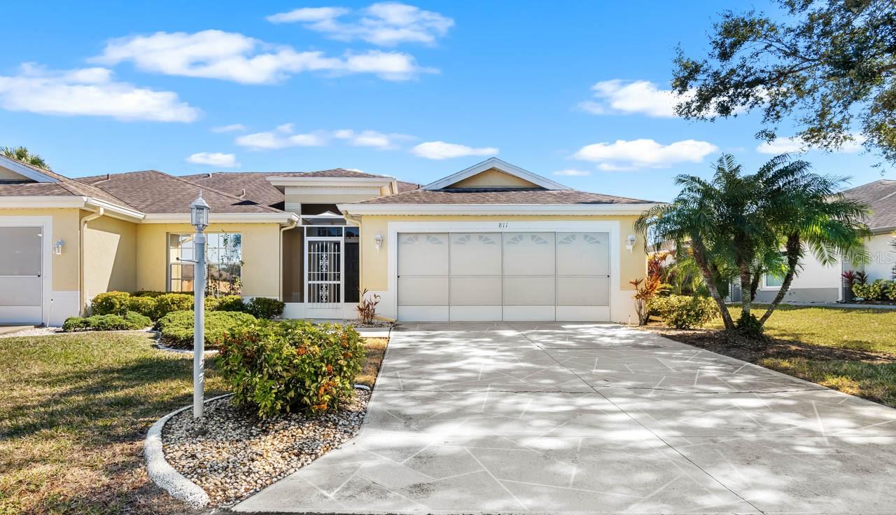 Step into effortless Florida living in this beautifully maintained WATER VIEW 2-bedroom + DEN, 2-bath, 2-car garage home, thoughtfully designed with a SPLIT-BEDROOM layout for comfort and privacy in the beautiful 55+ community of Kings Point! Both bedrooms have tranquil pond views, while LUXURY VINYL FLOORING THROUGHOUT adds a fresh, modern feel. The primary bedroom includes DUAL WALK-IN CLOSETS and an EN-SUITE BATHROOM containing a DUAL-SINK VANITY, shower stall, and separate SOAKING TUB! A versatile den (ideal as a formal dining room, home office, or flex space) maximizes functionality. The home features WHOLE-HOUSE RO SYSTEM, Corian countertops, wall niches, gutters, STAMPED CURBING, SCREENED FRONT PORCH, and EXTRA ATTIC INSULATION for added value and peace of mind! With an ISLAND, STAINLESS STEEL APPLIANCES, a BREAKFAST BAR, and attached dinette, the kitchen is prepared to meet all your culinary and entertaining needs. Unwind in the enclosed FLORIDA ROOM, perfect for morning coffee or evening relaxation regardless of the weather. A spacious 2-car garage provides ample storage with its included shelving, or can act as another porch area with the screen door pull-down! The golf cart-friendly community makes getting around a breeze. Enjoy maintenance-free exterior living and take full advantage of Kings Point’s exceptional amenities, including golf, pools, clubs, fitness centers, and more. Whether you’re looking for relaxation or an active lifestyle, this home offers the best of both—comfort, convenience, and style.