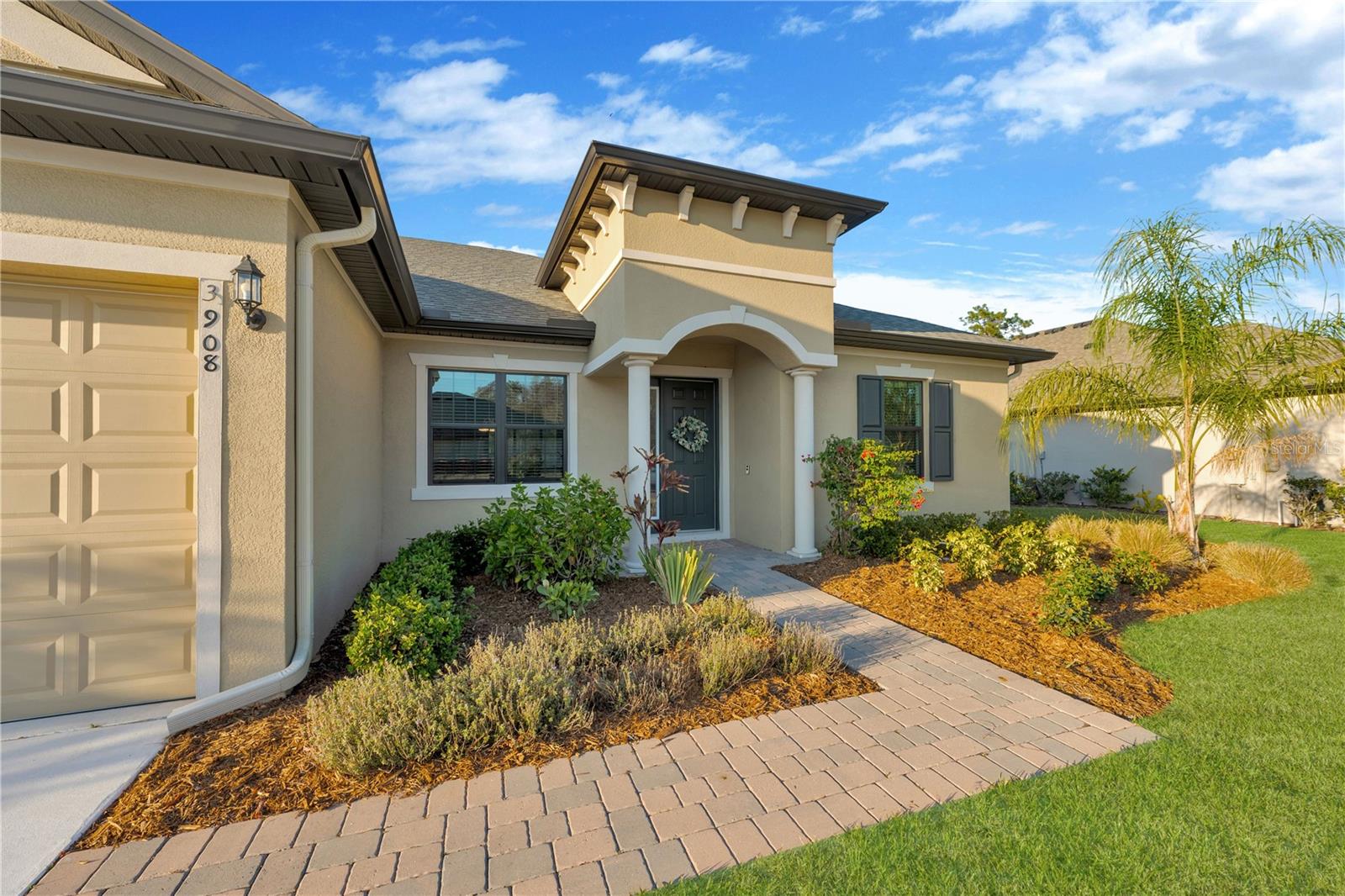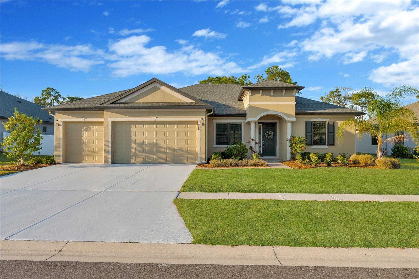 Tucked inside the tranquil and golf-cart-friendly community of La Paloma Village, this home offers the kind of serenity and space that make it easy to slow down and stay awhile. An open-concept layout welcomes you with warmth and intention. Engineered hardwood floors flow throughout the main living spaces, offering both durability and elegance. The great room creates effortless sightlines out to the private backyard. Whether you’re catching up over coffee or entertaining a full house, this space adapts beautifully. The kitchen is the heart of the home, designed to inspire both weekday meals and weekend gatherings. Granite countertops, stainless steel appliances, and natural gas cooking pair with a generous island that doubles as a prep zone, breakfast bar, and social hub. A split-bedroom floor plan ensures quiet and privacy. The primary suite overlooks the natural landscape and includes a spa-inspired bath with dual vanities, soaking tub, and walk-in shower. The oversized walk-in closet adds a dose of luxury that makes everyday life just a bit easier. Just off the kitchen there is another wing offering two spacious bedrooms, one with an en-suite bath. A dedicated study offers flexibility—perfect for remote work, reading, or creative projects. Step outside to a screened lanai with views of the preserve—a peaceful backdrop for morning routines or evening relaxation. Beyond aesthetics, this home delivers smart infrastructure: natural gas appliances, tankless water heater, hurricane-impact windows, and 8-foot interior doors—all reflecting the craftsmanship woven throughout. La Paloma Village borders the Cypress Creek Golf Club and also offers convenient access to Tampa, Sarasota, and St. Pete. With Tampa International Airport, St. Joseph’s South Hospital, and MacDill AFB within easy reach, you’re always close to what matters—yet tucked away from it all. Whether you’re looking for a fresh start or a forever home, this is where comfort, quality, and connection meet.