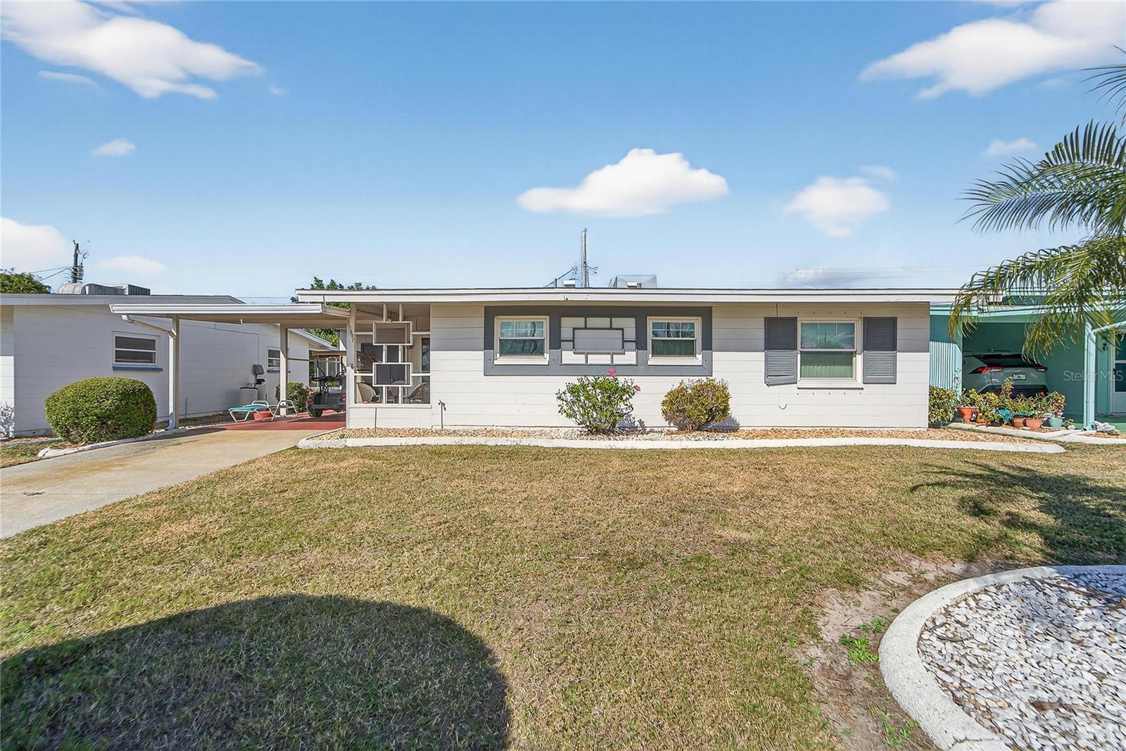 Easy Living Starts Here in Sun City Center! Welcome home to this charming 2-bedroom, 2-bath home with a carport, nestled in the heart of Sun City Center, one of Florida’s most sought-after 55+ communities. This home features a neutral color palette that’s ready for your personal touch. The kitchen offers an eat-in area, pantry and closet storage, a window over the sink, and a convenient pass-through to the great room—perfect for everyday living or entertaining. The spacious Florida room adds flexible living space and opens to the backyard, with easy access to the laundry room. Both bedrooms feature two windows each and roomy closets. The primary suite includes a walk-in shower, while the guest bath features a tub/shower combo. Recent updates include a new roof (2024) along with new toilets, sinks, and bathroom flooring, offering peace of mind from day one. Enjoy low-maintenance living with water and lawn care included in the affordable $110/month HOA. Cruise the golf-cart-friendly streets to an incredible array of amenities, including a state-of-the-art fitness center, indoor Olympic lap pool, resistance pool, outdoor pool, pickleball, tennis, softball, arts & crafts, theater, library, woodworking, pottery, dancing, and more—plus 150+ clubs and activities to fit every lifestyle. Optional memberships are available at Club Renaissance, featuring 72 holes of golf. Conveniently located between Tampa and Sarasota, you’re close to airports, shopping, dining, entertainment, and Florida’s award-winning sandy beaches. Leave the stress behind and start enjoying the lifestyle you deserve—this is Florida living at its best and most affordable