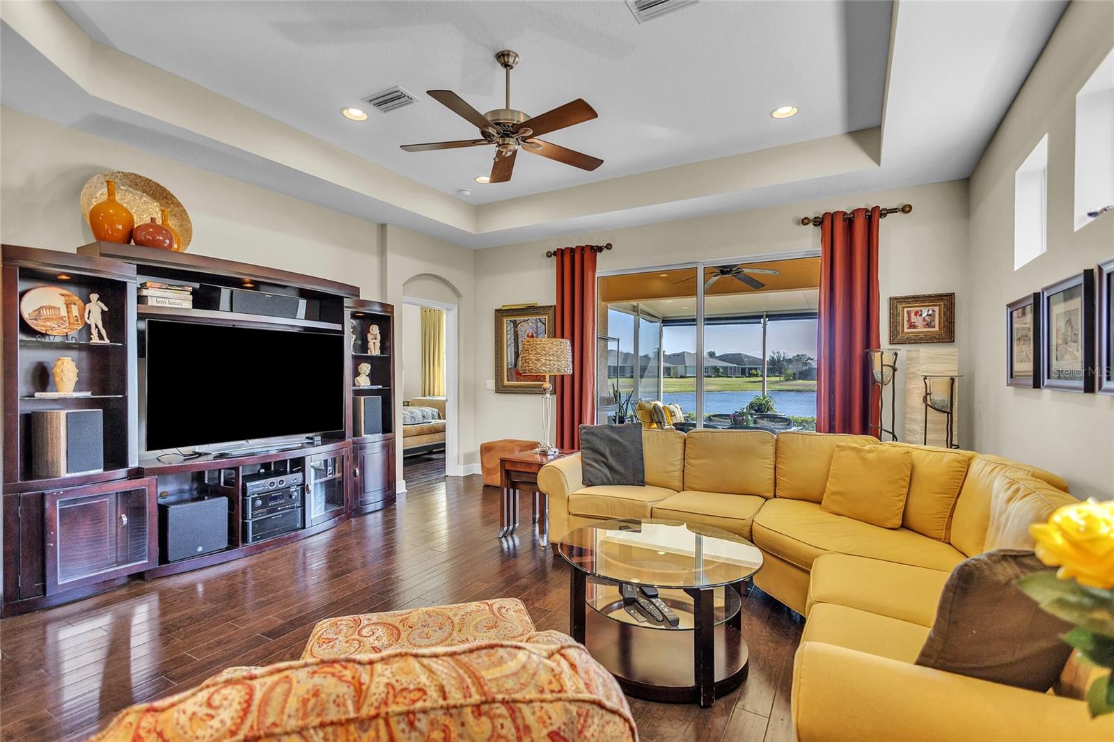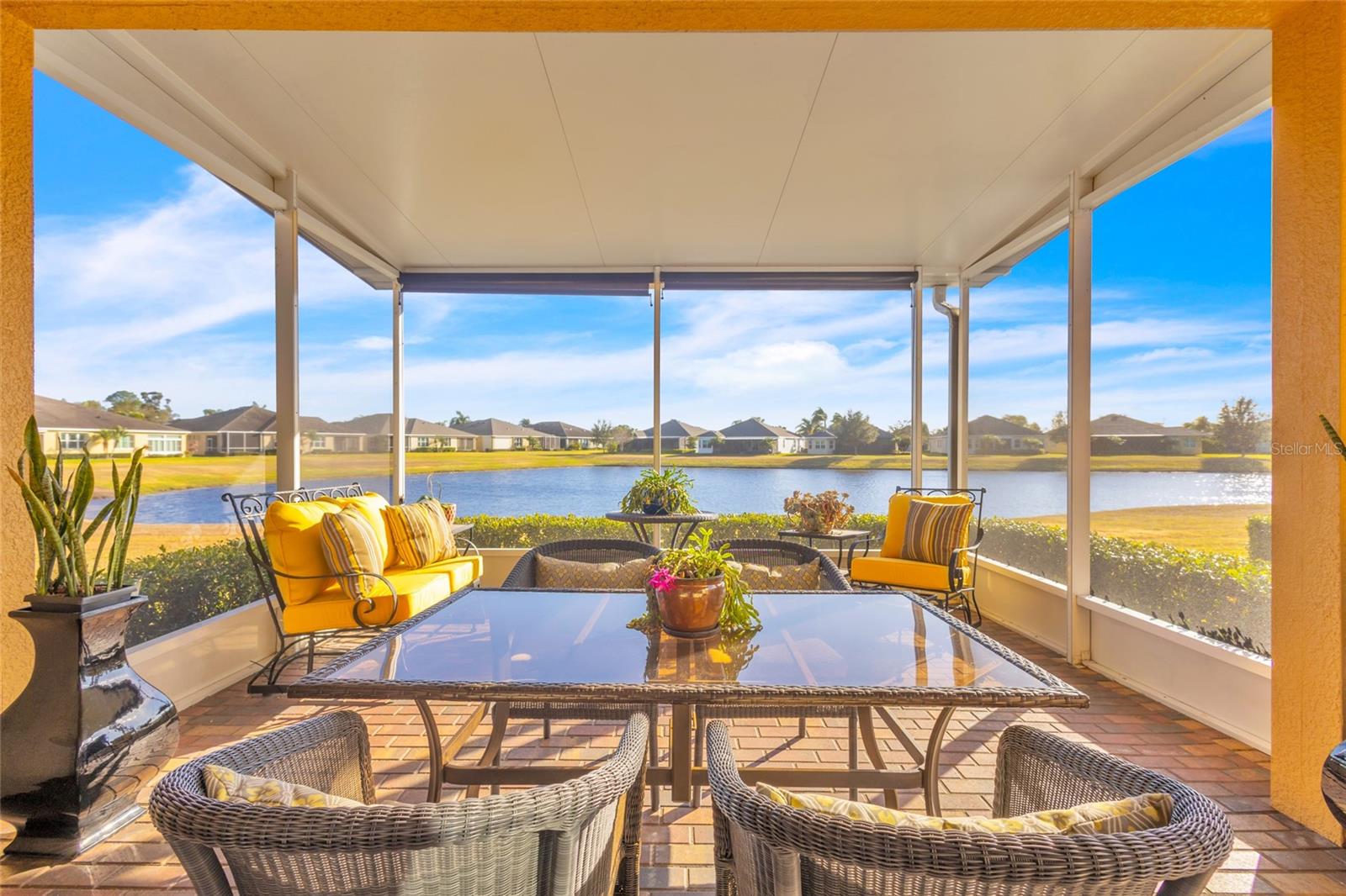 Luxury Lakefront Villa in Verona at Renaissance - Experience refined Florida living in this luxury lakefront villa located within the venerable, gated Verona at Renaissance community in Sun City Center. Thoughtfully designed & meticulously maintained, this move-in-ready waterfront villa features hand-scraped engineered Hardwood Floors throughout property & Ceramic Tile Flooring in all wet areas, blending timeless elegance w/low-maintenance convenience. The stylish kitchen is ideal for both everyday living and entertaining, GE appliances w/NEW dishwasher, Designer Backsplash, microwave hood w/exterior ventilation, abundant wood cabinetry, & a separate filtered water dispenser—perfect for buyers seeking an energy-efficient luxury villa in Florida. The home is also equipped w/ Energy Star LG washer/dryer, adding modern efficiency & convenience. Relax & enjoy sunny, unobstructed tranquil lake views from the Extended recently Re-Screened Lanai, ideal for morning coffee or evening gatherings. The owner’s suite features triple windows overlooking the lake & a spa-inspired ensuite w/ double sinks, granite countertops, enlarged walk-in shower, private water closet, & a large custom Coastal Closet system. The garage has been upgraded w/ attic access & Plywood boards for storage, Epoxied Garage Floor, Screened privacy Garage Door, & Hurricane-Rated Garage Door, adding both durability & functionality. Additional highlights include ELECTRONICALLY operated Hurricane Shutters, a Whole-House Water Softener, (2/2026) Water Heater & construction compliant with the Florida Building Code’s rigorous wind-resistance standards. The Exterior was freshly Painted in 2024, enhancing curb appeal & long-term value. Verona at Renaissance offers resort-style living with a plethora of amenities, including golf, swimming, tennis, an active clubhouse, & an on-site restaurant, plus full access to all Sun City Center activities. HOA fees include roof replacement, extensive landscaping and exterior paint making this an exceptional low-maintenance villa in a gated community. Seller is including most furniture, providing outstanding value & true move-in-ready convenience. All information deemed accurate but not guaranteed.