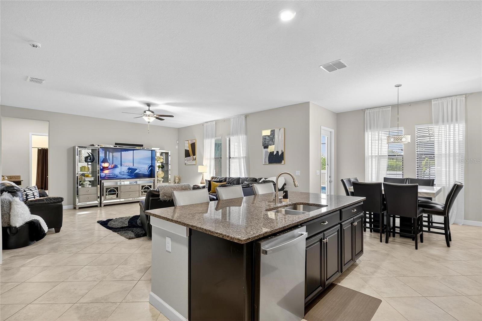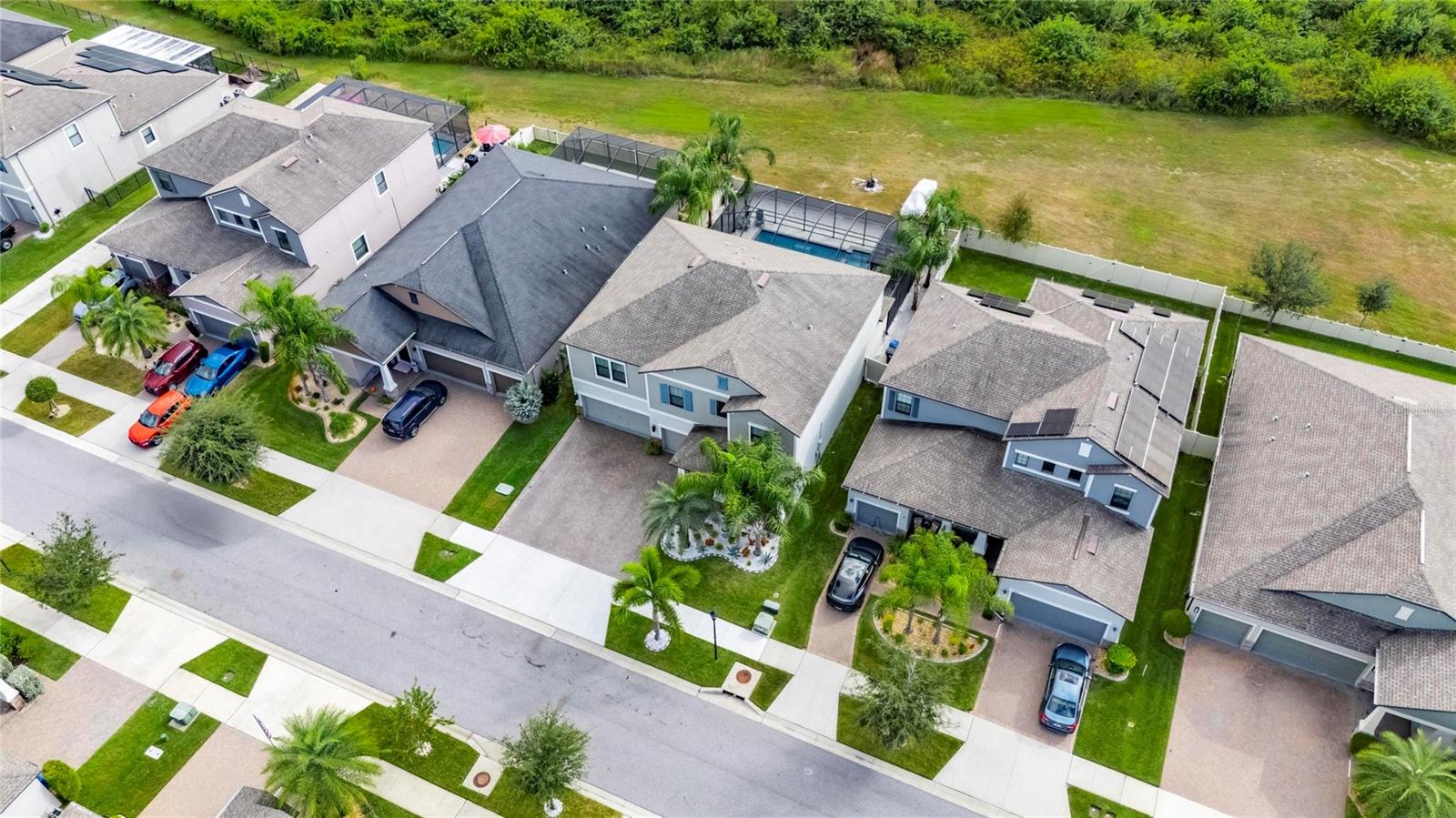 Welcome home to 9847 Sage Creek Dr, an EXECUTIVE STYLE 5 bedroom, 3 bathroom POOL home offering nearly 3,800 square feet of living space. From the moment you arrive, the STUNNING CURB APPEAL sets the tone. An oversized THREE-CAR paver driveway welcomes you home, framed by lush tropical landscaping, decorative curbing, stately columns with stone accents, and an inviting front porch that exudes timeless sophistication. Inside, a breathtaking grand entrance greets you with soaring ceilings and an abundance of natural light, creating an immediate sense of openness and grandeur. Just off the entryway, a versatile flex room offers endless possibilities—perfect as a home office, elegant sitting room, or formal dining space tailored to your lifestyle. With generous space and seamless flow into the kitchen, the grand room creates the perfect setting for gatherings large or small. The chef-inspired kitchen is a true centerpiece, featuring rich espresso cabinetry, granite countertops, stainless steel appliances, a convenient butler’s pantry, and an enormous walk-in pantry that ensures abundant storage. The first floor also includes a private bedroom suite, ideal for multi-generational living or hosting out-of-town guests. Upstairs, a spacious bonus room provides additional flexible living space—perfect for a media room, playroom, or secondary lounge. The PRIMARY SUITE is a private retreat, showcasing a massive bedroom with serene conservation views. The luxurious ensuite bath features a soaking tub, separate standing shower, private water closet, dual vanities, and an expansive walk-in closet that conveniently connects directly to the laundry room. Three additional generously sized bedrooms and a full bathroom complete the upper level, offering comfort and space for everyone. The true SHOWSTOPPER lies outdoors. Step into your own private BACKYARD OASIS featuring a stunning in-ground pool and spa. A large gazebo with a built-in OUTDOOR KITCHEN creates the ultimate entertainment space, while the screened lanai and covered patio provide year-round enjoyment. Surrounded by open conservation land, the home offers picturesque views and exceptional privacy—delivering a peaceful, resort-style atmosphere right at home.
