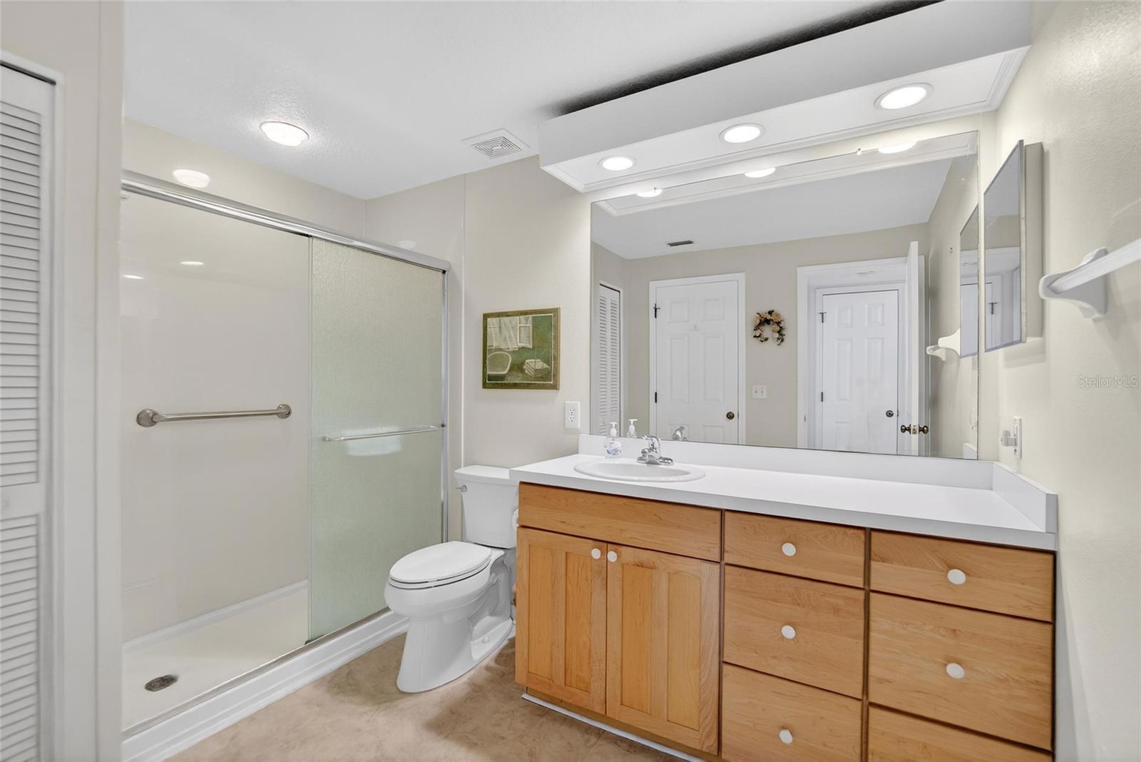 Ready to claim your piece of paradise? This move-in ready 2-bedroom, 2-bath, 1.5-car garage condominium overlooks the beautiful Cypress Creek Championship Golf Course and offers peaceful water and nature views. Located in the highly desirable Fairway Palms community within the Villages of Cypress Creek, this home is perfect as a full-time residence or seasonal retreat. All furniture and home contents are included with the sale, making it truly turnkey - just bring your suitcase and start enjoying the Florida lifestyle. This well-maintained Hawthorne floor plan features vaulted ceilings and an open layout designed for comfortable living and entertaining. The kitchen showcases beautiful bamboo hardwood flooring, updated cabinets, a large eat-in area, and a lowered counter that creates a seamless transition into the dining space. The primary suite offers tranquil golf course and water views, a spacious walk-in closet, and an updated ensuite bathroom with walk-in shower, new vanity, and toilet. The guest bedroom also includes a large walk-in closet featuring a built-in desk, creating the perfect space for a private home office or workspace, along with a private ensuite bath with walk-in shower and its own exterior access, making it an ideal private suite for visitors. Both bathrooms feature walk-in showers and have been designed with handicap accessibility in mind. Enjoy relaxing mornings or evenings on the 13x14 screened lanai overlooking the scenic fairways and water of the Cypress Creek Championship Golf Course, while watching a variety of birds and wildlife throughout the day. Additional features include new interior six-panel doors, inside laundry room, ample storage, and numerous major updates including a new roof (2025), complete home re-plumbing with new water heater (2025), and HVAC system (2019). Fairway Palms is a beautifully landscaped, pet-friendly, golf-cart friendly community with no age restrictions. Residents enjoy low monthly fees that include water, basic cable, exterior and grounds maintenance, escrow reserves, and access to community amenities. Just steps from the home are the clubhouse, library, heated community pool, fitness center, and shuffleboard courts. The community has no CDD fees and the property is not located in a flood zone. Conveniently located in Sun City Center with easy golf cart access to nearby shopping and dining, this meticulously maintained home offers low-maintenance living and the relaxed Florida lifestyle you’ve been waiting for.
