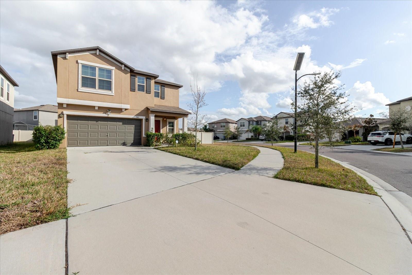 Welcome to a home that truly has it all—space, upgrades, privacy, and a vibrant community to enjoy it in. Just three years young, this beautifully maintained six-bedroom, three-bath residence sits proudly on an oversized corner lot offering more than ¼ acre of fully fenced outdoor living—a rare find in Southshore! Step inside from the covered front porch and you’re greeted by a grand foyer with a direct view to the expansive backyard. The heart of the home unfolds just beyond: a gourmet kitchen with granite countertops, subway tile backsplash, upgraded lighting, a gas range, a massive walk-in pantry, and an island that seats five. The open kitchen, dining, and living areas create the perfect setting for gatherings, celebrations, or quiet mornings with coffee. A full bedroom and bathroom downstairs provide ideal accommodations for guests or anyone avoiding stairs. Upstairs, a spacious loft offers endless possibilities—game room, second living area, home gym, or creative space. The owner’s retreat is bright and generous, complete with a spa-like ensuite and walk-in closet. All secondary bedrooms are impressively sized, with two enjoying peaceful pond views. The upstairs bath features double sinks and a separate tub/shower area for easy morning routines. Laundry is conveniently located upstairs, with washer and dryer included. Outside, the vinyl-fenced yard offers privacy and room to play, garden, or entertain. The community adds even more to love—multiple pools, sport courts, playgrounds, and lively neighborhood events like Food Truck Thursdays. With golf, dining, shopping, and major highways nearby, convenience is always at your doorstep. This spacious, move-in-ready home is vacant and waiting for you to make it yours!