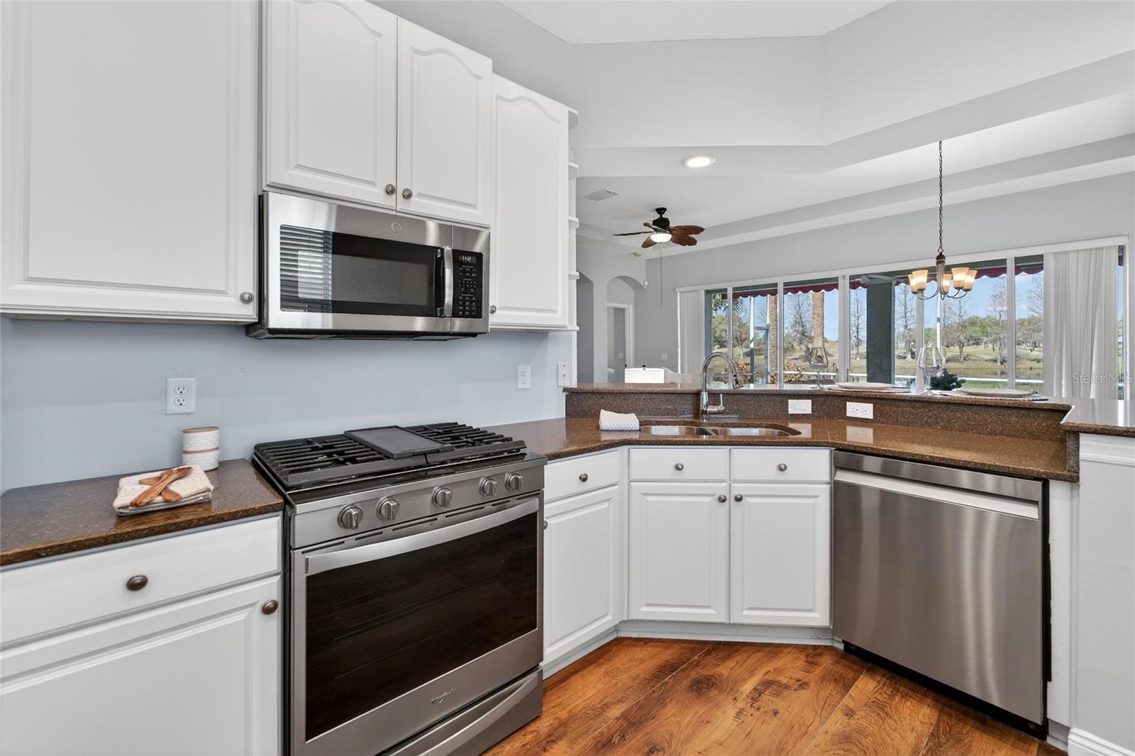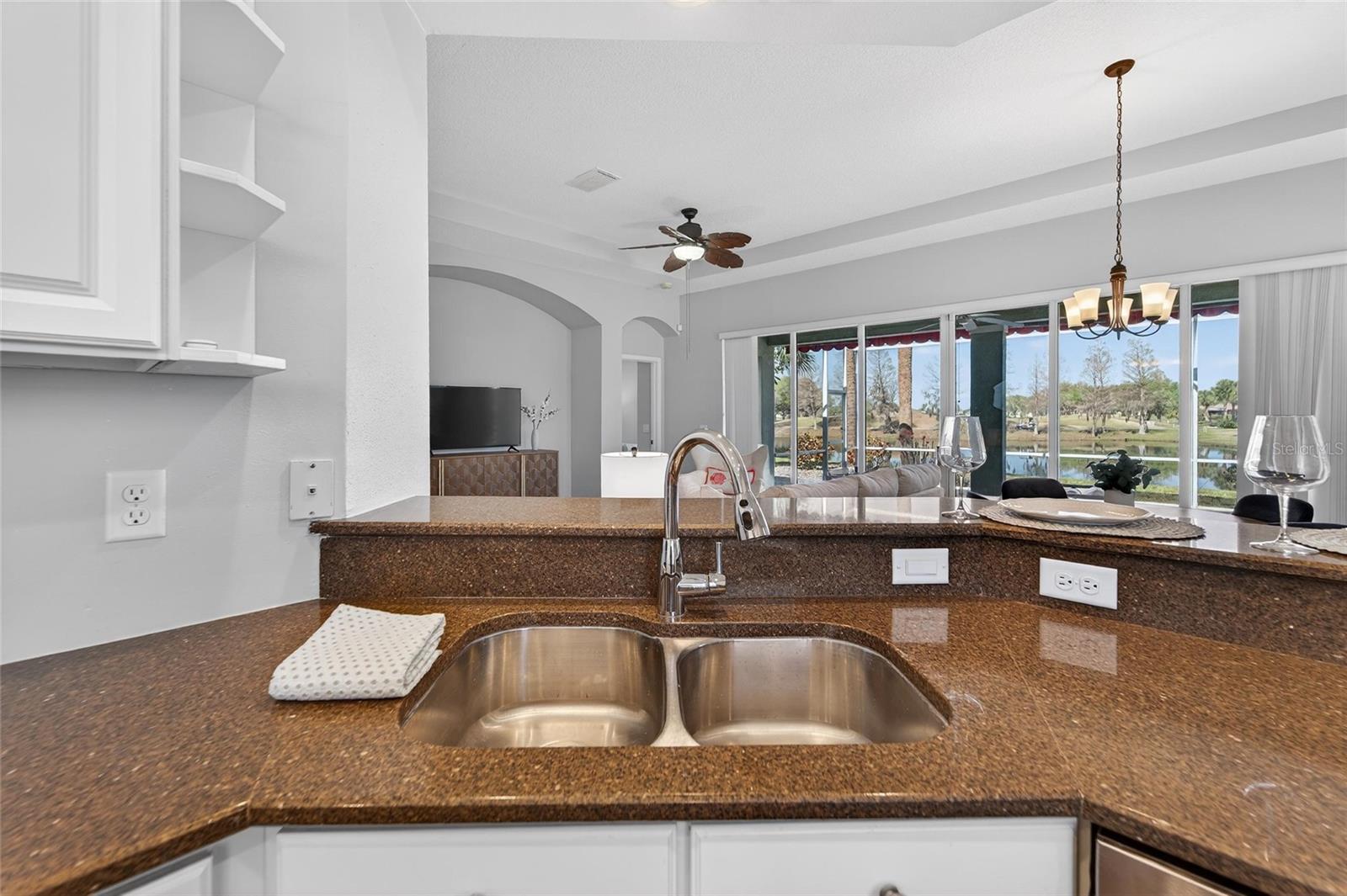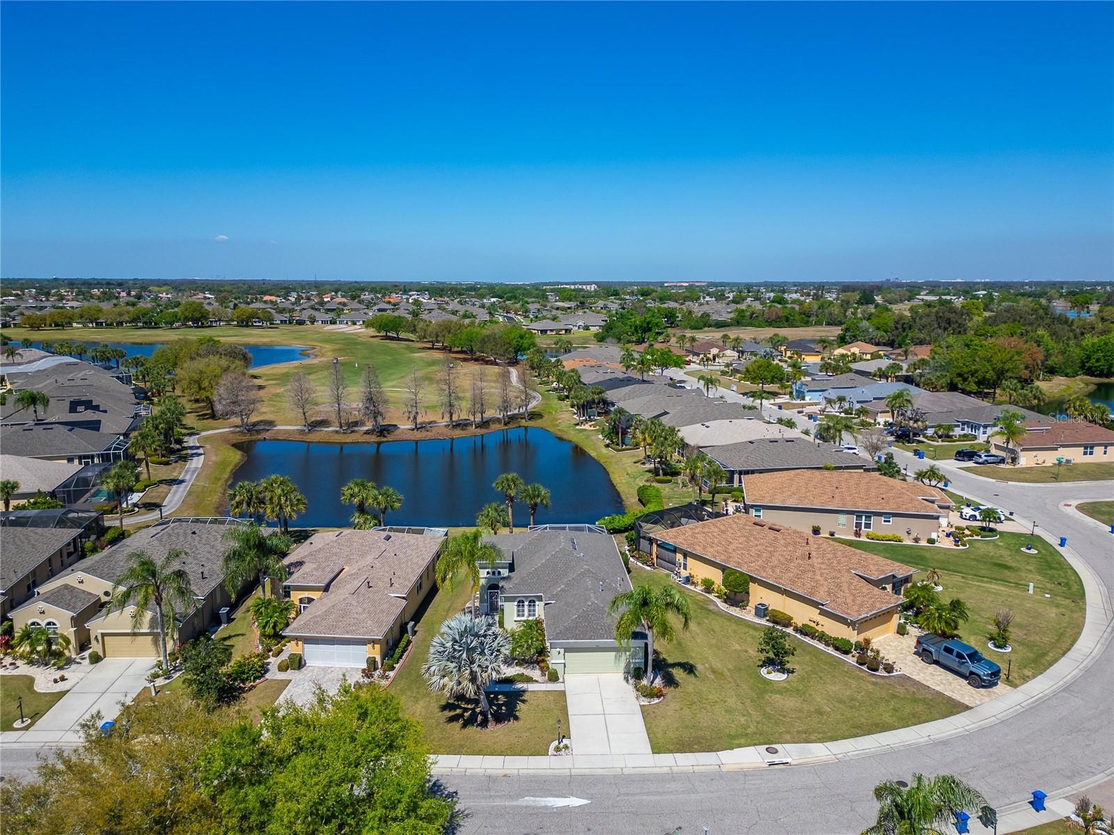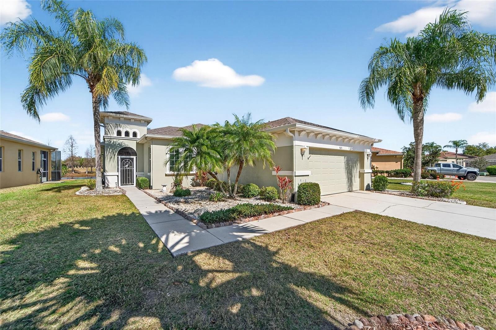 BRAND NEW ROOF | STUNNING GOLF & WATER VIEWS | PAVER LANAI | GAS RANGE | SUNSET EXPOSURE ? Welcome to elevated retirement living in the highly sought-after Renaissance community of Sun City Center. Perfectly positioned along the beautiful Club Renaissance Golf Course, this well-maintained 3-bedroom, 2-bath home showcases breathtaking views of the 3rd green and sparkling pond — all framed by unforgettable west-facing sunsets. From the moment you arrive, you’ll appreciate the inviting screened front porch — the perfect place to enjoy your morning coffee and peaceful surroundings. Inside, the home offers a bright, open floor plan with a spacious great room and triple sliding glass doors that open fully across the back, seamlessly blending indoor and outdoor living. The kitchen is both stylish and functional, featuring granite countertops, abundant cabinetry, and a gas range that makes cooking and entertaining effortless. The primary suite provides a comfortable retreat with dual vanities, a soaking tub, walk-in shower, and generous closet space. Two additional bedrooms are thoughtfully located on the opposite side of the home for added privacy. Step outside to the covered paver lanai, ideal for relaxing or entertaining while enjoying serene golf course and water views. Additional features include wood flooring, elegant architectural details throughout, and a two-car garage with space for a golf cart. Living in Renaissance means enjoying access to the Club Renaissance lifestyle, including dining, social events, fitness classes, resort-style pool, and Spa Celeste. Residents of Sun City Center also enjoy golf cart-friendly living, multiple clubhouses, pickleball courts, indoor and outdoor pools, and convenient access to shopping, dining, healthcare, major highways, Tampa, Sarasota, and Florida’s award-winning Gulf Coast beaches. This is Florida living at its finest — relaxed, active, and beautifully connected to everything Sun City Center.