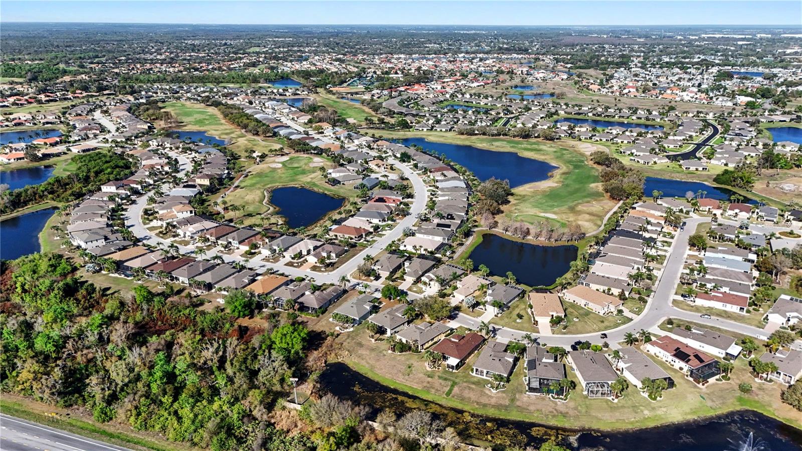 Welcome to this charming two-bedroom, two-bathroom single-family home located in the desirable 55+ Burchwood neighborhood of Sun City Center. Offering 1,380 square feet of living space, peaceful pond views, and no rear neighbors, this home provides a serene setting perfect for relaxed Florida living. Major updates include a 2022 roof and 2023 A/C, offering comfort and peace of mind. Step inside through the foyer entrance into a light and airy open floor plan featuring high ceilings and ceiling fans throughout. The front living room provides a welcoming space for guests, while the spacious family room flows seamlessly toward the screened and covered lanai, where you can enjoy tranquil water views and the Florida breeze year-round. The kitchen is well-equipped with granite countertops, matching appliances, and a convenient laundry room located just off the kitchen for added functionality. The split bedroom floor plan provides privacy, with wood-look vinyl flooring in both bedrooms. The primary suite features an attached bathroom with a dual-sink vanity and a glass-enclosed shower. The second bedroom is nicely sized and includes a ceiling fan, making it perfect for guests or a home office. Step outside to the screened and covered lanai, an ideal spot to relax and take in the peaceful pond views without rear neighbors. Residents enjoy being just a short golf cart ride from Club Renaissance, where amenities include a resort-style pool, dining and drinks, social activities, land and water fitness classes, spa treatments, personal trainers, and much more. Conveniently located near golf courses, shopping centers, and numerous dining options, this home offers both comfort and an active lifestyle in one of the area’s most popular 55+ communities. A current tenant is in place until the end of July, making this a great opportunity for investors or buyers planning ahead. Schedule your showing today!