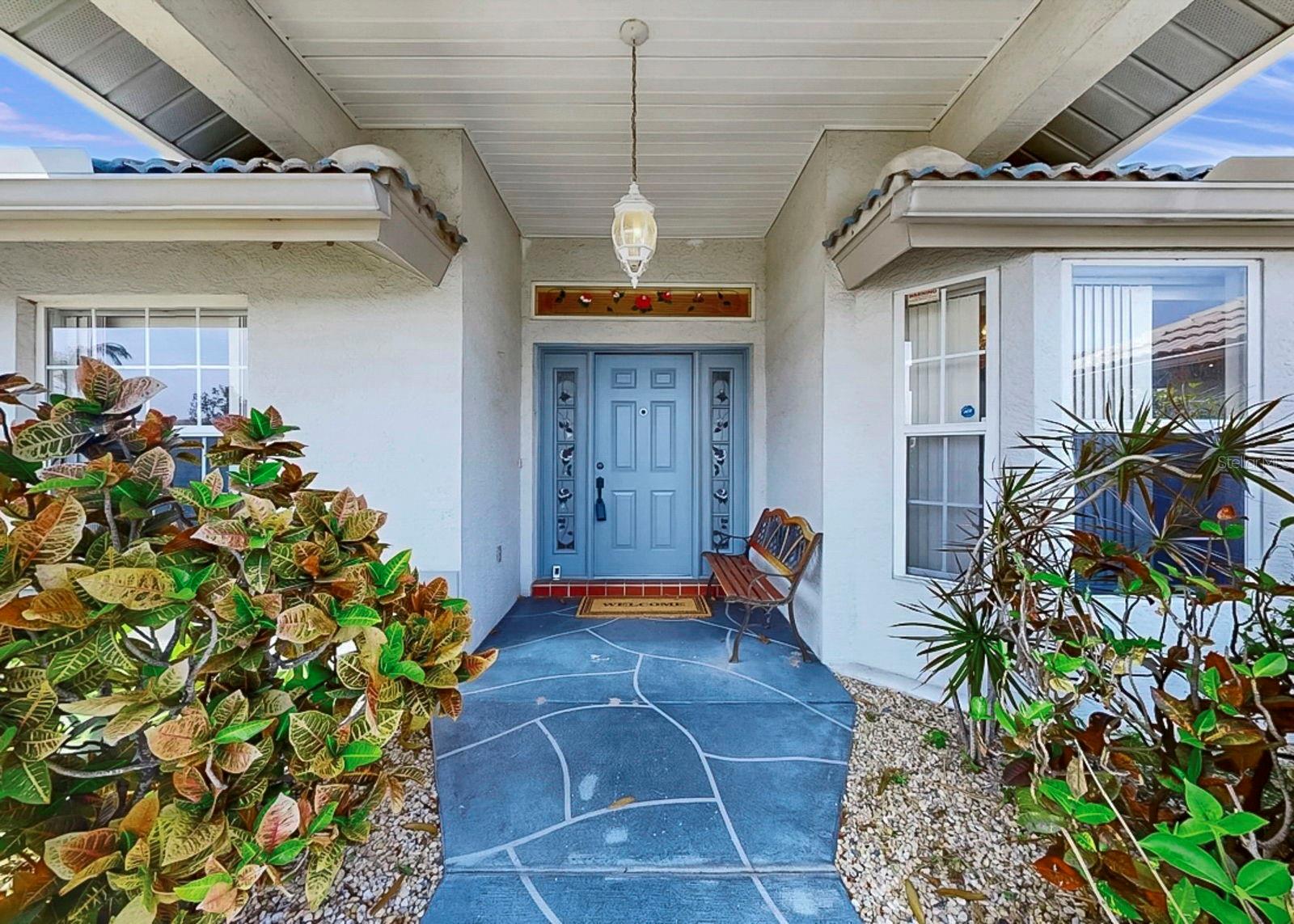 Prepare to be impressed! You will love the curb appeal of the beautiful home with its lush, tropical landscaping, tile roof, and tasteful exterior color palette. Step into the sun-filled foyer and view an open floor plan with cathedral ceilings and large windows. The expansive living room flows seamlessly into the formal dining area, which features a large bay window. The kitchen features an Italian tile floor, a large pantry, and an eat-in area that opens to a back patio, where you can step outside to pick oranges and lemons from your backyard. The large primary bedroom suite also opens to the back patio and boasts a tray ceiling and two separate walk-in closets. The luxurious master en-suite bathroom features mosaic tile flooring, marble dual vanities, a linen closet, a jacuzzi tub, and a glass-enclosed walk-in shower. The split-bedroom layout provides privacy with two additional bedrooms and a full bathroom. This home has had multiple quality upgrades, and a full list is available for prospective buyers. This solid-block constructed home was built by Del Webb and sits on a gorgeous, large corner lot. Del Webb is recognized for its quality constructed homes and communities designed for 55+ active lifestyles. Sun City Center is one of the nation’s premier active adult communities, offering numerous clubs and countless resort-style amenities including indoor and outdoor pools, a state-of-the-art fitness center, tennis and pickleball courts, lawn bowling, dog parks, and golf courses. This true golf-cart community also offers close proximity to shopping, dining, medical facilities, and major highways. Conveniently located near I-75, you are just a short drive to downtown Tampa, Tampa International Airport, and the world-famous Gulf beaches. This home is also strategically located for military retirees with a straight shot to MacDill Air Force Base and the James A. Haley Veterans Hospital. Don’t miss your chance to start living the good life in this stunning Sun City Center home! **Ask us about our Preferred Lender Incentive available where you could save thousands $$$**
