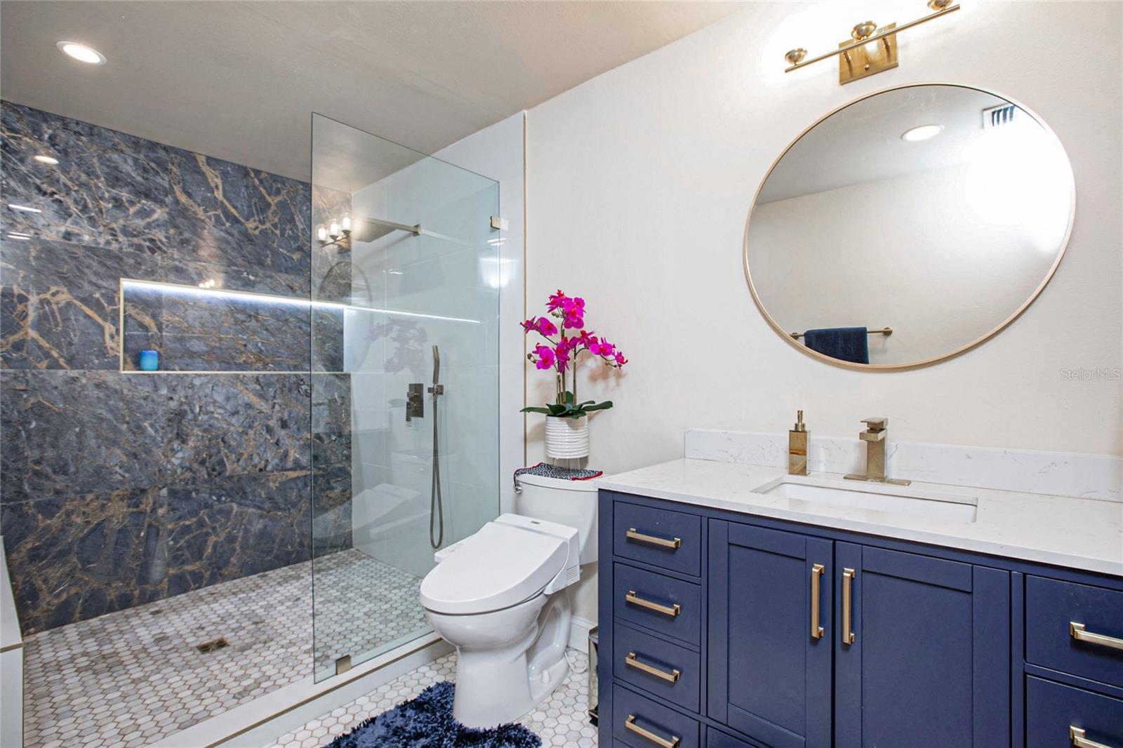 Beautiful HIGH END renovations throughout this home. Your entryway features luxurious and rich blue and gold wallpaper on a striking accent wall opening onto a comfortable living room and dining area is to relax and entertain in. Enjoy preparing a meal, a pre golf -round snack, or a relaxing evening drink in the updated kitchen with stone countertops before retiring to enjoy the views and eye-catching sunrises, and sunsets from the family room and or step through the sliding glass doors out to the exterior patio. This home also features not one, but two spacious bedrooms with en suite bathrooms. The fully renovated master bathroom provides a luxurious refuge from the worries of the day, with palatial marble and tile throughout including a show-stopping blue, grey and gold tile accent wall with matching fixtures in the shower. In addition to this masterpiece, you will also have access to the wealth of what the golf cart-friendly Sun City Center has to offer. Renaissance and Cypress Creek golf courses are nearby with public tee times and championship layouts, and if you prefer the private country club experience there is Scepter and Caloosa. Leaving the links, Sun City Center offers a wealth of additional social activities from ceramics, model railroading, and stained glass, to more active activities such as tennis, swimming and lawn bowling. Plus fun social experiences such as dancing, billiards, and cards... even movies and golf cart parades! Sun City Center is an exceptional place to live, and this condo lets you bring that exceptionalism home with you. This home also features an ASSUMABLE LOW INTEREST LOAN as a potential sale option! Do not wait, this superb renovation and renovation does not come along very often. Book your showing today!