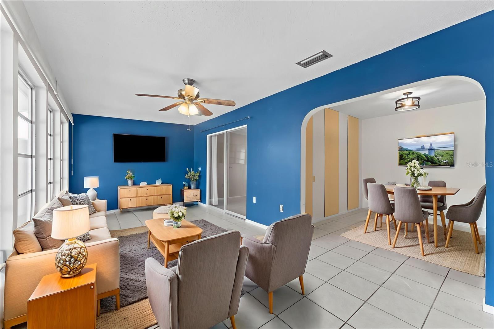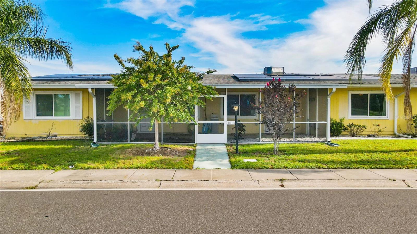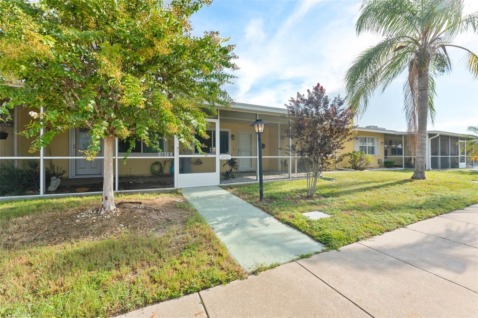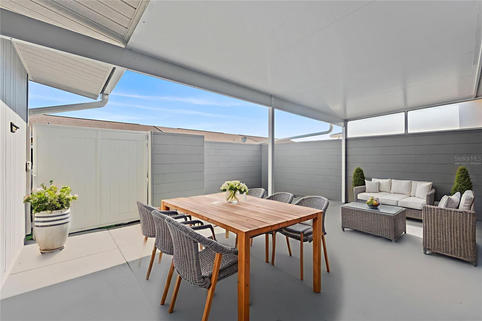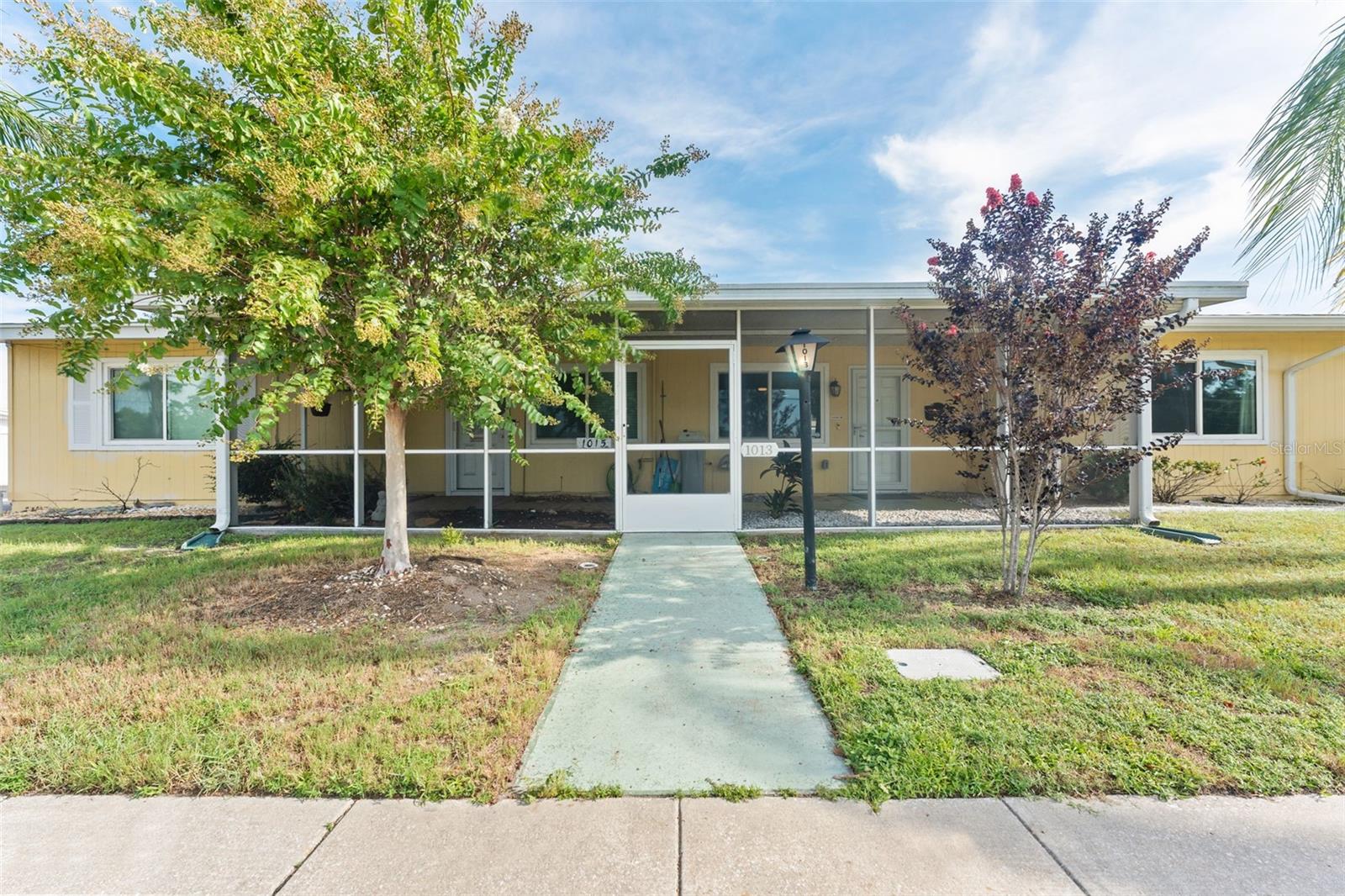 Welcome to 1013 Rickenbacker Dr, where low-maintenance living meets plenty of room to spread out. This spacious 2-bedroom, 2-bath villa is tucked in the heart of Sun City Center, giving you easy access to shopping, dining, golf, and the endless list of community amenities. Out front, you’ll find a screened-in porch perfect for sipping your morning coffee and waving to neighbors. Step inside to a bright, open layout with neutral tile and terrazzo floors—no carpet here, just easy-to-clean surfaces. The kitchen has stainless steel appliances, plenty of counter space, and a peek into the dining and living areas so you can still be part of the conversation while you cook. The Florida room, splashed with bold blue accent walls, is a sunny bonus space for hobbies, an office, or just relaxing with a good book. Both bedrooms are generously sized, and the primary has an ensuite bathroom. Out back, enjoy your own private courtyard—fenced and partially covered—ideal for grilling, container gardening, or simply soaking in the Florida weather. A roomy one-car garage and additional parking in the rear make life even more convenient. If you’re ready for a home that’s comfortable, practical, and move-in ready, this is the one to see.