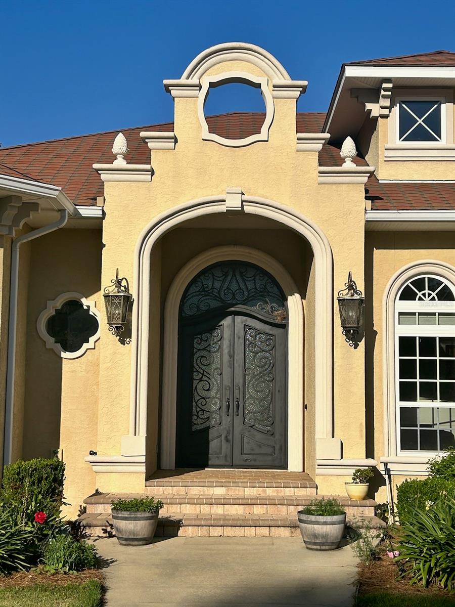 This is a pristine Mediterranean classic. It is a custom solid concrete wall home and designed with every amenity. The unique floor plan creates graceful open spaces that combine with its expansive windows for an elegant look. There are five bedrooms and five baths. The ceilings are 12' and 14' respectively. The primary suite features a sitting area with picture windows and two walk-in closets. The primary bath makes for a luxurious retreat. There is an award-winning, designed screen pool and spa. It features a large screen enclosure. Also featured is a cedar-lined sauna. The home is located in a gated community and occupies an one plus acre site. The community has walking trails and waterfront docks for fishing. The home is owner occupied.