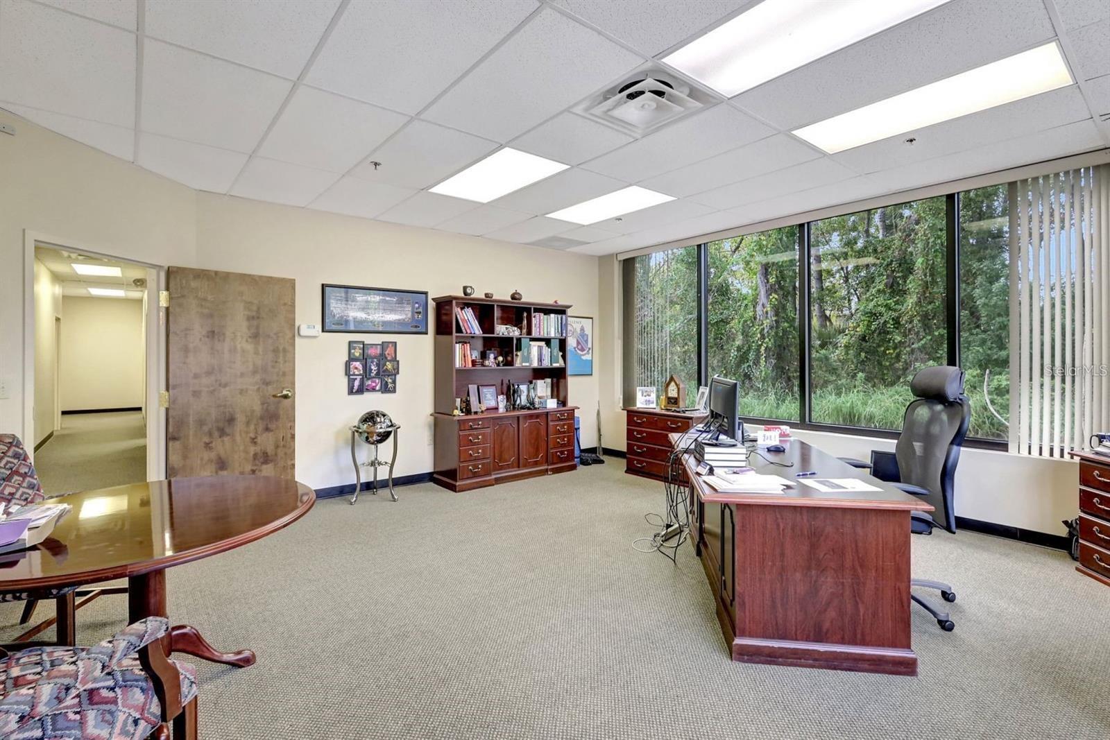 Airport area professional office/flex space free-standing 2 tenant building. Efficient floor plan with spacious private offices that overlook construction area. Competitive rental rate, abundant surface parking - available 1st quarter 2025. $15.00 per SF base rent plus CAM ($6.50 - 2024) and utilities estimated to be $1.63 per SF. Also available for sale - $2,900,000. - subject to existing leasehold (roughly 50% of building). Shown by appointment.