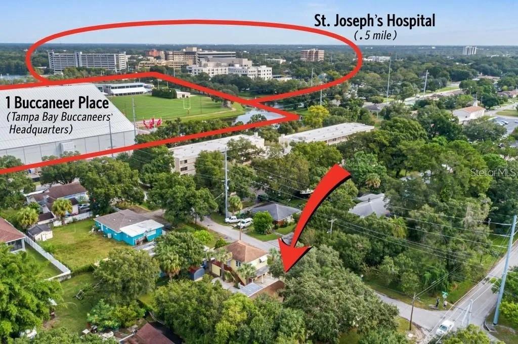 This triplex property is 2477 total square feet. This property includes 2 separate building structures with 3 total rental units (TRIPLEX): 1 single-family home and 2 apartments. Live in the charming 1939 bungalow and have family or tenants in the 2 rentals OR rent all 3 units. RENTAL $$$ INCOME should bring in $4900 a month, but is currently at 2800 for the duplex. The front unit has been left unrented for showings but should bring in an added $2100. when rented. This is a beautiful home and large corner lot with nice mature shade trees. It has vintage appeal with newer amenities. 2020: roof replaced, 2021 new A/C on the main house, Kitchen and bath and appliances are all new. The duplex consisting of 2 bedrooms 1 bath were remodeled with new kitchen and bathrooms in 2021. The lot is large and can be divided into 2 nonconforming properties (grandfathered in) allow new buyer to sell off one or both properties in the future. This is a very large property of almost 3 lots (. 31 of an acre) that can accommodate parking for 22 cars during Stadium events. There are separate utilities for each unit. EVENT PARKING: The City of Tampa Code (Sec. 27-283.13) allows event parking on residential lots during stadium events. The property can hold up to 22 cars.