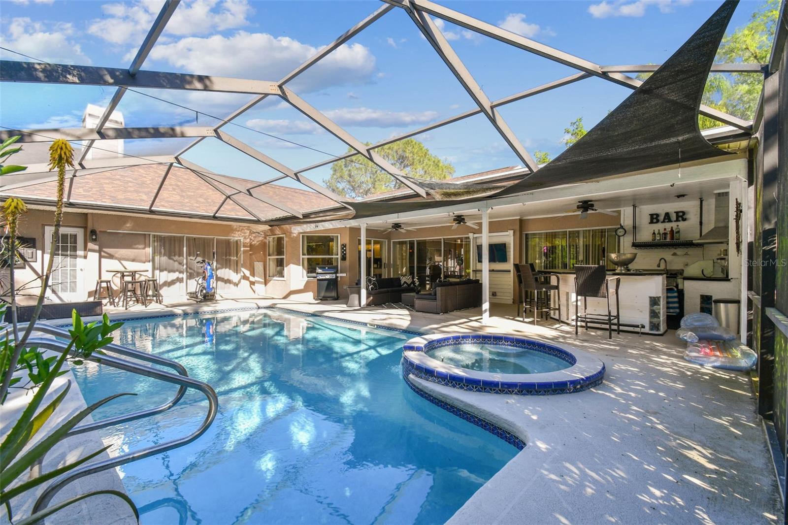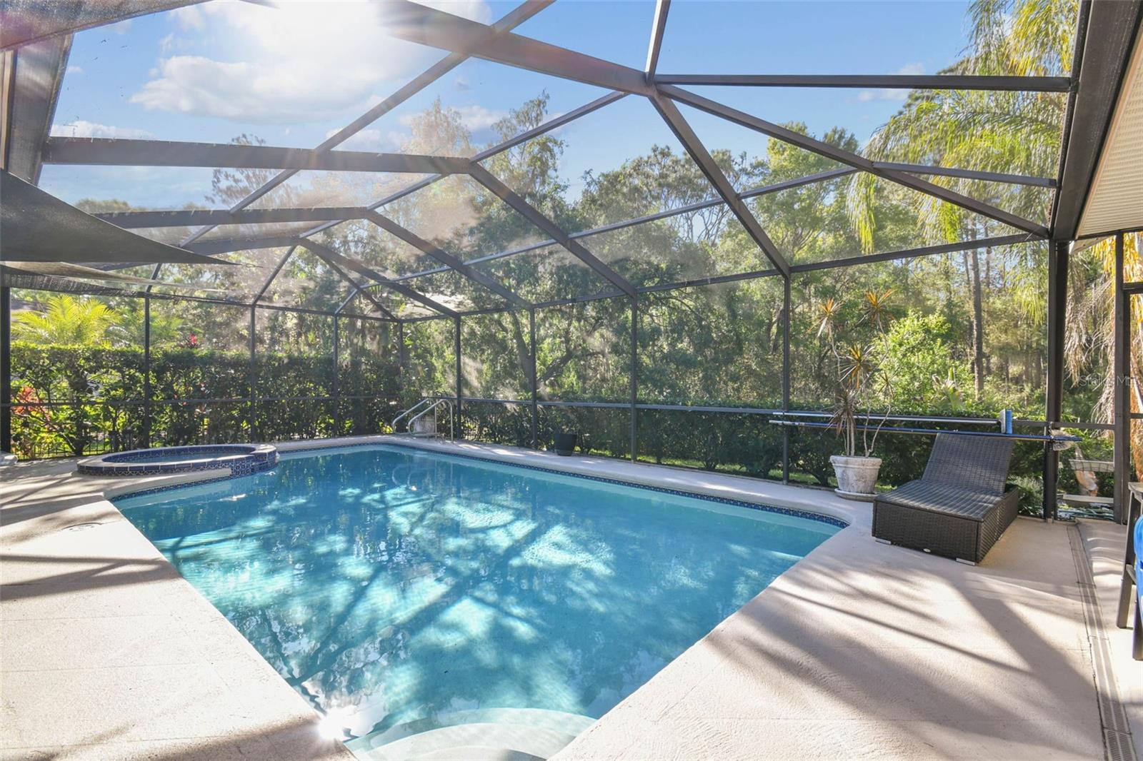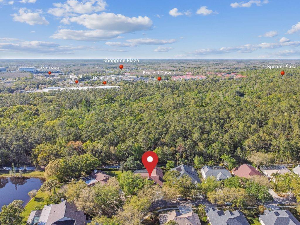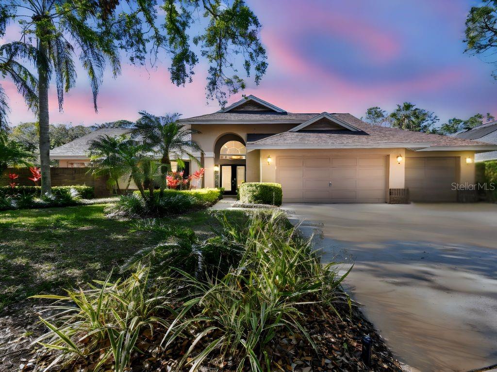This stunning 5-bedroom, 3-bathroom home with an office is a masterpiece by Arthur Rutenberg Homes, situated on a serene conservation lot with no rear neighbors in the highly desirable, gated community of Hunter’s Green. From the moment you step through the grand double entry doors, you are greeted with breathtaking views of the pool, spa, and outdoor entertainment area, creating the perfect balance of luxury and tranquility. Designed for both relaxation and entertaining, the outdoor space features a full outdoor kitchen, modern LED lighting, a heated pool and spa (resurfaced in 2023), and a covered lanai, offering an ideal setting for year-round enjoyment. Inside, the home boasts granite countertops, stainless steel appliances, a wood-burning fireplace (convertible to gas), and a custom-built saltwater aquarium, adding elegance and charm to the living space. The open-concept design seamlessly connects the primary suite, formal living room, kitchen, and family room to the outdoor living area, allowing for effortless indoor-outdoor flow. Flooring throughout the home includes a mix of hardwood, tile, and carpet, with one bedroom currently used as an indoor gym featuring padded flooring. The third garage stall is currently utilized as an office space but can easily be converted back into a functional garage. The home has been meticulously maintained and updated with a new roof (2022), aluminum fence (2022), pool pump (2023), pool heater (2023), and HVAC system (2023), ensuring modern comfort and peace of mind. Beyond the property, Hunter’s Green offers an array of amenities, including paved trails, playgrounds, tennis courts, pickleball courts, basketball courts, baseball and soccer fields, a community center, and a dedicated dog park. Residents also have the option to join the Hunter’s Green Country Club, featuring a Tom Fazio-designed golf course and an athletic center. Conveniently located with easy access to I-75, this home is just minutes from premier shopping destinations such as Wiregrass Mall, Tampa Premium Outlets, and The Grove, as well as a variety of restaurants, breweries, hospitals, and entertainment options. With no CDD fees and a prime location in one of New Tampa’s most sought-after communities, this exceptional home is a rare find. Schedule your private tour today and experience the perfect blend of luxury, comfort, and convenience!