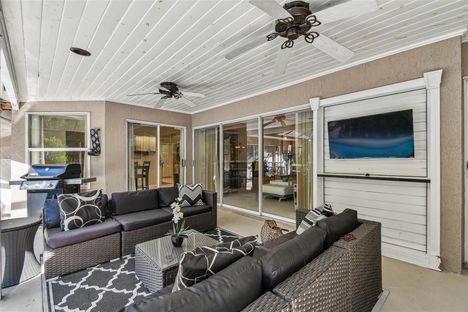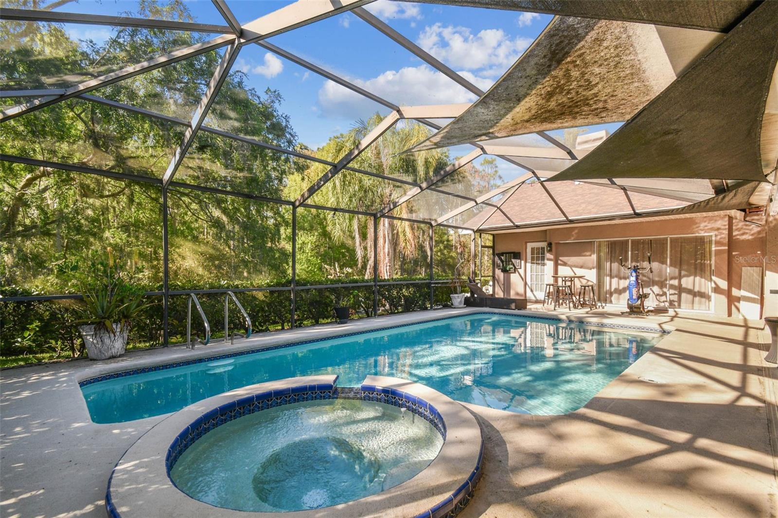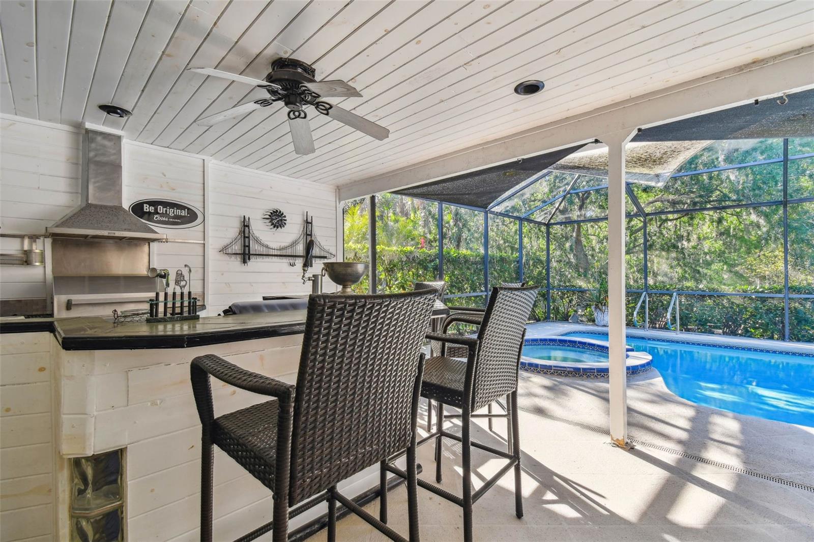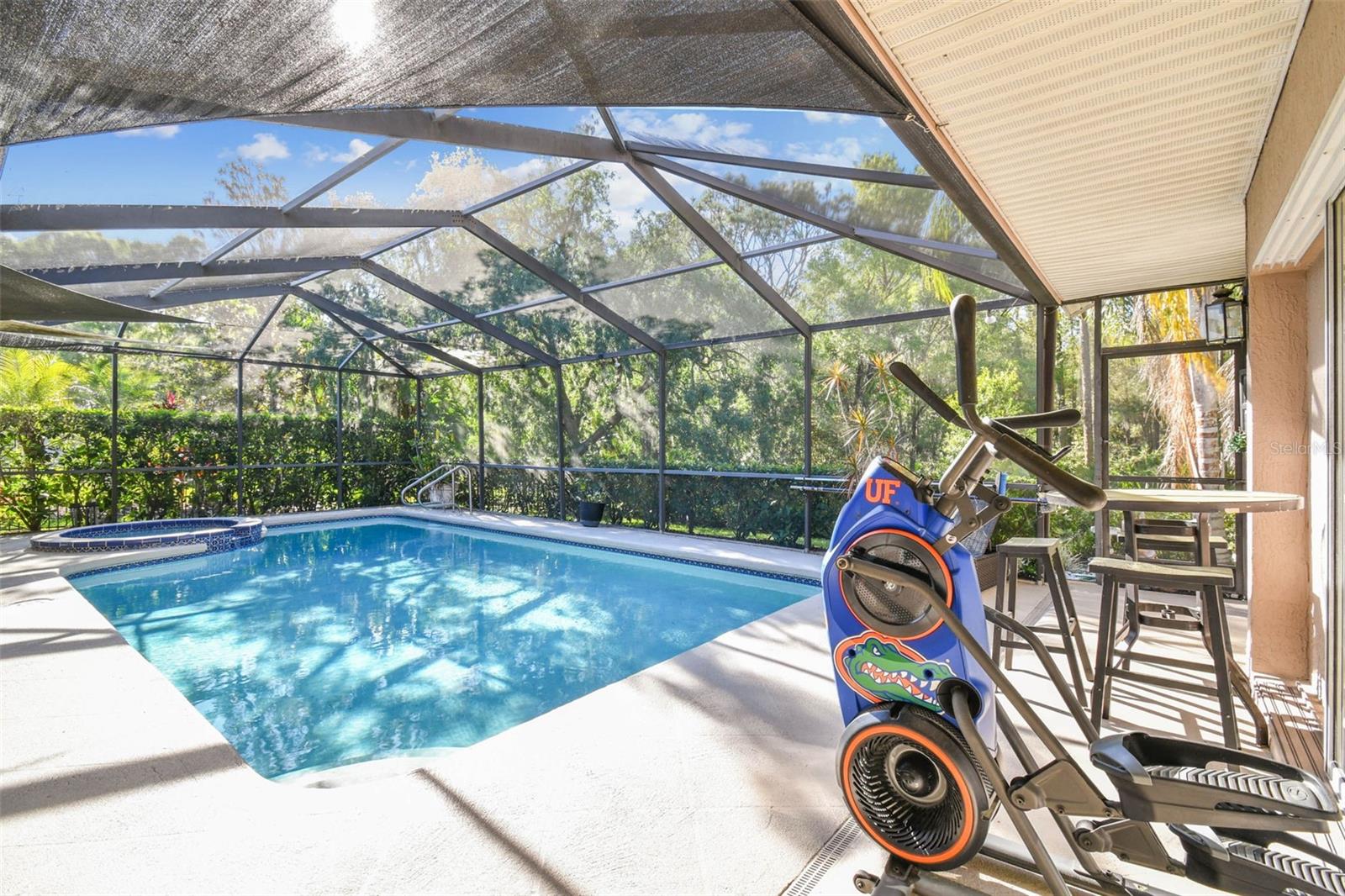 This stunning 5-bedroom, 3-bathroom home with an office is a masterpiece by Arthur Rutenberg Homes, situated on a serene conservation lot with no rear neighbors in the highly desirable, gated community of Hunter’s Green. From the moment you step through the grand double entry doors, you are greeted with breathtaking views of the pool, spa, and outdoor entertainment area, creating the perfect balance of luxury and tranquility. Designed for both relaxation and entertaining, the outdoor space features a full outdoor kitchen, modern LED lighting, a heated pool and spa (resurfaced in 2023), and a covered lanai, offering an ideal setting for year-round enjoyment. Inside, the home boasts granite countertops, stainless steel appliances, a wood-burning fireplace (convertible to gas), and a custom-built saltwater aquarium, adding elegance and charm to the living space. The open-concept design seamlessly connects the primary suite, formal living room, kitchen, and family room to the outdoor living area, allowing for effortless indoor-outdoor flow. Flooring throughout the home includes a mix of hardwood, tile, and carpet, with one bedroom currently used as an indoor gym featuring padded flooring. The third garage stall is currently utilized as an office space but can easily be converted back into a functional garage. The home has been meticulously maintained and updated with a new roof (2022), aluminum fence (2022), pool pump (2023), pool heater (2023), and HVAC system (2023), ensuring modern comfort and peace of mind. Beyond the property, Hunter’s Green offers an array of amenities, including paved trails, playgrounds, tennis courts, pickleball courts, basketball courts, baseball and soccer fields, a community center, and a dedicated dog park. Residents also have the option to join the Hunter’s Green Country Club, featuring a Tom Fazio-designed golf course and an athletic center. Conveniently located with easy access to I-75, this home is just minutes from premier shopping destinations such as Wiregrass Mall, Tampa Premium Outlets, and The Grove, as well as a variety of restaurants, breweries, hospitals, and entertainment options. With no CDD fees and a prime location in one of New Tampa’s most sought-after communities, this exceptional home is a rare find. Schedule your private tour today and experience the perfect blend of luxury, comfort, and convenience!
