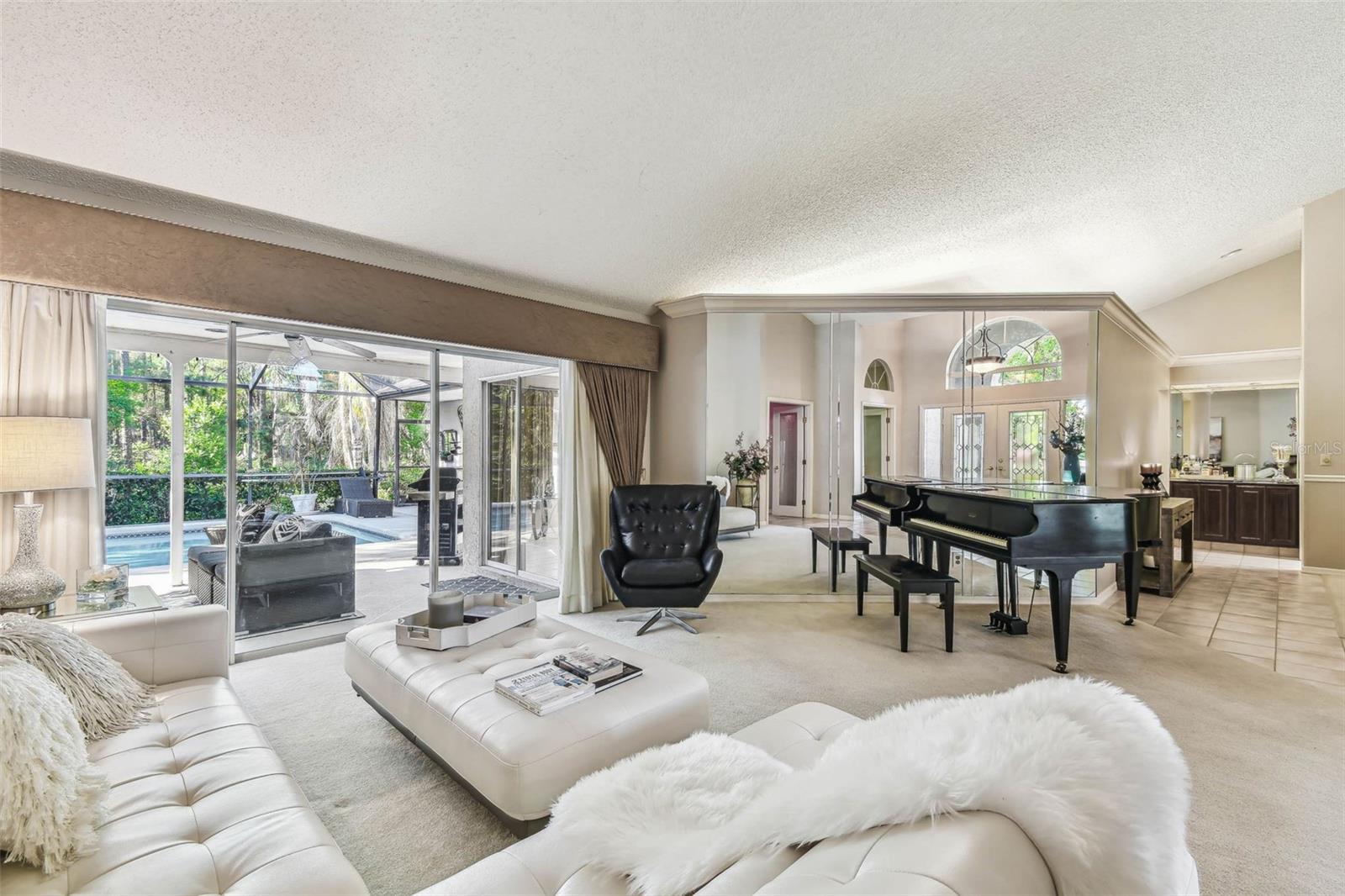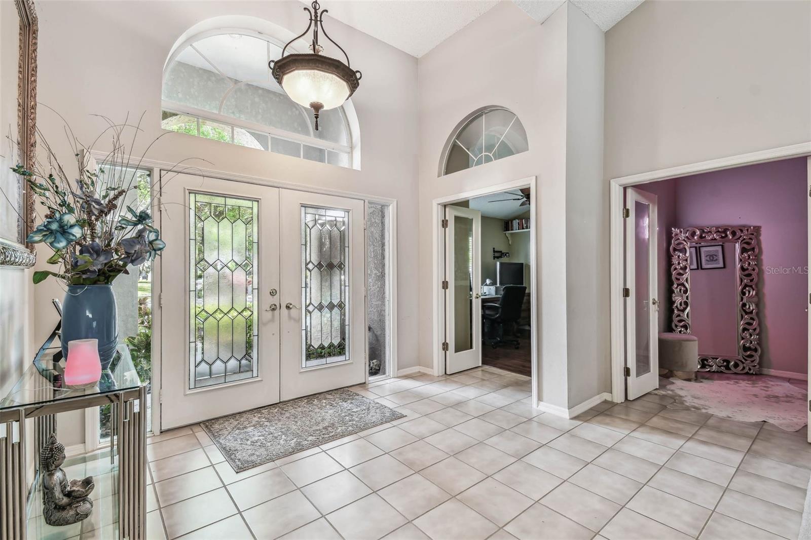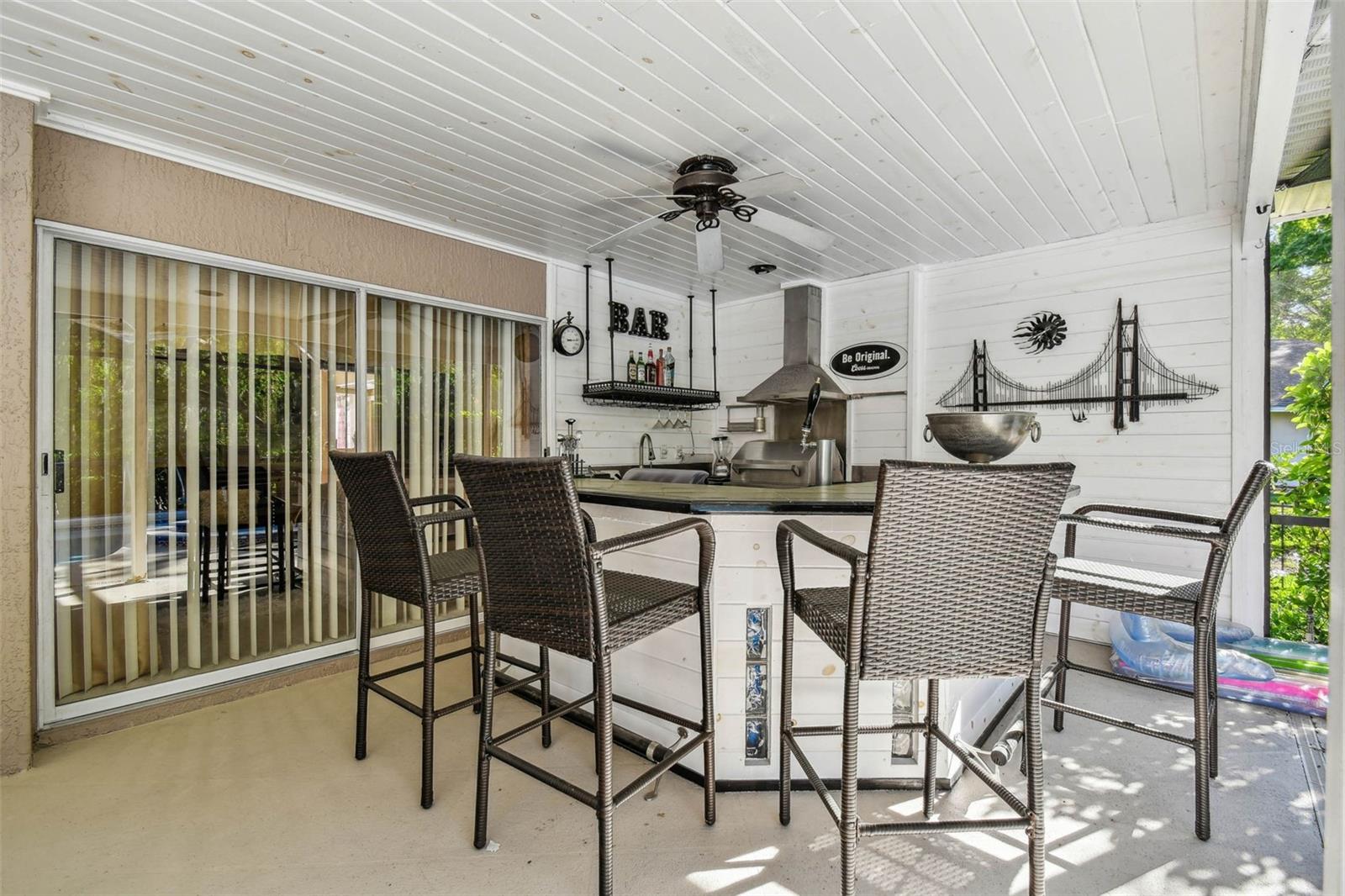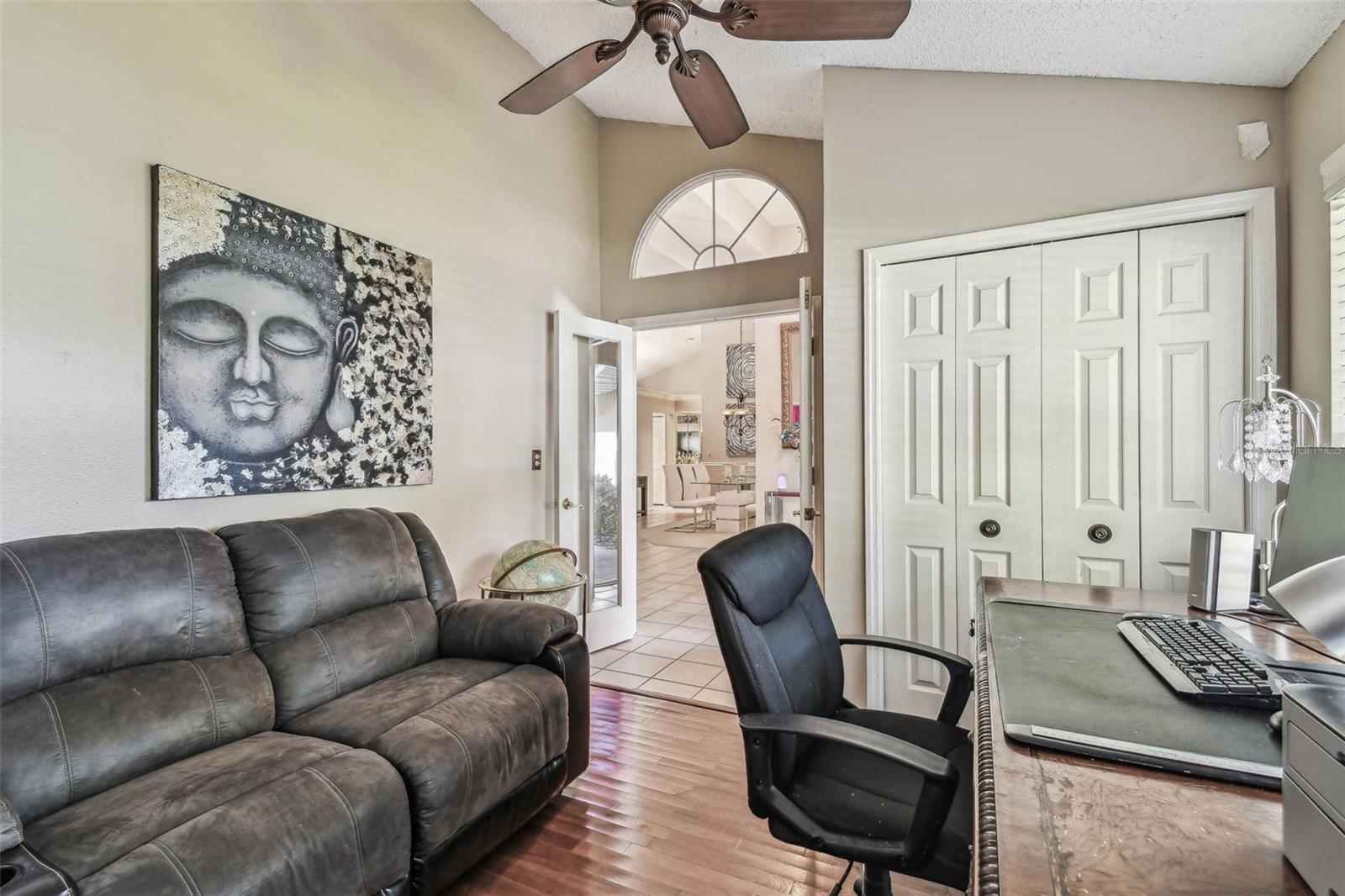 This stunning 5-bedroom, 3-bathroom home with an office is a masterpiece by Arthur Rutenberg Homes, situated on a serene conservation lot with no rear neighbors in the highly desirable, gated community of Hunter’s Green. From the moment you step through the grand double entry doors, you are greeted with breathtaking views of the pool, spa, and outdoor entertainment area, creating the perfect balance of luxury and tranquility. Designed for both relaxation and entertaining, the outdoor space features a full outdoor kitchen, modern LED lighting, a heated pool and spa (resurfaced in 2023), and a covered lanai, offering an ideal setting for year-round enjoyment. Inside, the home boasts granite countertops, stainless steel appliances, a wood-burning fireplace (convertible to gas), and a custom-built saltwater aquarium, adding elegance and charm to the living space. The open-concept design seamlessly connects the primary suite, formal living room, kitchen, and family room to the outdoor living area, allowing for effortless indoor-outdoor flow. Flooring throughout the home includes a mix of hardwood, tile, and carpet, with one bedroom currently used as an indoor gym featuring padded flooring. The third garage stall is currently utilized as an office space but can easily be converted back into a functional garage. The home has been meticulously maintained and updated with a new roof (2022), aluminum fence (2022), pool pump (2023), pool heater (2023), and HVAC system (2023), ensuring modern comfort and peace of mind. Beyond the property, Hunter’s Green offers an array of amenities, including paved trails, playgrounds, tennis courts, pickleball courts, basketball courts, baseball and soccer fields, a community center, and a dedicated dog park. Residents also have the option to join the Hunter’s Green Country Club, featuring a Tom Fazio-designed golf course and an athletic center. Conveniently located with easy access to I-75, this home is just minutes from premier shopping destinations such as Wiregrass Mall, Tampa Premium Outlets, and The Grove, as well as a variety of restaurants, breweries, hospitals, and entertainment options. With no CDD fees and a prime location in one of New Tampa’s most sought-after communities, this exceptional home is a rare find. Schedule your private tour today and experience the perfect blend of luxury, comfort, and convenience!