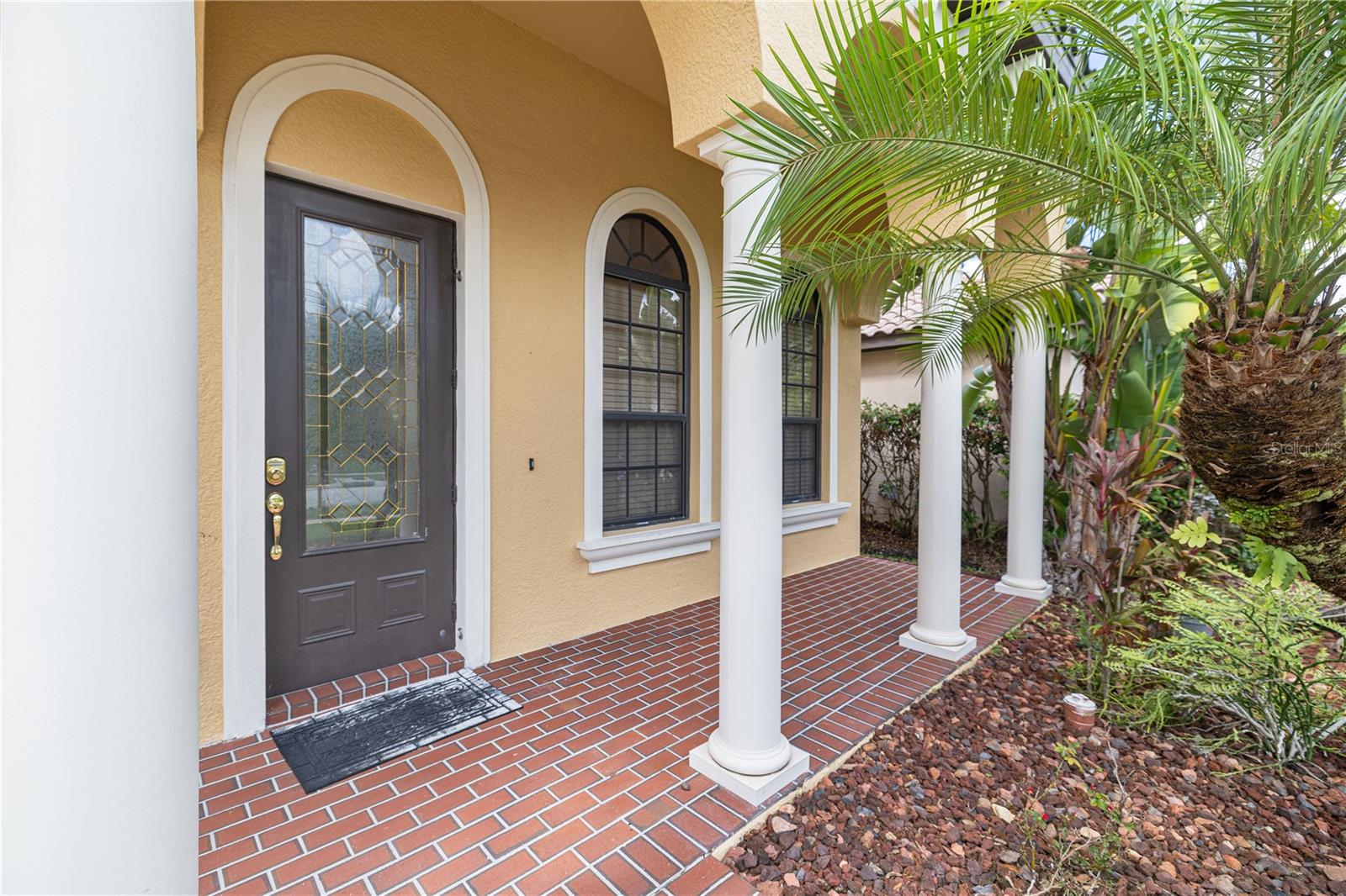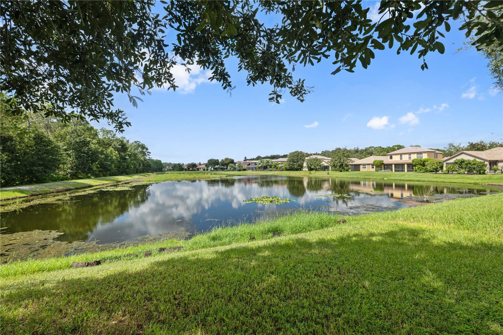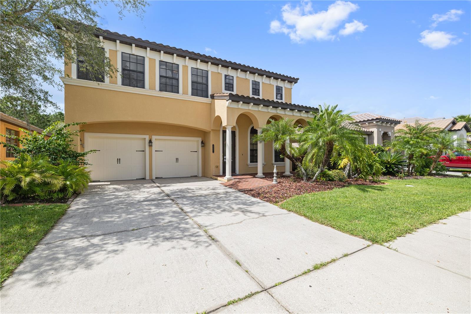 This stunning residence is nestled on a private conservation lot with serene water and forest views, located in the guard-gated community of Grand Hampton in New Tampa. The home features 4 bedrooms, 3 bathrooms, 2,314 square feet, a 2-car garage, a private brick-paver patio, an extended lanai, and a fenced-in yard overlooking the conservation area. Designed for the most discerning buyers, this highly desirable Mediterranean-style home welcomes you with a grand two-story foyer and a second-floor terrace. The bright and airy formal living room, adorned with new vinyl-wood floors, flows seamlessly into the formal dining room and throughout the main living spaces. The gourmet kitchen is a chef’s dream, equipped with 42” wood cabinets, a gas cooktop, a built-in oven, a spacious island, expansive countertops, and access to a private brick-paver patio. The family room, featuring large glass sliders on two sides, allows natural light to flood the space and offers panoramic views of the beautiful Florida nature preserve with its peaceful pond. The first-floor master suite, complete with a spa-like bathroom, is perfectly positioned to provide a sense of paradise with stunning views every morning. Grand Hampton offers resort-style living with 24-hour guard-gated security and amenities that include a resort-style pool, splash pool, lap pool, clubhouse, fitness center, tennis courts, basketball and volleyball courts, nature trails, playgrounds, and more. Ideally located near top-rated schools, hospitals, I-75/275, Tampa Premium Outlets, Wiregrass, Center Ice, and other local attractions, this home combines luxury, comfort, and convenience.