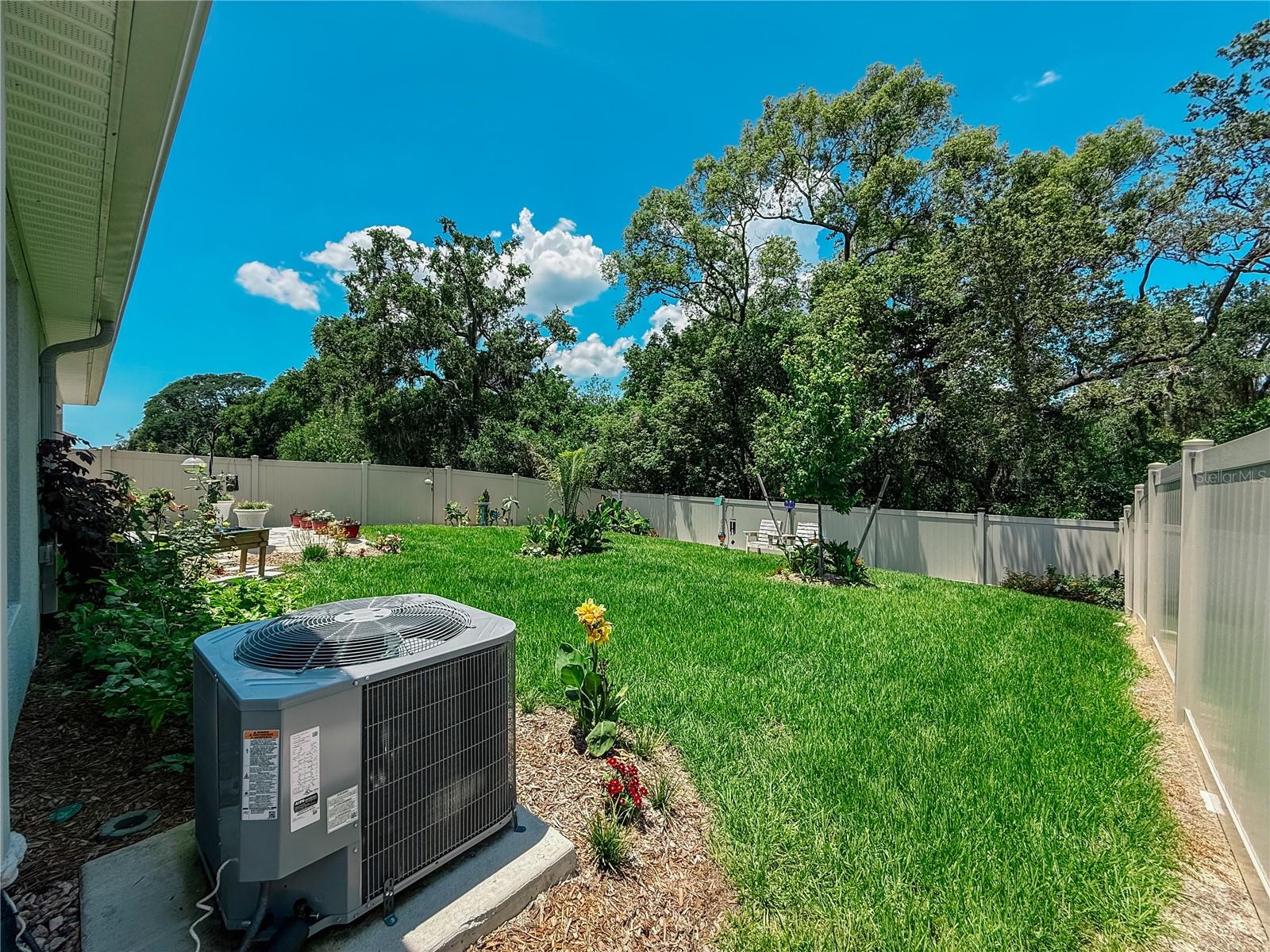 This modern 4 bedroom, 2 bathroom home, built in 2024, seamlessly blends contemporary convenience with timeless elegance. Energy efficient Dr Horton home with solar panels. Wonderful curb appeal with pavers accenting the driveway, near zero entryway and completed has a front door with hurricane resistant window. Upon entering, you are welcomed by an inviting foyer that opens into the heart of the home. The open-concept design effortlessly connects the living room, dining area, and kitchen, creating an ideal space for entertaining. The spacious living room is bathed in natural light, courtesy of large windows and equipped with remote black out blinds when you want to limit the natural light. The kitchen stands out as a true centerpiece, equipped with stunning granite countertops, stainless-steel appliances, upgraded refrigerator, dual deep sink with touchless faucet,decorative backsplash, walk-in pantry, and an oversized island complete with a breakfast bar. Whether preparing a casual meal or hosting a formal dinner, this kitchen is designed to accommodate all culinary needs. The primary suite, located at the rear of the home, serves as a tranquil retreat, featuring a private ensuite bathroom with dual sinks, a separate shower, 48" medicine cabinet, and a walk-in closet. The remaining three ample sized bedrooms gives you the space to spread out. A dedicated laundry space conveniently located near all bedrooms alleviates the burden of chore. Step outside onto the covered patio to enjoy the views of the wooded conservation and landscaped vinyl fenced backyard. There is an additional 10x12 open paver patio to sit in the sun if you prefer. Solar power landscaping lights to enjoy beautiful Florida nights. The two garage has been enhanced with Gooseneck lighting and versatile epoxy flooring, providing both a designer aesthetic and durability. Additional upgrades include whole house state of the art water softening system, plantation shutters in two rooms, programable lighting system, landscaping lighting, and additional attic insulation. Upgraded irrigation system on its own meter. River Park is conveniently located near major highways, I75, 275 and I4, shopping, dining, entertainment, theme parks, Florida College minutes to downtown Tampa and Gulf Coast beaches. Seize the opportunity to make this stunning home yours!