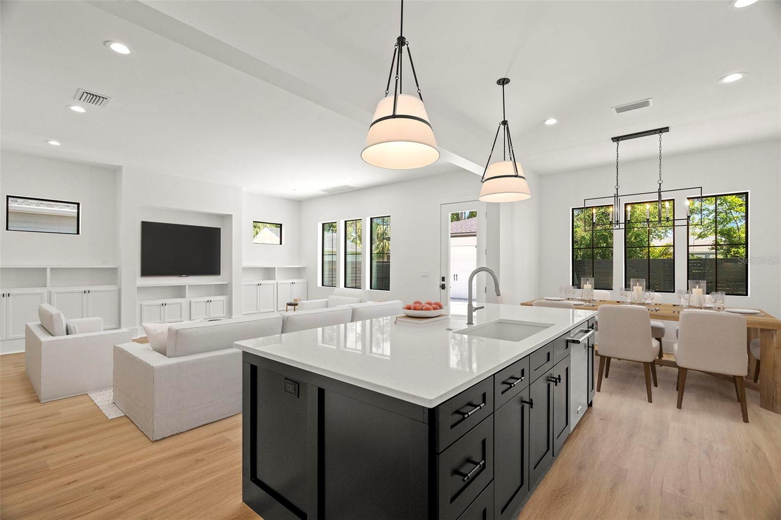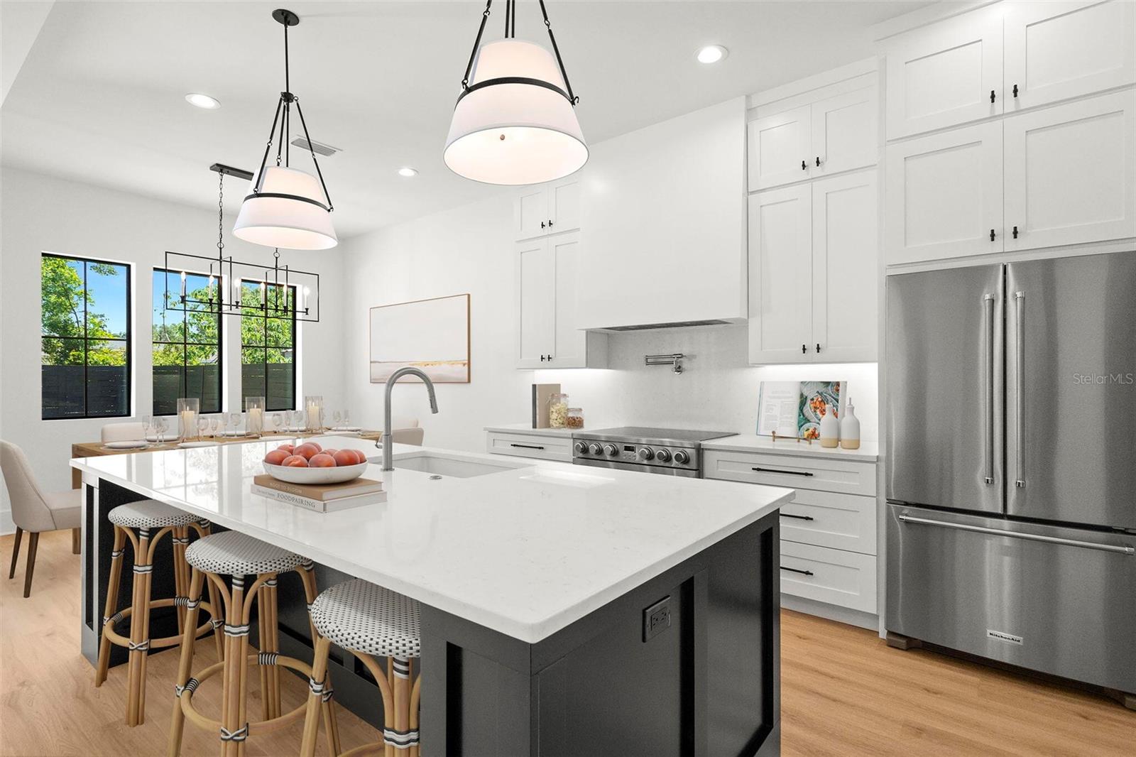 Welcome to your dream home in sought-after Old Seminole Heights! This custom-built, recently completed modern farmhouse home is an architectural gem, and is the most recent example of the craftsmanship and design that Cottage Company has built its reputation on over the years. Located on a tree lined, historic street minutes from Downtown Tampa, Riverwalk and Armature Works, this stunning property offers the convenience of urban living with the tranquility of a luxurious home. This spacious, 5 bedroom (3 upstairs, 2 downstairs) and 3 full bathroom home welcomes you with a large front porch with a wood plank ceiling and an inviting and spacious foyer that leads to the open and expansive living, kitchen and dining area. The kitchen is a chef's dream, with a Thor range and KitchenAid refrigerator and dishwasher, a pot filler, Calcutta quartz countertops and backsplash, and an oversized kitchen island. Ample custom cabinetry and a show-stopping walk-in butler's pantry/bar complete the gourmet space. Other beautiful features include an open floor plan, wide plank, oak LVP floors, 10' ceilings, custom built-in cabinetry, designer light fixtures, custom accent walls, modern millwork, and an abundance of extra storage closets. The 2nd-floor primary suite is a true sanctuary with a sitting area, generous custom closets and a luxurious en-suite bathroom featuring marble tile floors, a double vanity, and a large marble tile walk-in shower. Stepping outside, this home is set on a generous lot with a wood fenced backyard. The detached, 2-car garage has an epoxy-coated floor. This home also includes an irrigation system, energy efficient spray foam insulation in attic, hurricane impact windows, and ample parking space with an extra-long concrete driveway. Combining timeless design with modern convenience, this exquisite home offers an unparalleled living experience! Stepping outside, this home is set on a generous lot with a wood fenced backyard. The detached, 2-car garage has an epoxy-coated floor. This home also includes an irrigation system, energy efficient spray foam insulation in attic, hurricane impact windows, and ample parking space with an extra-long concrete driveway. Combining timeless design with modern convenience, this exquisite home has an unparalleled living experience!