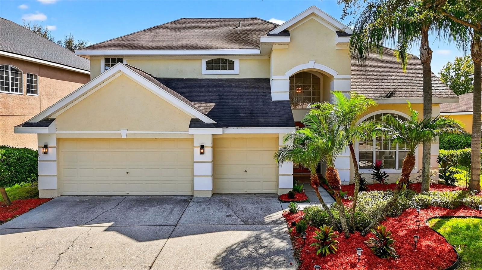 Welcome to this beautifully updated 5-bedroom, 3.5 bathroom Pool home located in the sought-after 24/7 guard-gated community of Arbor Greene in Tampa. Nestled on a spacious .30-acre fenced lot surrounded by manicured landscaping and palm trees, this home offers both elegance and comfort in one of Tampa’s most desirable neighborhoods. Step inside to find beautiful ceramic tile flooring, modern light fixtures, and an open layout designed for everyday living and entertaining. The updated kitchen features stainless steel appliances and plenty of counter space. The primary suite is conveniently located on the main floor with pool views, two walk-in closets, and a luxurious ensuite bathroom featuring dual sinks and a large walk-in shower with dual shower-heads. The additional bedrooms are bright and airy with large windows, ceiling fans, and generous closet space. Outside, a screened-in pool and spa overlook the private fenced backyard that's perfect for relaxing or hosting gatherings while enjoying Florida sunsets. Residents of Arbor Greene enjoy access to exceptional resort-style amenities, including a Junior Olympic lap pool, a family-friendly resort pool, eight Har-Tru clay tennis courts, two pickleball courts, basketball courts, a state-of-the-art fitness center, multiple playgrounds, scenic walking trails, and a beautiful clubhouse with meeting and event spaces. Ideally situated near top-rated schools, shopping, dining, and major medical centers.
