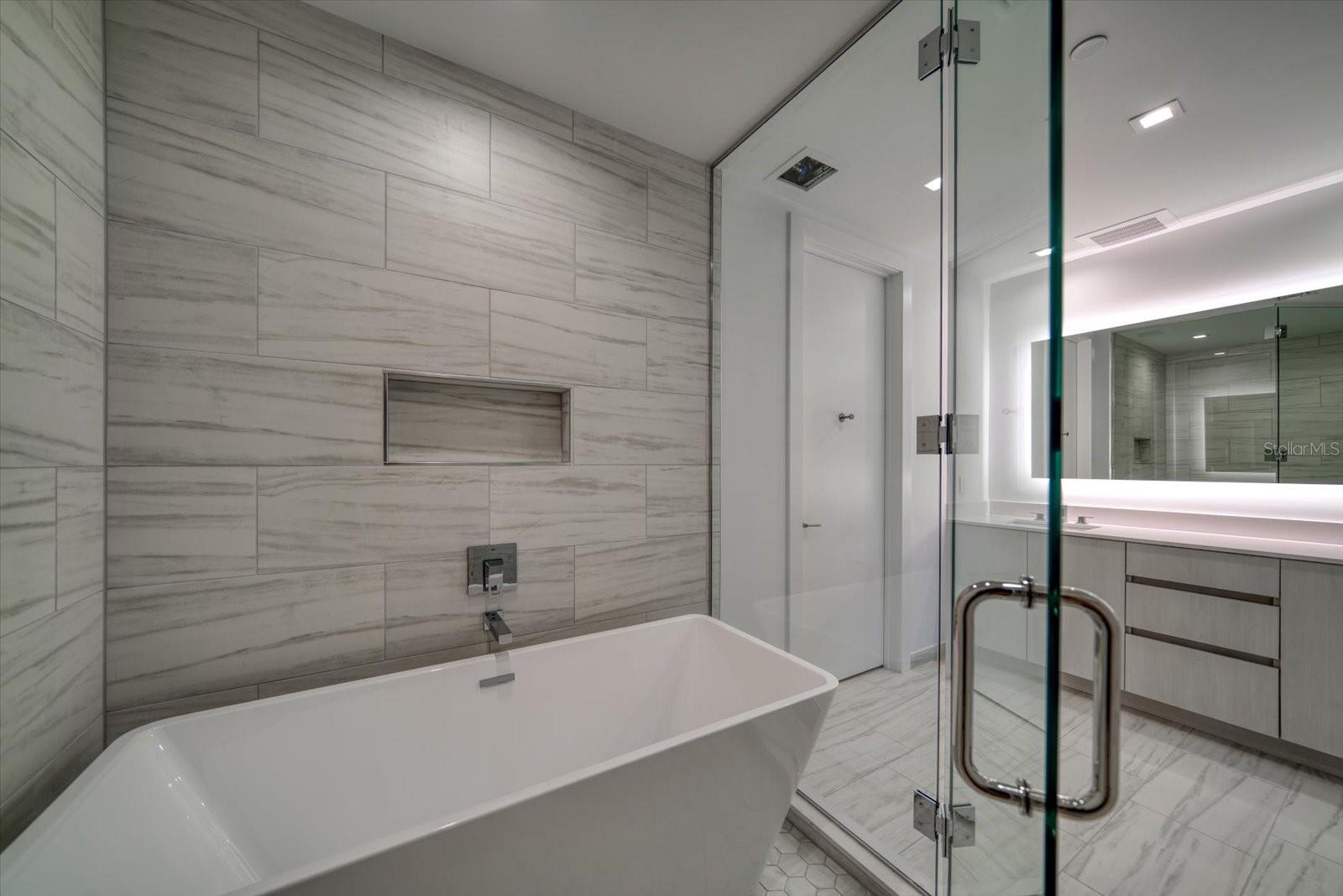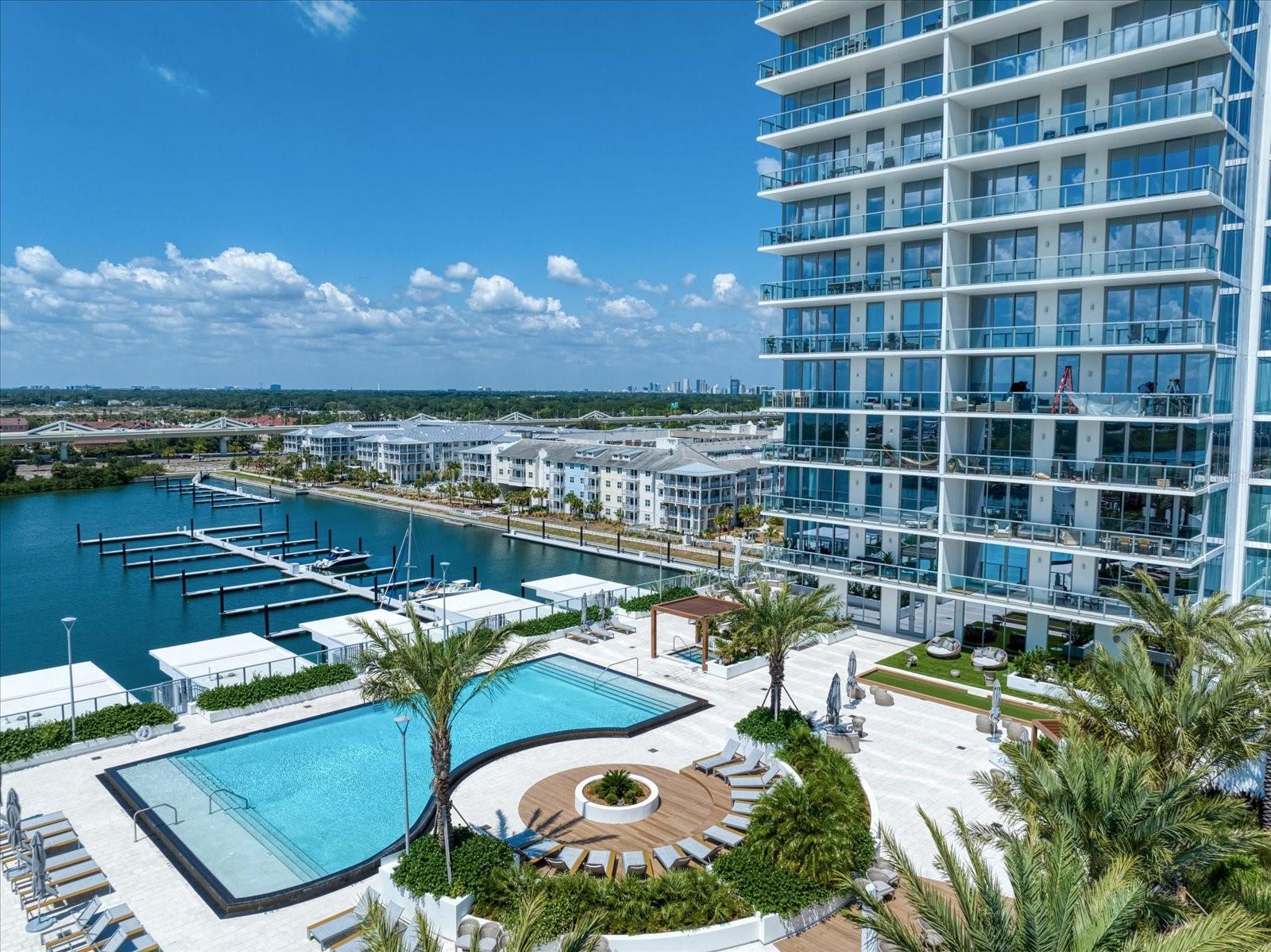 Welcome to this exquisite condo, where luxury and sophistication meet in perfect harmony. With an array of premium features and elegant finishes, this residence provides a sanctuary of comfort and style. Boasting 10' ceiling heights in the great room and bedrooms, a private entry foyer, and a host of upscale amenities, this home offers an unparalleled living experience. Upon entering, you are greeted by the seamless beauty of porcelain tile flooring, adding a touch of elegance to the foyer, great room, dining area, kitchen, powder rooms, and bathrooms. Step onto the terrace, adorned with sleek porcelain tile, and immerse yourself in the panoramic views. Indulge in the finer details, including solid core doors with stylish lever handles, smooth-finished ceilings and walls, and prewiring for your communication and entertainment needs. The window and sliding glass systems are not only aesthetically pleasing but also hurricane impact rated for your peace of mind. Prepare gourmet meals in the sophisticated kitchen equipped with European-style cabinetry, 3 cm quartz countertops, and a full quartz backsplash. The top-of-the-line SubZero/Wolf professional-style appliance package, including a wall-mounted stainless-steel hood and a range of premium appliances, ensures an exceptional culinary experience. Retreat to the owner's bath, a haven of relaxation, featuring polished chrome fixtures, a free-standing relaxation tub, and a luxurious rainfall shower. The guest bathrooms also exude elegance, with European-style cabinetry, Grohe polished chrome fixtures, and exquisite porcelain flooring. Experience the epitome of luxury living in this sophisticated condo, where every detail is meticulously crafted for your utmost comfort and pleasure. Schedule a viewing today and embrace a lifestyle of unparalleled opulence and refinement. 40' Boat Slip is sold separately.