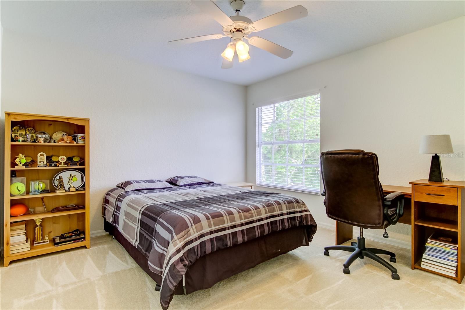 Welcome home to your 5bed/3bath/3 car garage pool home on a conservation lot with serene wooded views, located on a tranquil cul-de-sac in the highly desirable Charleston Corner neighborhood. Original owners have meticulously maintained this property. Open and bright layout with new large plank tile wood floors the main living areas on the first floor, fresh interior paint and high ceilings throughout the home. Large formal living and dining room with tray ceiling as your enter the home. Kitchen has been upgraded with wood cabinets, stainless steel appliances, granite stone counters, tile backsplash, and tile floors. Opens up to a kitchen nook perfect to enjoy breakfast with your family. Large living room space with triple sliders to enjoy the large pool and private serene wooded view. Full first floor bathroom has been updated. Retreat upstairs to the private bedroom quarter offering brand new carpet. The oversized primary bedroom is a true retreat, featuring his and hers walk-in closets for added convenience, and a versatile bonus room with a closet offers flexibility to use as an office, nursery, large walk in closet, or easily convert into a fifth bedroom to suit your needs. Ensuite primary bathroom with dual vanity, garden tub, and shower. 3 additional well sized guest rooms and guest bathroom on the second floor. Outside, the expansive 36ft x 15ft oversized pool beckons for endless hours of relaxation and enjoyment, with depths ranging from 4ft to 8ft, offering something for everyone. Backyard also has fully fenced area to enjoy playtime and/or great space for pets. This home has new blinds throughout the home. AC & Roof done approximately 2015/2016. In the Charleston Corners community residents enjoy access to a wealth of amenities including a sparkling community pool, clubhouse, tennis courts, playgrounds, and picturesque ponds with inviting benches to unwind with no CDD fees and low HOA dues! Charleston Corners is situated near the highly sought-after Westchase area, offers convenience at its finest. Centrally positioned between downtown Tampa, Tampa International Airport, and the Gulf Beaches, you'll relish in effortless access to all the area has to offer. This home boasts proximity to top-rated public schools including Alonso HS offering IB Program and the esteemed Academy of Math & Science charter school, ensuring an excellent educational experience for your family. Outdoor enthusiasts will delight in the nearby Countryway & Westchase golf courses, dog park, and the scenic Upper Tampa Bay Trail. For shopping and dining, the Citrus Park mall and an array of restaurants await just moments away. Commuting is a breeze with easy access to the Veterans Expressway.