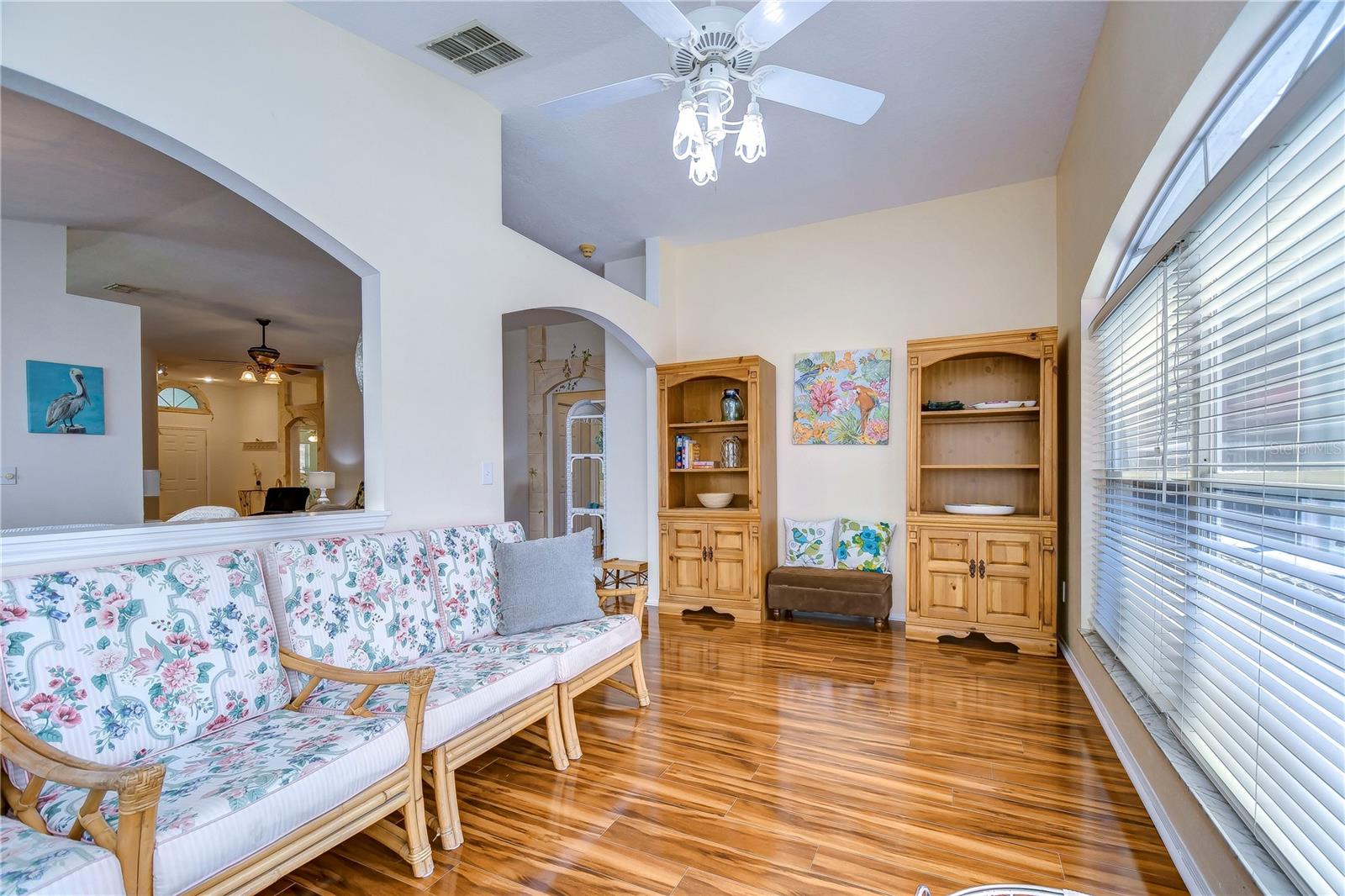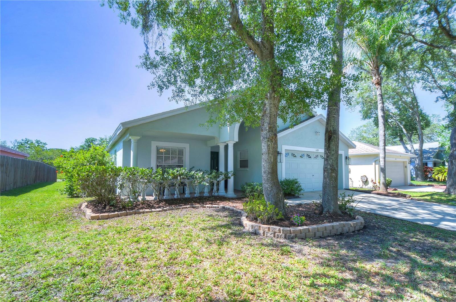 Extraordinarily Gorgeous Pool home on CONSERVATION LOT, with VIEW of POND, and NO BACKYARD NEIGHBORS! This tranquil 4 Bedroom 2 Bath home boast style and grace from its entry to its amazing conservation lot with a view of a serene pond. This home is tucked away in a small neighborhood with tree lined streets. ROOF NEW In 2021 The home has a Tiled Entry and a peaceful Front Porch where you can sit and watch the BIRDS. As you enter the home you will notice professional PAINTED Mural and accents which adorns the walls in the entry and is complimented by Egyptian stone flooring. The view of the GREAT ROOM is sure to WOW you, with the unusual, curved wall architecture and stunning flooring. The home is a split plan with 2 bedrooms and a bath in the front of the house and 2 Bedrooms in the back. Just off the great room as you enter the home are 2 large spacious rooms with ample closet space. And one of these bedrooms has a HUGE Walk-In Closet!!! The bathroom is beautiful, with a tiled floor and a Bath/ Shower combo. There is a linen closet in the hallway between the two bedrooms. The great room has views straight out to the POOL. The dining area is off to your right and has UPGRADED LIGHTING. There is a large Galley kitchen with a breakfast area, and laundry room off to your right. The Laundry room has huge UPGRADED CABINETS above the washer and dryer. There is WOOD flooring throughout the kitchen, eating area, and the laundry room. The Florida/Sunroom can be used as an office, sitting room or really anything your heart desires. The large 3rd bedroom is just off the back hallway, it has a smaller walk-in closet and a fan. There is a storage closet in the hallway that can be useful for many different items. This home really has tons of storage throughout. The Primary Bedroom is GORGEOUS with views of the pool and backyard from every window. The Primary Bathroom is simply captivating with its beautiful large garden tub, separate shower, linen closet located opposite the shower. There is a HUMONGOUS -REALLY HUGE Primary WALK-IN CLOSET located behind the mirrored closet doors. This closet has UPGRADED CUSTOM WOOD SHELVES AND HANGING RACKS. It is a DREAM CLOSET. The Large Pool has a HEATED SPA PERFECT for ENTERTAINING or JUST RELAXING. Home is centrally located with easy access to the Veterans, making travel downtown and to the beaches a breeze. Make an appointment and Come see YOUR new address!
