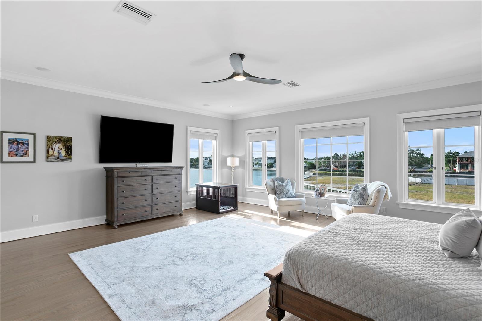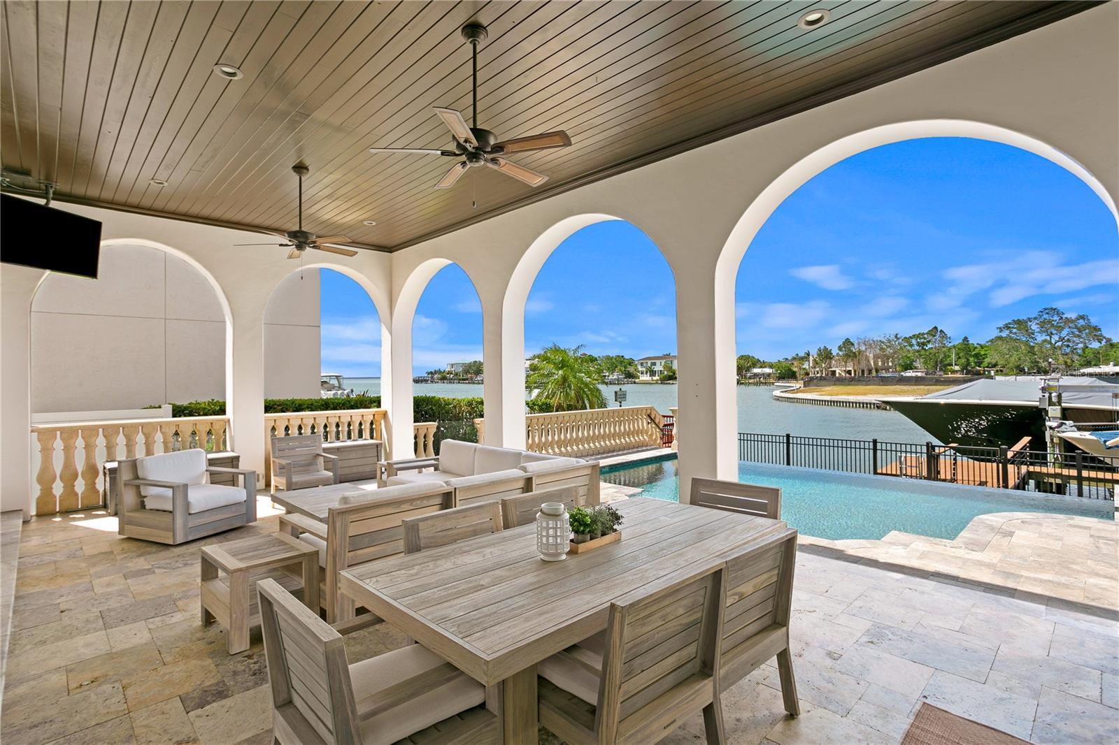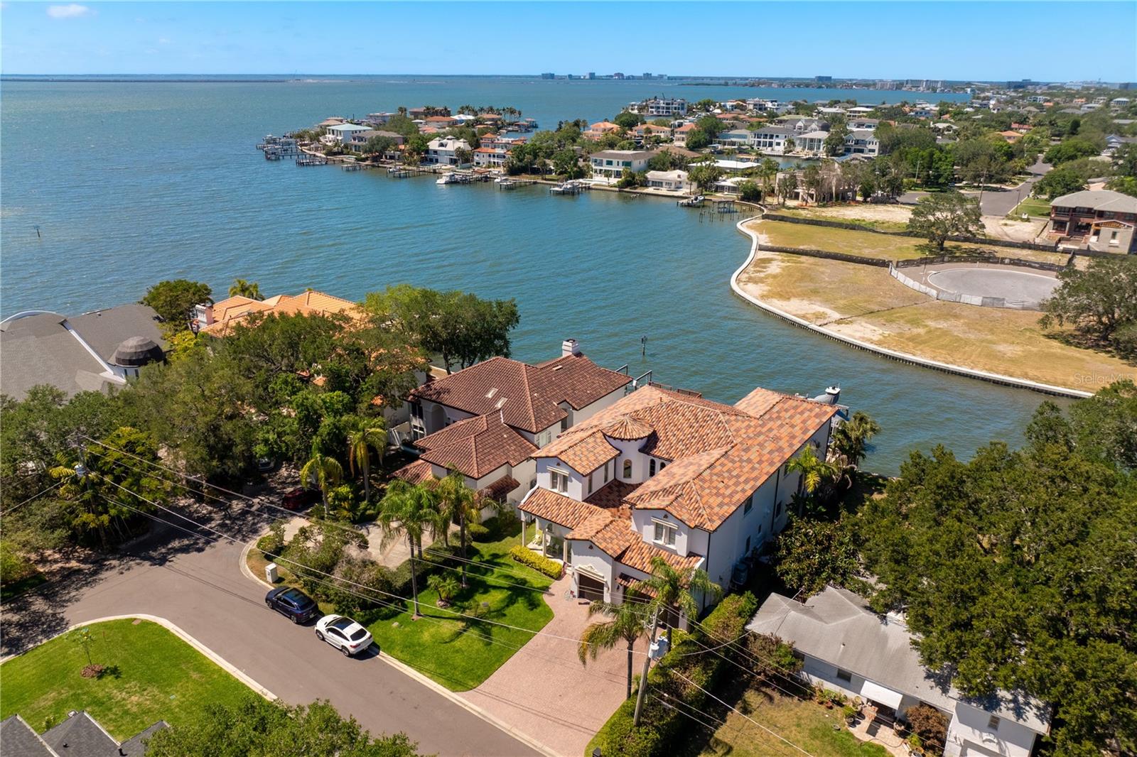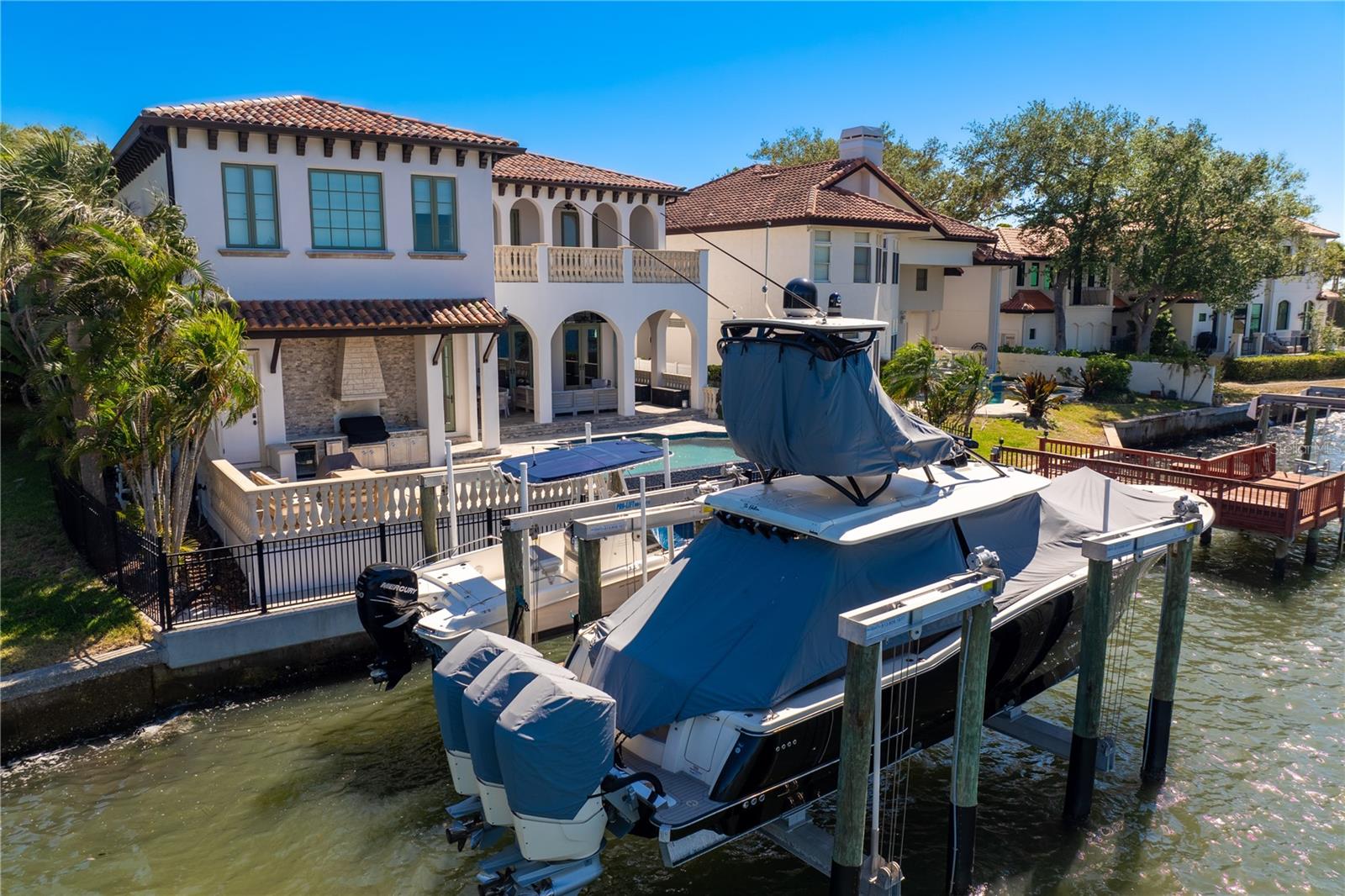 Welcome to your dream custom waterfront home offering the best of both worlds - open water views of Tampa Bay and a protected dock with two boat lifts. This one-of-a-kind property impresses from the start with its grand custom iron gates leading you into a tranquil courtyard area full of natural light and a serene fountain. Step inside and be captivated by the luxurious and fine details throughout the home. The formal living and dining rooms, whose gorgeously stained tongue and groove ceilings, feature elegant French doors that open onto covered porches, seamlessly blending indoor and outdoor living. Enjoy prime entertainment on the large lanai, watch the sunset to relax in the evening, or unwind in the pool or spa after a long day - all while enjoying the stunning open water views as you sit by the fire pit. Inside, the main kitchen offers top-of-the-line appliances, two large islands, two sinks, a walk-in pantry, and the luxury of a temperature-controlled wine cellar just down the hall. Each of the five bedrooms in the home features its own en-suite bathroom for ultimate comfort and privacy. The first floor features a full guest suite, an office that could also be used as a 6th bedroom, and a convenient spacious half bath for guests. Upstairs, the newly renovated master suite offers a luxurious retreat with large windows showcasing the open water views, a stunning accent wall, a custom-designed walk-in closet, a wet bar with a mini fridge, and an exquisite en-suite bathroom with a double walk-in shower. The suite opens directly onto a private second-floor balcony with a covered porch, where you can enjoy the best of the Florida lifestyle overlooking the water. The second floor also features three additional bedrooms, each with its own en-suite bathroom & walk-in closet, an in-home gym with newly installed flooring, and a laundry room with plenty of storage space. Experience the best of Tampa living in the coveted Plant High School District, located just minutes from Downtown Tampa, the Tampa Riverwalk, sports venues, Tampa International Airport, and the exceptional Gulf beaches!