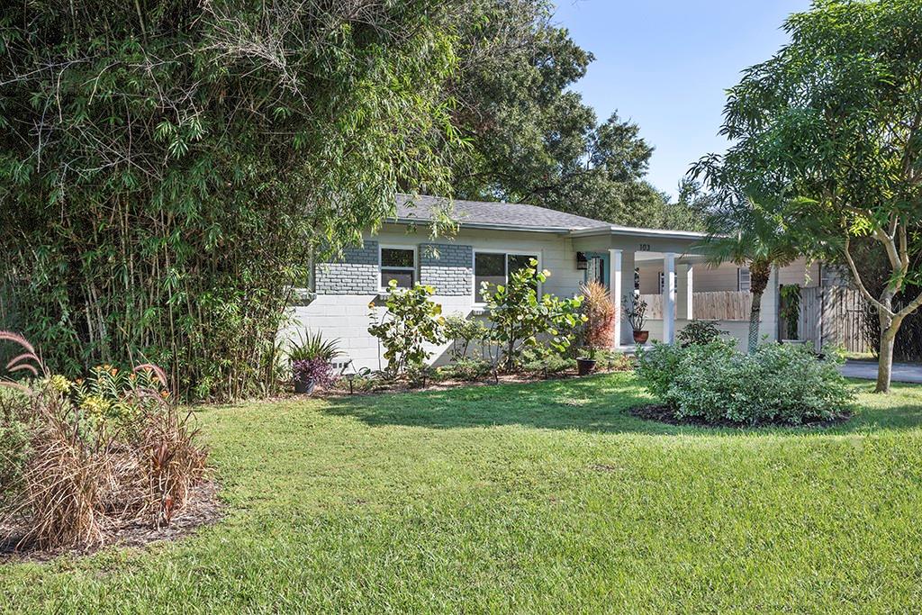 BIG NEW PRICE IMPROVEMENT!!! This beautiful low maintenance concrete block home is move in ready and located in the sought after area of Seminole Heights with a West of Florida address. Step into your living room to discover an open floorplan with an updated kitchen beyond with breakfast bar for ease of entertaining. You will love the granite counters, wood cabinetry and a delightful view of your GORGEOUS tropical backyard from your kitchen sink window! Meanwhile... your large master bedroom suite is off all by itself for the privacy and seclusion you desire. It offers up an en suite bathroom and walk in closet. Step out your back door onto your HUGE COVERED BACK PATIO!! The backyard is SPACIOUS with a large firepit area. Imagine the wonderful al fresco dinners you'll have with your friends in this amazing space. The handy storage shed will come in very useful as well for your garden tools. NEW ROOF April 2024 and NEW FLAT ROOF July 2024. PLUS NEW HVAC! Hurricane impact windows in some areas of home. Come and see this 4 bedroom, 2 bath beauty now! Room sizes approx. THIS HOME QUALIFIES FOR 100% FINANCING - NO MONEY DOWN! Ask your Realtor for details.