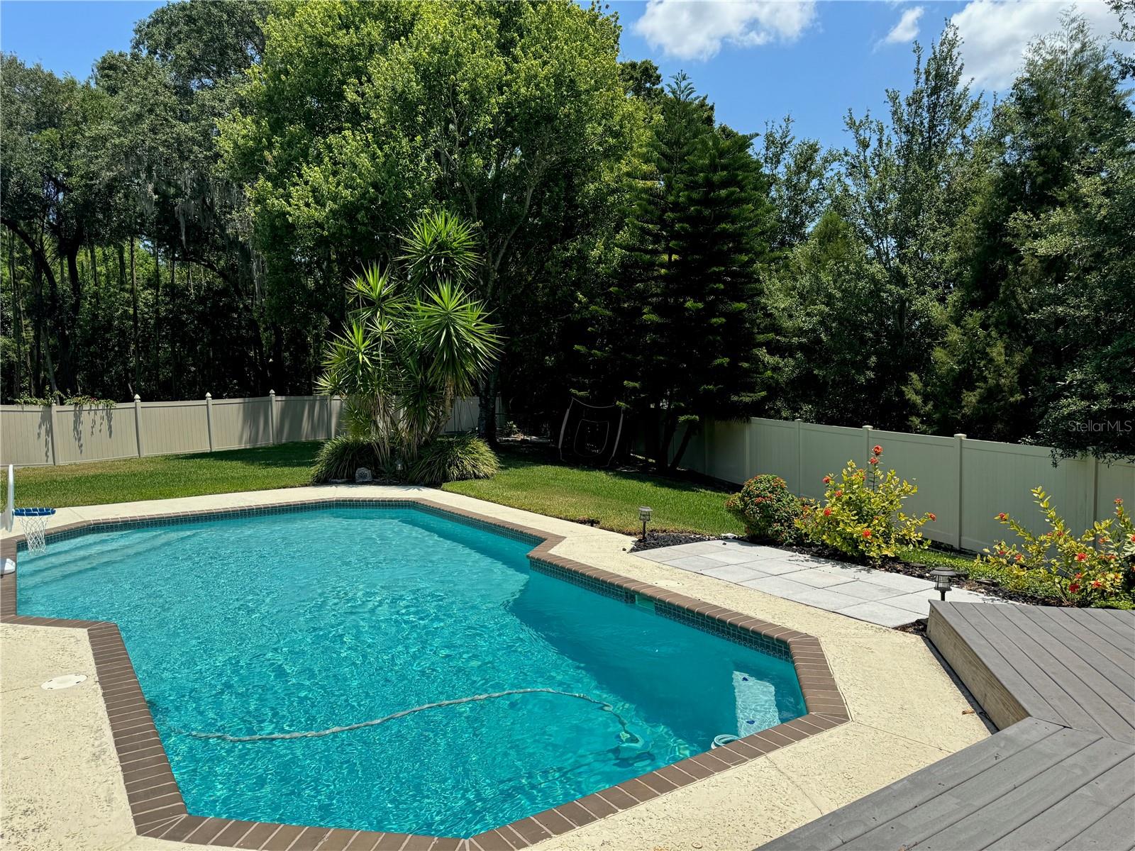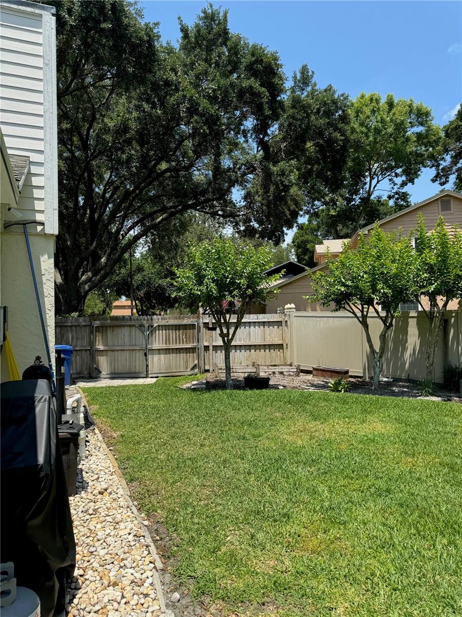 Welcome home to your stunning North Tampa oasis! Sitting on a picturesque, oversized (nearly 1/2 acre!) lot with mature trees and landscaping, this 4/2.5/2 home is at the end of a cul-de-sac for quiet and room to stretch out! Beautful engineered wood floors are through main living areas of this split floor plan home (no carpet!). Walk in through the entryway that is open to the second floor with lots of windows for tons of natural light. In front of you is the formal living room complete with access to a private screened patio as well as a view of the sparkling saltwater pool and lush landscape beyond. A formal dining room is to your left, followed by easy access to both the family room and the kitchen and a half bath. A large laundry room and access to the oversized two-car garage are to one side, while windows and more light flood in from the other side. The family room has volume ceilings for an airy feel and easy access to the back patio and pool areas as well as a large kitchen with an eat-in area. The kitchen features plenty of countertop and cabinet space for even the most demanding chef. Completing the downstairs is the secluded primary bedroom suite. This large bedroom has access to the screened patio and yet plenty of privacy. The ensuite bathroom features multiple closets, a water closet, garden tub plus separate shower, and dual sinks. Upstairs features three large bedrooms (each can fit a king bed) with a full bath close to all. The bedrooms do not share walls which helps with privacy and noise. The backyard should not be missed! It is HUGE, with three distinct areas for every need. The pool is in the middle and easily accessed through family room as well as bathroom. There is a safety screen stored in the attic as well. To the right is a shady area with mature trees and to the left is a large sunny area perfect for whatever sport or activity is desired. A patio with space for furniture and grill complete this oasis. This home is situated in a quiet area yet minutes to major interstates, shopping, schools, the airport, and entertainment. The house windows have a lifetime warranty for peace of mind. Make this home yours today!