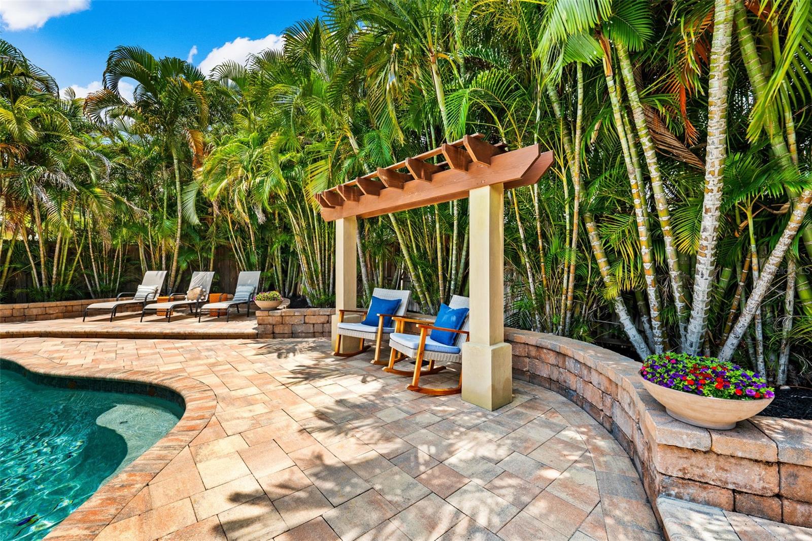 Steps to Rocky Point Golf Course- a 18-hole, par-71 Golf Course that is part of The Florida HISTORIC Golf Trail! Short bike ride to the Skyway Trail! Minutes to beaches and boat ramps! Short drives to MICHELIN RATED restaurants! Resort-style pool in your own backyard, offering a perfect blend of relaxation, entertainment, and aesthetic appeal. The free-form pool is surrounded by features reminiscent of a hidden tropical oasis: a perimeter of palms creates a lush, private setting; spacious paver decking frames the sparkling pool; a firepit for those crisp fall and winter evenings; a trellis-covered outdoor kitchen and bar seating area; a spacious covered lanai; two crisp green artificial turf areas; and a stepping stone pathway leading to the pool/guest bath. Inside, the home continues to deliver the Florida lifestyle with a versatile layout perfect for gatherings or quiet relaxation. The flexible design allows you to adapt each living space to suit your needs. The kitchen is well-appointed with wood cabinetry featuring pull-out drawers, granite countertops, stainless steel appliances, and a versatile eat-at island for meal prep and serving fabulous foods for your party. The adjacent breakfast nook, currently used as a sitting area, can easily accommodate a breakfast table for additional dining seating. The formal dining space comfortably seats eight but can be reconfigured to accommodate twelve or more. The roomy living/family room offers the best view in the home, with three large windows overlooking the pool and recreation area—a perfect spot to lounge. Through a pair of French doors, you'll find the bonus room/flex space with a wood-burning fireplace. Currently used as a home office with built-in bookcases, this space offers the potential for future enhancements. For example, it could be converted into a second primary suite, as there is plumbing and additional space behind a wall that could be renovated into an ensuite bath and walk-in closet. The three bedrooms are generously sized, each currently accommodating a king-sized bed. The primary suite features a walk-in closet, an ensuite bath, and a view of the rear oasis. The double-duty guest/second bath provides easy access to the backyard, making it the perfect pool bath. A circular driveway and two-car garage provide ample parking. Nestled in the charming and centrally located neighborhood of Dana Shores, this home is just a short drive from two airports, including the internationally top-ranked Tampa International Airport. You'll also find easy access to beaches, public boat ramps, beautiful parks and exercise trails, and world-class shopping at International Plaza. Downtown Tampa is nearby, offering museums, the Riverwalk, The Straz Performing Arts Center, & Amalie Arena. And your are a short walk or bike ride to Skyway Park and Rocky Point Golf Course. The home's more recent updates include replaced windows and sliding doors, HVAC system installed in 2019/2020, and the roof is approximately 10-12 years old. Furnishings may be available for purchase. For community information, go to https://danashores.com/