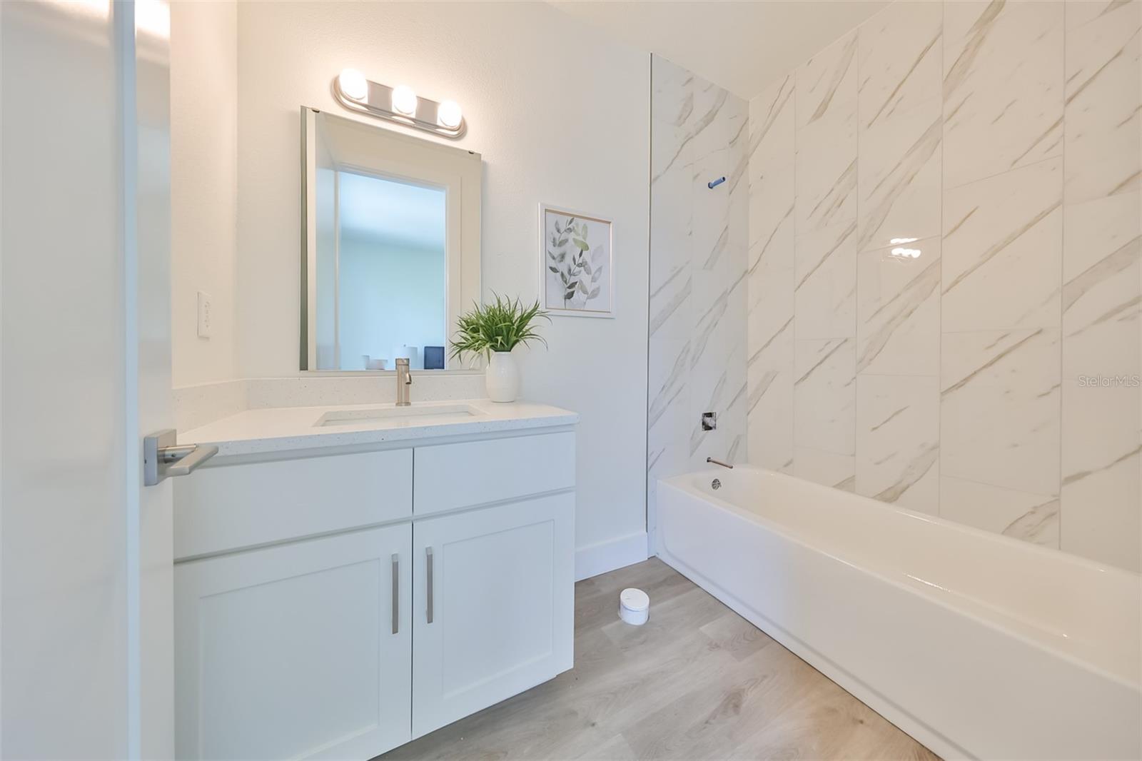 Under Construction. *Builder incentives available, call for details* Imagine stepping into a brand-new world of convenience, comfort, and casual elegance. This recently completed and meticulously crafted 2-bedroom + 2.5-bathroom townhome, boasting luxurious finishes throughout, is your key to an unparalleled Tampa Bay lifestyle. Nestled in a pet-friendly and gated community with a resort-style pool in the heart of the city, you'll enjoy the best of both worlds: tranquility away from the hustle and bustle, yet close proximity to everything you need. Vibrant Seminole Heights, beautiful Carrollwood, TPA International Airport, Downtown Tampa, golfing, boating, world-class shopping, and delectable dining are all a stone's throw away - and you'll be just a short jaunt from Clearwater, St. Petersburg, and the legendary Gulf Beaches. Sleek and modern, this upscale townhome offers a spacious garage with private entry, a unique open floor plan, and huge energy-efficient windows that shower the entire residence with an abundance of natural light. Gorgeous sustainable plank flooring compliments the sizable downstairs bedroom, featuring a generous closet, tall French glass doors to a private patio, and the downstairs spa-like bath with quartz surfaces and a stunning glass-enclosed oversized shower stall. Head upstairs to the main living and dining area that's ideal for entertaining family and friends, boasting soaring ceilings and a gourmet kitchen with a complete set of new stainless steel appliances, a substantial island, impressive quartz countertops, in-demand white Shaker cabinetry, large pantry, and classic brushed nickel hardware. On the top level, you'll find a serene oasis with a welcoming guest suite and dazzling full bath, a spotless utility room, and the magnificent owner's retreat, where you can relax and unwind in peaceful bliss. This newly constructed dream home has everything you want and more, so don't delay - call to schedule an exclusive private tour today!*Images shown are for illustrative purposes only and may differ from actual home. Completion date subject to change.*