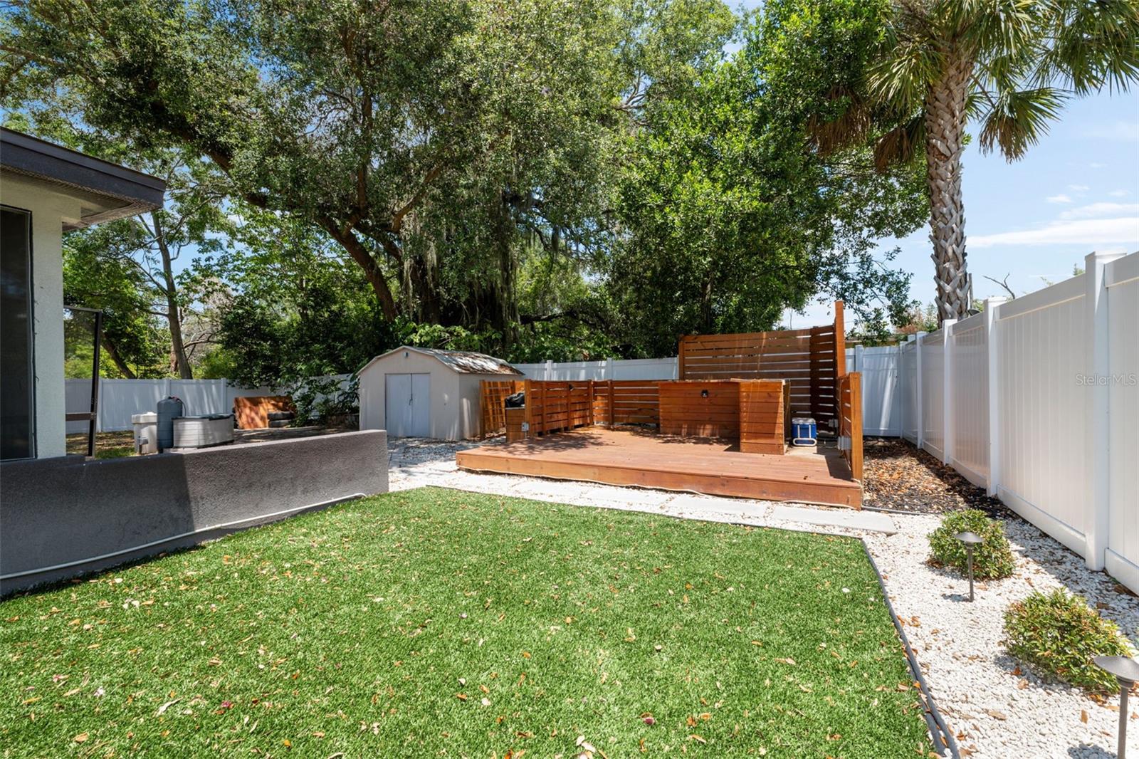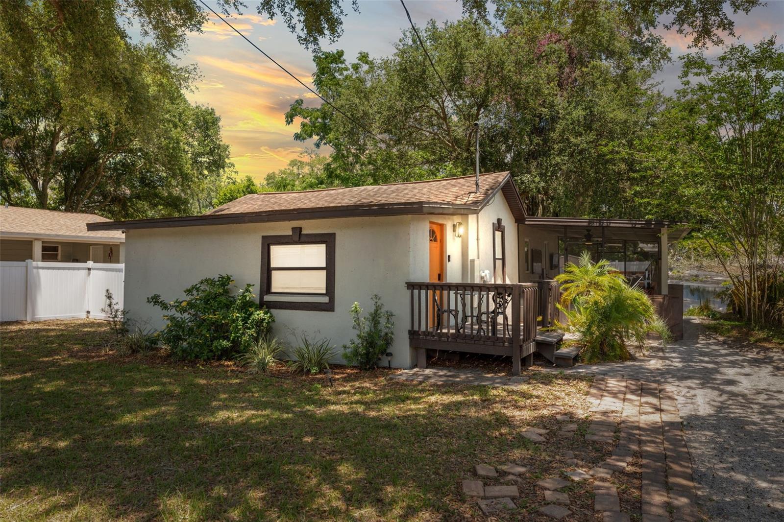 Discover your dream home. The open-concept living and dining area warmly welcomes you, flowing seamlessly into the well-equipped kitchen, ideal for entertaining. The three bedrooms, including the luxurious primary suite with a walk-in closet and shower-only bath, provide a serene escape. The laundry closet, conveniently located near the kitchen, offers storage and organization. The beautifully landscaped fully fenced yard, featuring a covered patio, outdoor kitchen, and picturesque greenery, including a pond and shed, is perfect for relaxing and entertaining. This impressive three-bedroom, two-bathroom home offers the ultimate backyard oasis, mere minutes from shopping, dining, and entertainment options like Busch Gardens.