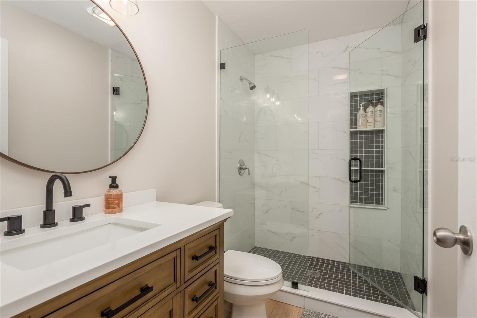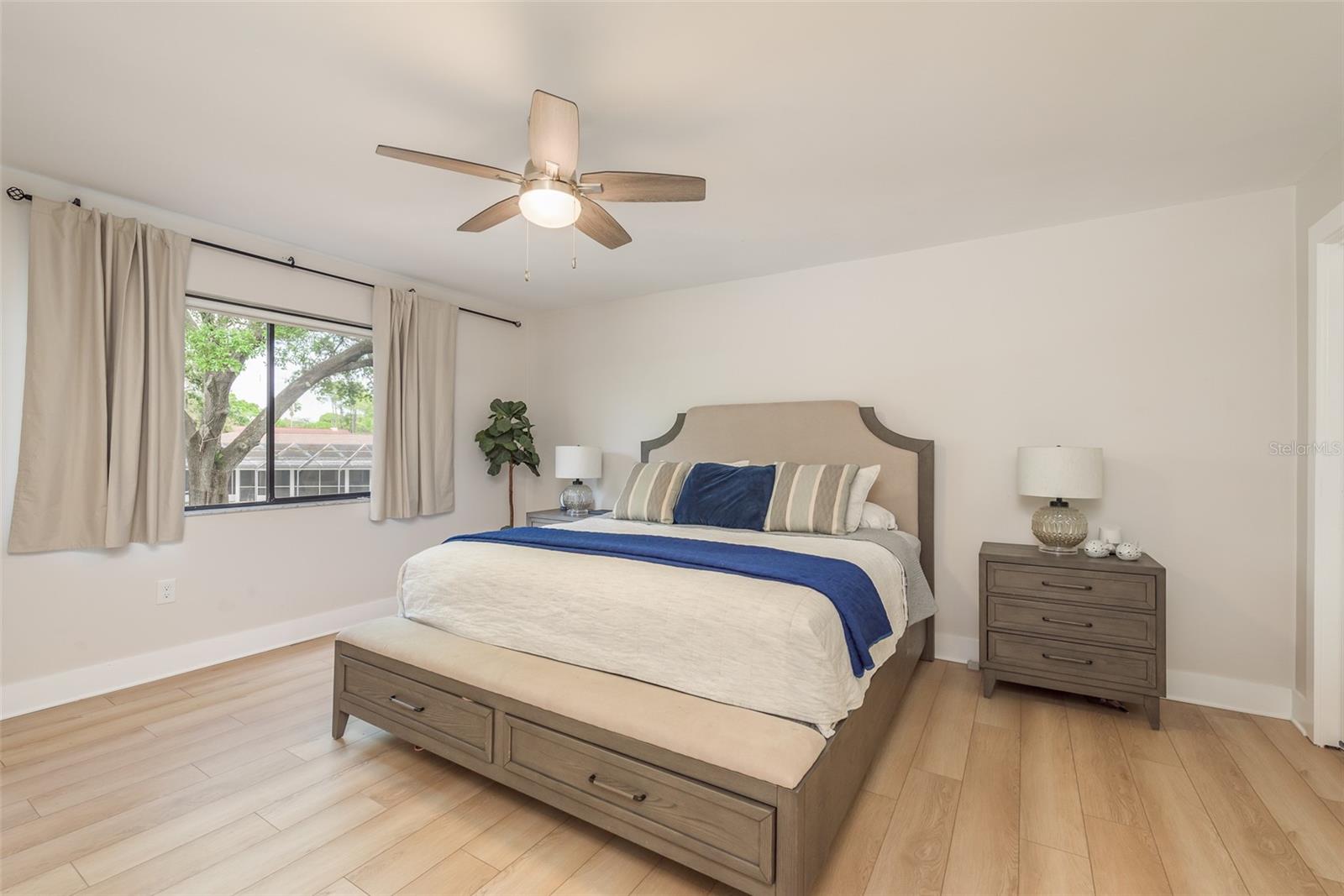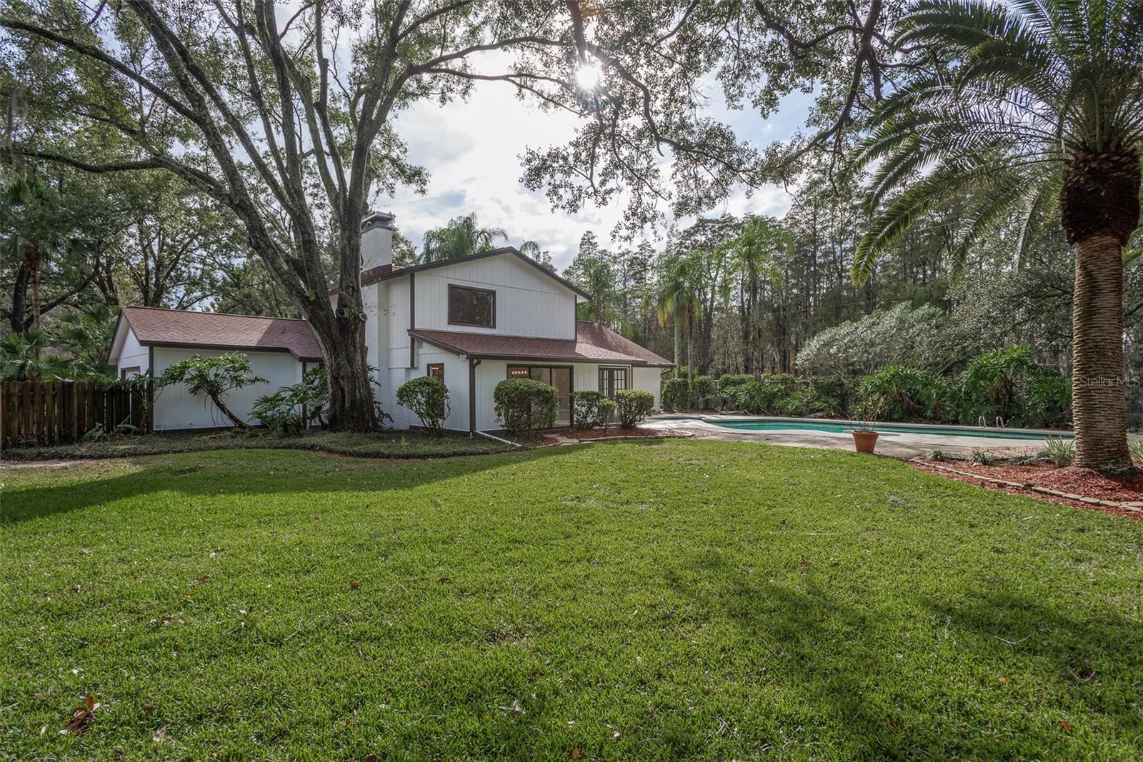 Stunning and newly renovated, this 4-bedroom, 3-bathroom home in Phase One Carrollwood Village sits on nearly ½ acre. As you walk through the front doors, cathedral ceilings welcome you into a spacious formal living room, with a formal dining room that seats eight. The open floor plan seamlessly combines the kitchen, family room, and breakfast bar into one expansive space. The kitchen boasts gorgeous cabinetry, stainless steel appliances, and quartz countertops. Enjoy a beverage from the wet bar beverage center and relax on the couch, watching television or the fire crackling in the stone wall fireplace. Natural light pours in from every angle, with sliding glass doors and French doors leading to the well-manicured backyard, complete with a custom pool—perfect for entertaining! A first-floor office or guest room overlooks a lush front yard, while the upper floor features the primary bedroom and two secondary bedrooms with a guest bath. Freshly painted inside and out, the home boasts luxury vinyl plank flooring and updated fixtures and lighting throughout. The oversized two-car side entry garage doubles as a gym, complete with a sauna for one. Take your golf cart to explore all that Carrollwood Village offers: a Golf and Tennis Club, Cultural Center with Farmer’s Market and Jazz, Community Garden, a 21-acre park with a splash pad, outdoor adult exercise station, Ninja Park, outdoor gyms for pre-teens and teenagers, two dog parks, a butterfly garden, walking paths, a pond with fountains and a bridge, and so much more! Recent updates include a 2023 water heater, washer/dryer, security system, and gym equipment. The home also features a 2022 water softener, a 2022 roof, and an AC unit from 2014. Schedule a showing today to see this stunning home for yourself!