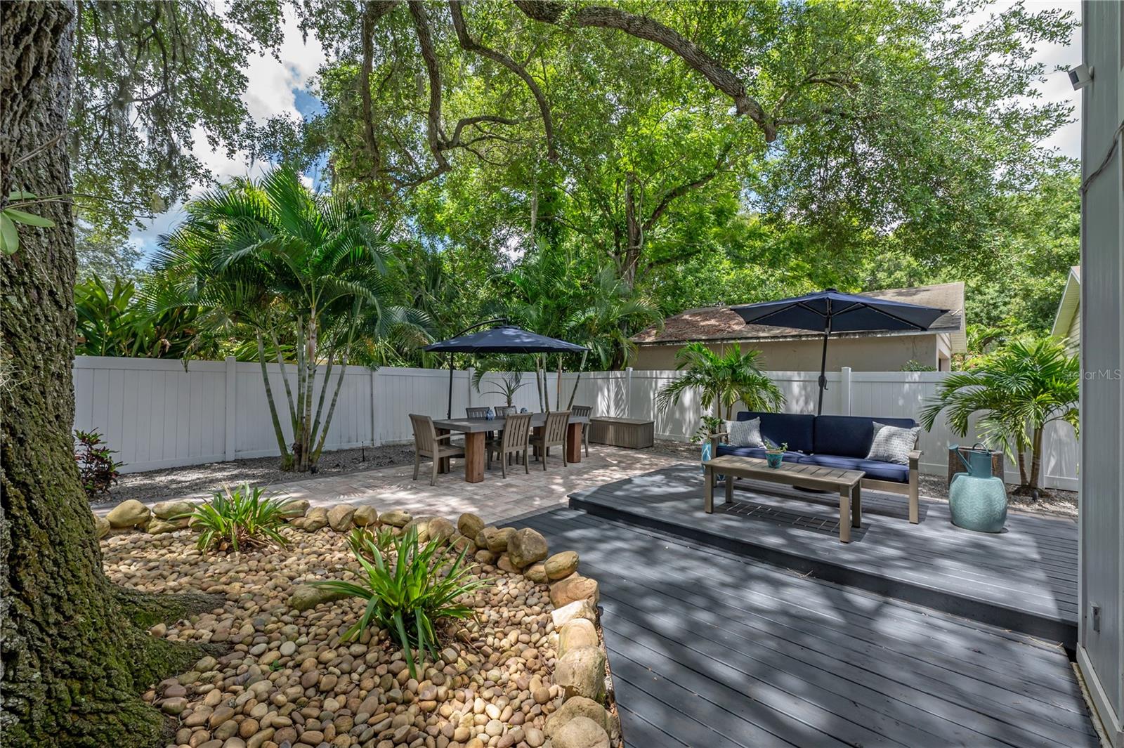 Welcome home in South Tampa- This completely remodeled home is perfect for entertaining. The inviting covered front porch features a swing and a custom herringbone brick floor. With 3 bedrooms, 2 full bathrooms, and 2,084 square feet of living space, this home also boasts a spacious two-car garage with a new epoxy floor. The light and bright kitchen is a chef's dream, offering granite countertops, a custom tile backsplash, stainless steel appliances, a glass cook-top range, a large island, a snack bar with pendant lighting, and a pass-through to the family room. The formal dining room features easy-maintenance laminate floors, custom wood panel walls, and an elegant Oyster chandelier. The formal living room includes crown molding, a coffee/bar area, wood floors, and ample space for gatherings, flowing seamlessly into the Florida/sunroom with new porcelain planks and custom wood plantation shutters. The family room is perfect for entertaining, featuring a vaulted wood ceiling with beams, skylights, transom windows, a ceiling chandelier, and three French doors leading to the back patio. The master bedroom offers laminate floors and a private ensuite with a sink and glass-enclosed shower. Both the master and guest bathrooms have been newly updated within the past two years. All bedrooms feature ceiling fans and laminate floors. Outdoor living is a delight with a private backyard oasis featuring wood decking and a brick-paved seating area. The large custom-built Tiki hut (13x16 feet) is perfect for outdoor entertaining, sports watching, candlelight dinners, and summer cookouts. The low-maintenance backyard is adorned with custom rocks and professional landscaping, enclosed by private PVC fencing, providing cool shade during summer months. Updates include a newer kitchen, high ceilings, newer flooring in all bedrooms, and replacements of the A/C, roof, and all water pipes within the last six years. The home also features new electrical panels, ductwork (3 years old), custom plantation shutters on all windows, a new exterior paint job (2.5 years old), newly painted interior, and new fencing in 2019. Enjoy the South Tampa lifestyle with its convenient proximity to downtown (10 minutes), local bay beaches (10 minutes), and top-rated Gulf beaches (30 minutes). The home is a short distance to Coleman Middle School, Mabry Elementary, and close to Plant High School. This home offers the perfect blend of charm, modern updates, and an unbeatable South Tampa location. Come see it today! Lender Marshall Smith will offer $5400 in rate Buydown the first year