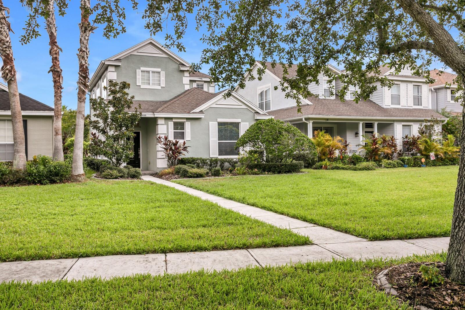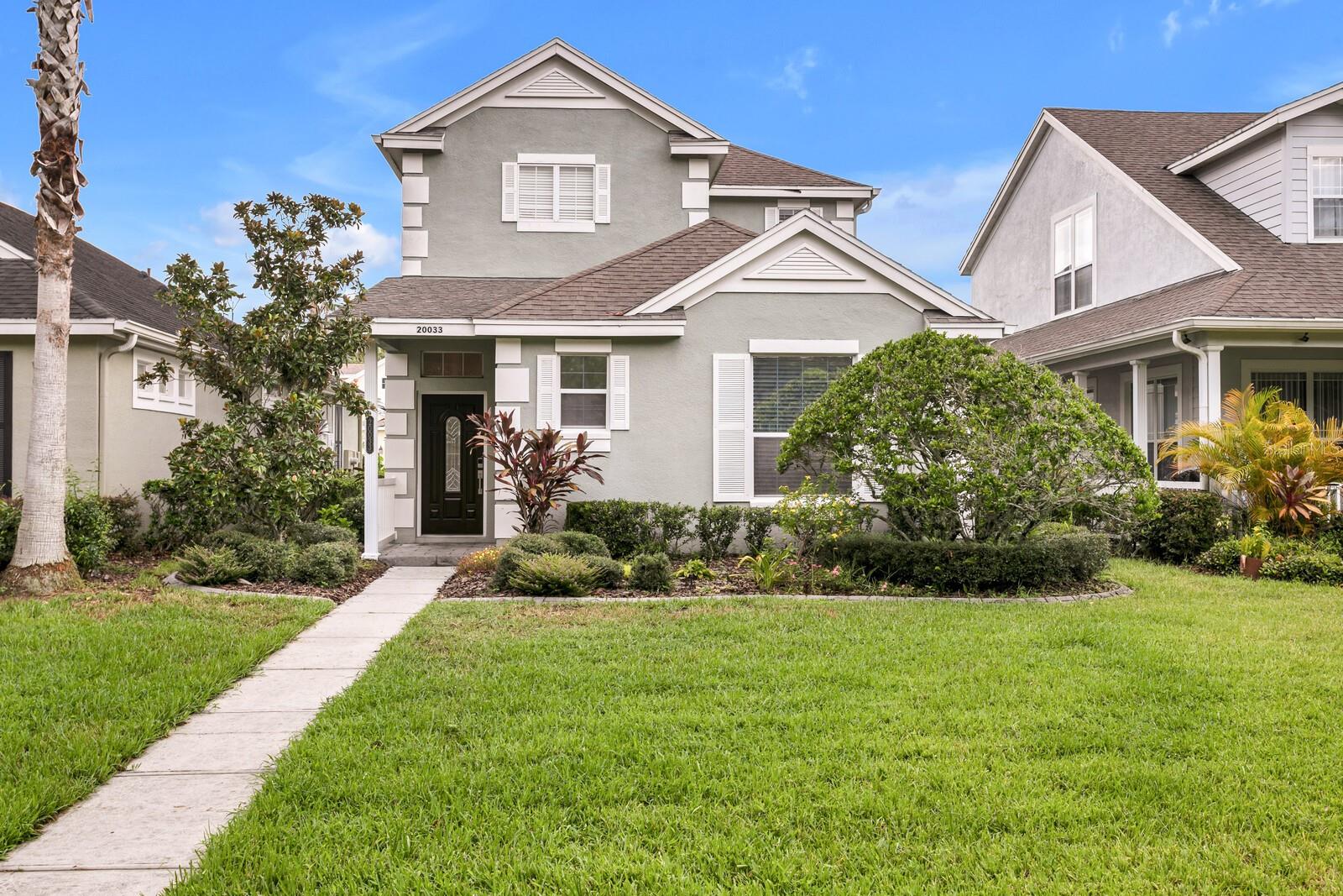 One or more photo(s) has been virtually staged. This lovely 2 story home with a first-floor owner’s suite is located in Grand Hampton, New Tampa. Grand Hampton is a 600-acre gated community that offers a variety of homes in a gorgeous natural setting with outstanding amenities. Amenities include a top-notch, well-maintained resort style heated pool, a 2nd lap pool, heated spa, fitness center, aerobics room, walking paths, tennis and pickleball courts, basketball courts, playground, activities field, spring fed lake for kayaking and a fishing pier, a beautiful clubhouse that offers community and special events plus much more. As you enter this home, it feels very grand with soaring, 2 story ceilings and a lot of natural light. There’s a dinette space and breakfast bar in the kitchen. The great room is open to the kitchen and has a half bathroom nearby. A laundry room is conveniently located off the kitchen. Upstairs you’ll find an open loft, perfect for an office or play area, plus 3 bedrooms and a full bathroom. Features of the home include, engineered hardwood floors in the foyer, great room and owner’s suite, tile floors in the kitchen and bathrooms, stainless steel appliances, natural gas supplying the water heater and stove, wood kitchen cabinets, wood blinds, decorative fireplace and solar panels that are paid off. A 2-car garage is located behind the home with additional overflow parking in front of the home. New Tampa is conveniently located near many restaurants, shopping, performing arts center, medical centers and I-75 and I-275. View Video Walkthrough Tour https://listing.tonysica.com/ut/20033_Heritage_Point_Dr.html
